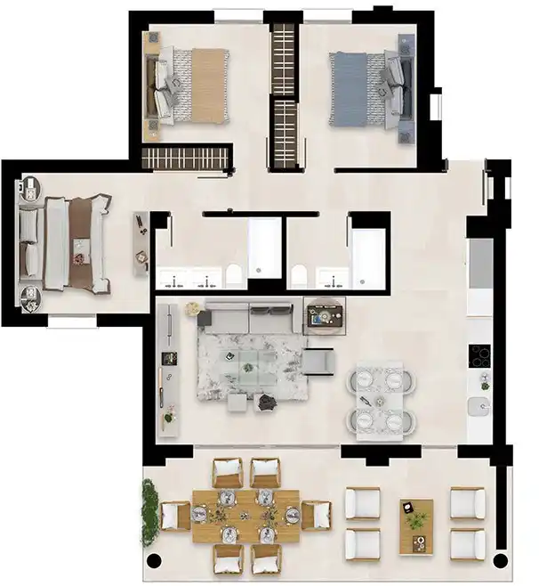 - Cuisine dînatoire avec table à manger pour 6 personnes