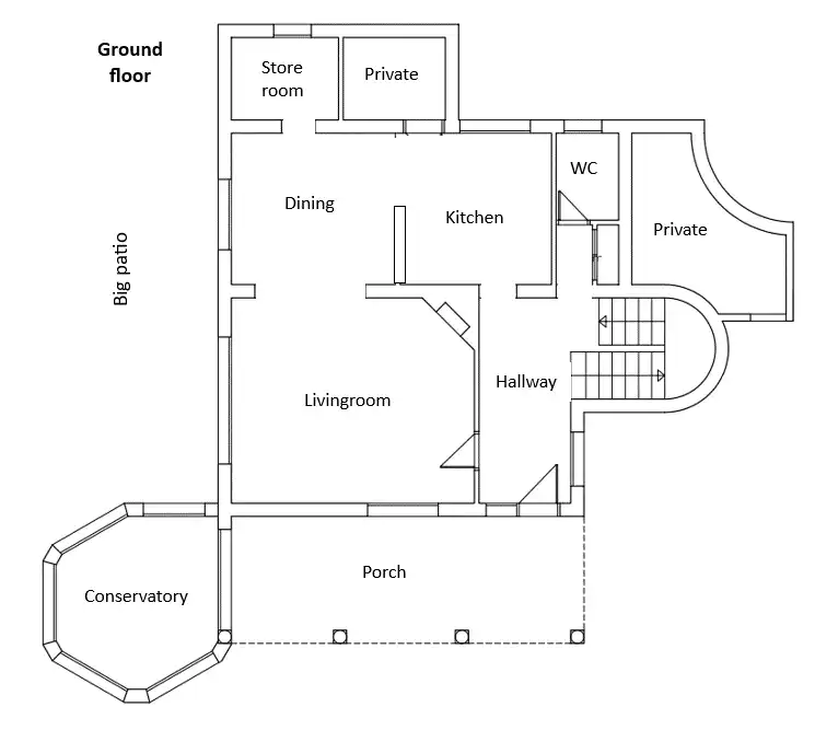La maison est sur deux niveaux où au rez-de-chaussée se trouvent un couloir, un salon, une cuisine, un petit bureau et des toilettes qui abritent la machine à laver. Le salon et la cuisine ont un plan d'étage ouvert avec un grand canapé confortable, des fauteuils, une table à manger, une télévision, une connexion Wi-Fi, une chaîne stéréo connectée Bluetooth et une cheminée. La cuisine est entièrement équipée avec tout ce dont vous avez besoin comme un lave-vaisselle, une cuisinière à gaz, un four, un micro-ondes, un réfrigérateur/congélateur, une machine à café, un mixeur, etc.
