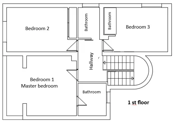 Le premier étage comprend 3 chambres. La chambre principale dispose de grandes fenêtres offrant une vue incroyable sur la mer directement depuis le lit. La chambre est grande et aérée avec de nombreux rangements et dispose d'une salle de bain avec baignoire et douche. Les deux autres chambres sont également spacieuses avec de superbes vues et de nombreux rangements. L'une des chambres dispose d'une petite salle de bains et il y a également une salle de bains avec douche dans le couloir. Toutes les chambres disposent de la climatisation et de lits doubles avec des matelas confortables de haute qualité.