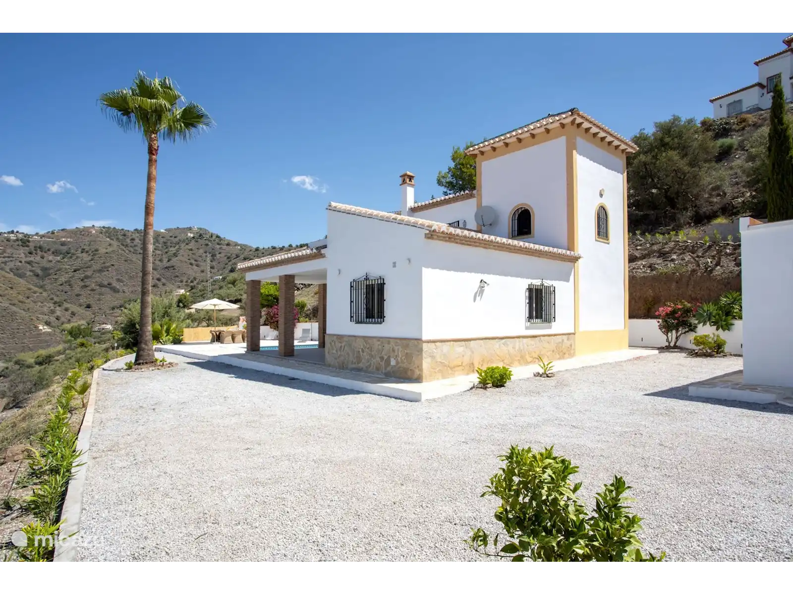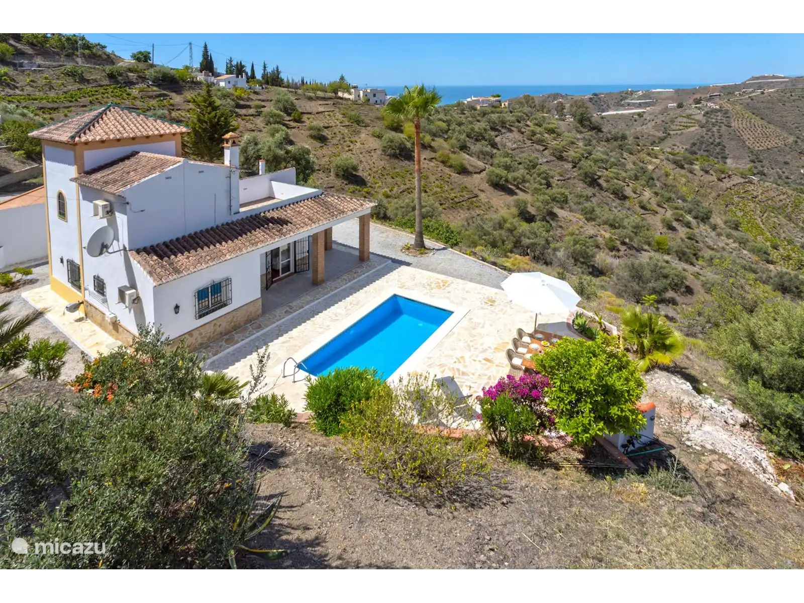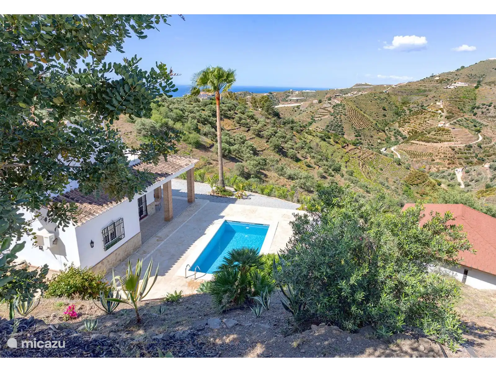 Belle villa de vacances à la campagne, entre les montagnes et quinze minutes de la mer. Un havre de paix entouré d’arbres fruitiers et de vignobles artisanaux. Plongez dans votre piscine privée ou détendez-vous sur les transats de la terrasse environnante. La terrasse couverte avec coin repas permet de se rafraîchir pendant les chaudes journées d’été. Du balcon, vous avez une vue sur les environs et la mer. Les propriétaires néerlandais ont décoré cette maison de vacances avec dévouement. La combinaison idéale de paix et d’espace pendant que vous pouvez rechercher le confort. Villa Regazo Andaluz a quelques orangers, plusieurs citronniers, un manguier, un chérimoyer, un amandier et un grand figuier. La cueillette est autorisée !