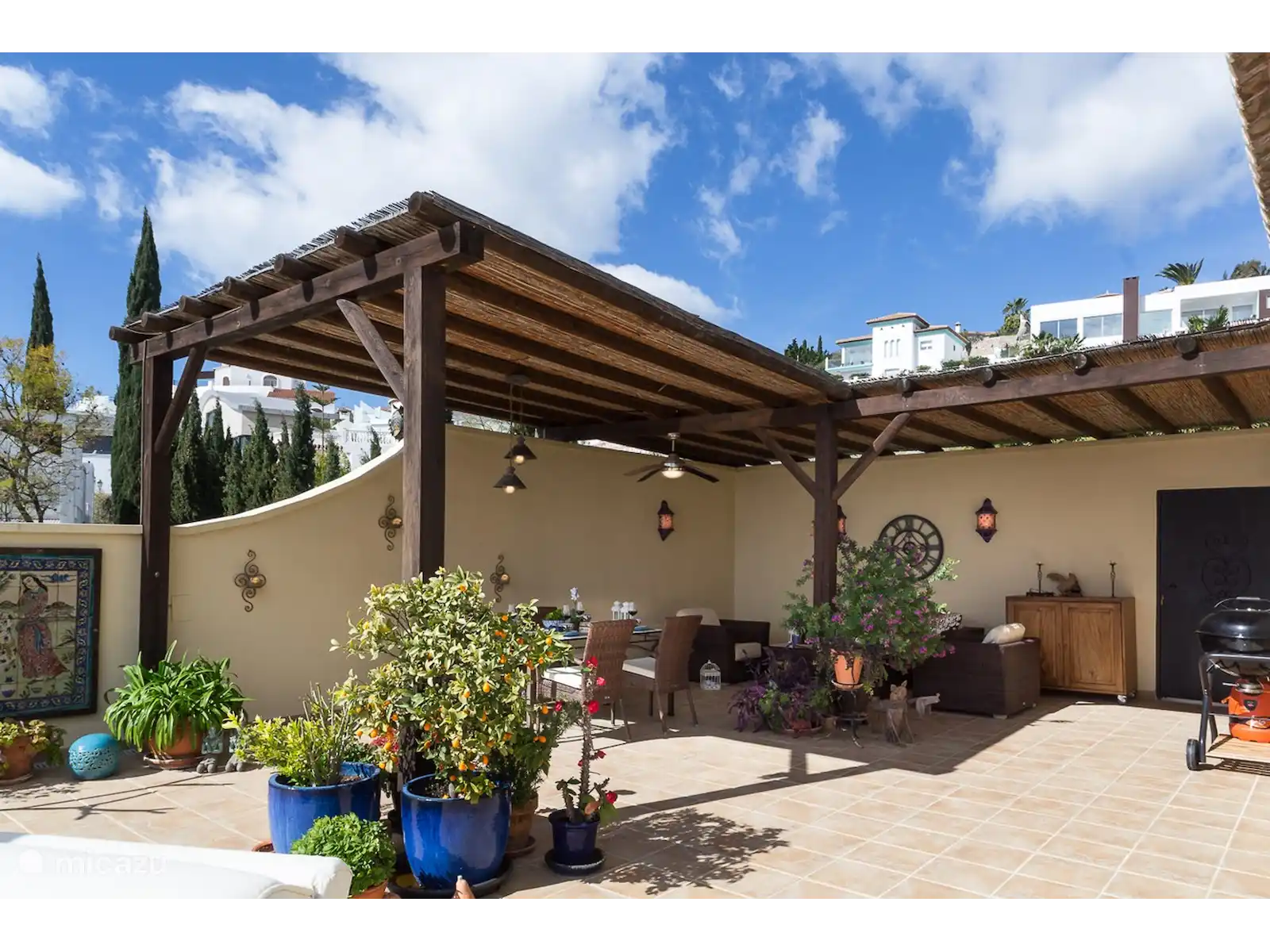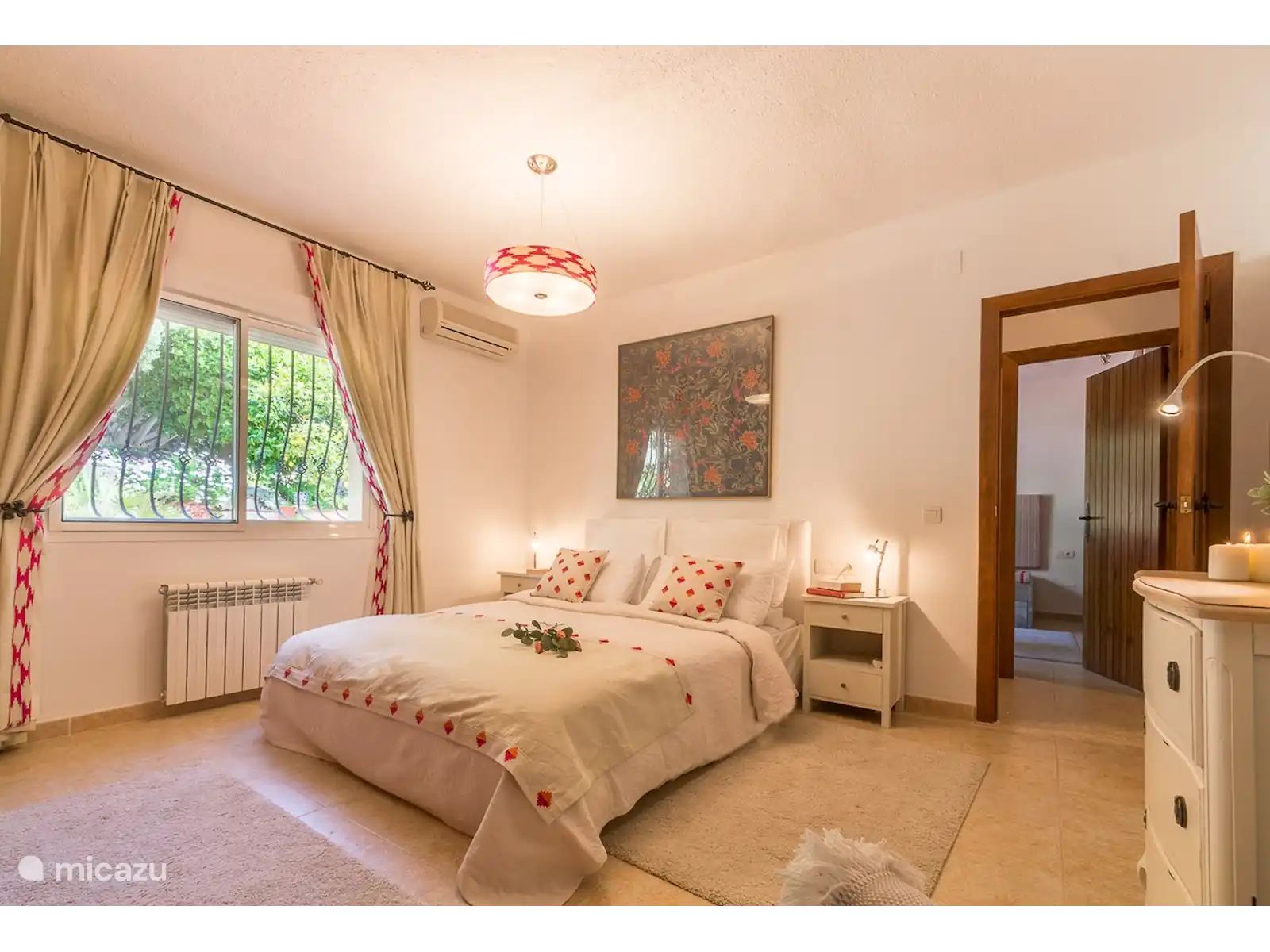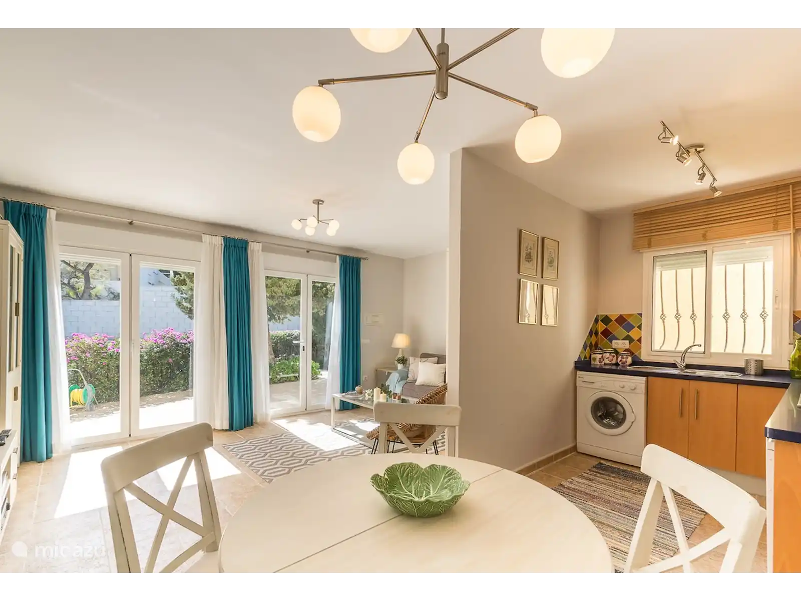 La villa est de style espagnol moderne et de couleur jaune chaud, ce qui s’intègre complètement dans l’atmosphère méditerranéenne de cette partie authentique de l’Espagne. Les détails colorés apportent un contraste ludique et soulignent l’architecture typiquement espagnole. La maison dispose de 3 chambres confortables et de 3 salles de bains, dont l’une avec douche à effet pluie et les 2 autres avec baignoire. Le salon spacieux et confortable dispose d’un coin repas séparé et d’une cuisine ouverte, entièrement équipée avec les derniers appareils, idéale pour préparer de délicieux repas que vous pourrez ensuite déguster sur la terrasse spacieuse.