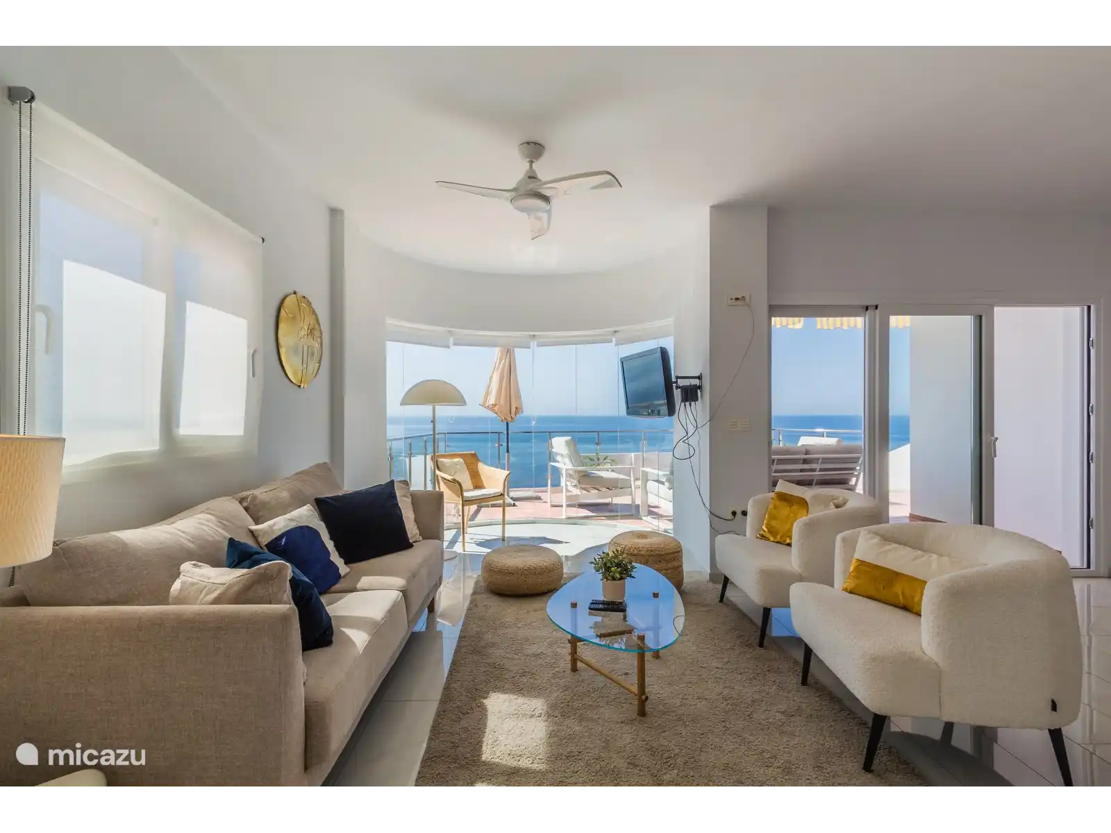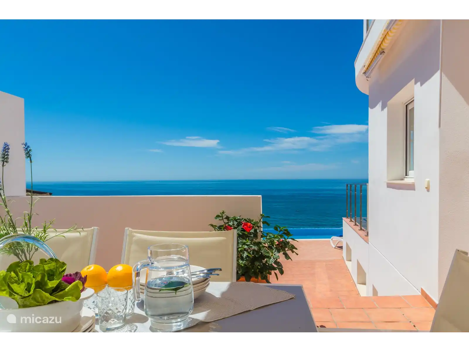 Toutes les chambres ont accès à l'une des nombreuses terrasses de la villa, d'où vous pourrez profiter des vues impressionnantes sur la vaste mer Méditerranée et si vous avez la chance de voir passer des dauphins.Les deux étages disposent de la climatisation centrale. La climatisation est activée via une commande murale dans le salon. Il y a aussi un ventilateur de plafond dans le salon.
