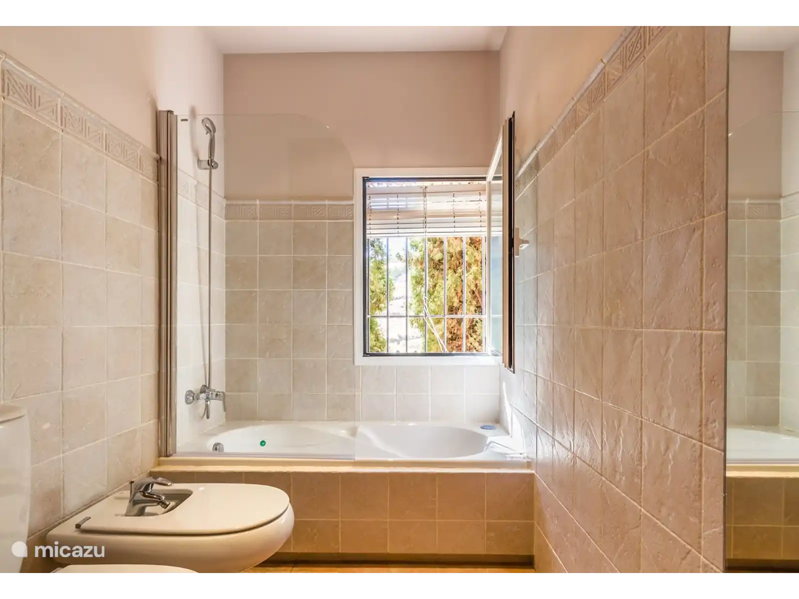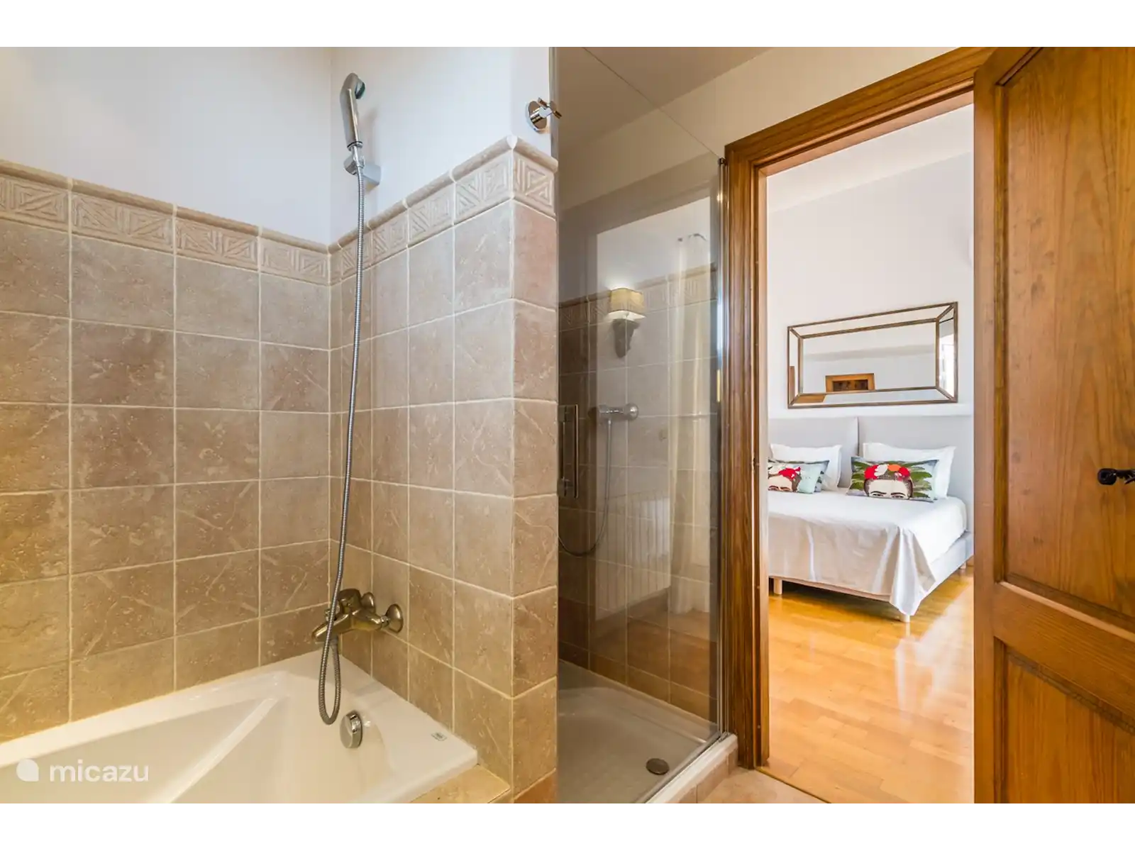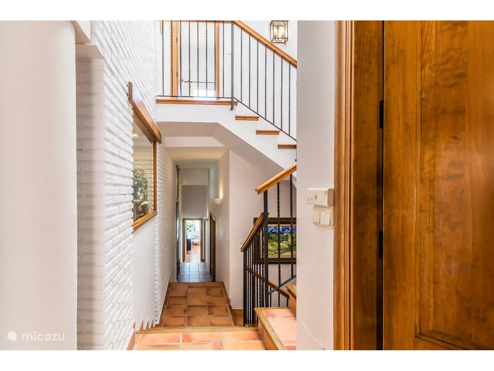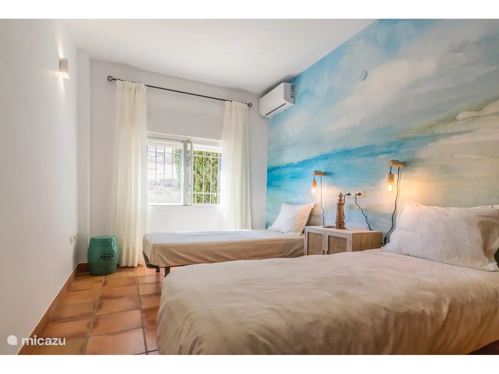 Au premier étage, vous trouverez une chambre avec salle de bain en suite et un dressing. Le lit se compose de 2 matelas de 90 cm chacun, le sommier étant réglable individuellement. À quelques pas du rez-de-chaussée, vous trouverez trois autres chambres et une salle de bain complète. Une des chambres a un lit double king size. Dans la partie inférieure de la maison, il y a un appartement avec 1 chambre, une salle de bain avec douche et une petite cuisine avec bar attenante à une petite salle de loisirs canapé-lit et télévision. De là, vous entrez sur une petite terrasse avec accès et vue sur le jardin et la piscine. Chaque chambre dispose de la climatisation pour le refroidissement et le chauffage afin d'assurer votre confort tout au long de l'année. Il y a aussi des radiateurs dans les chambres.
