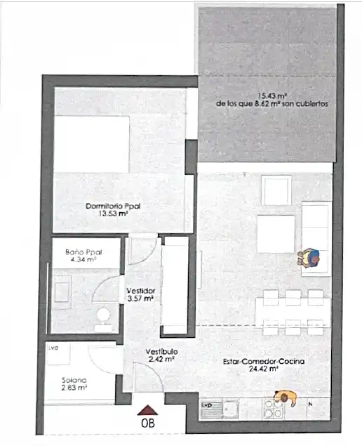 Le salon-salle à manger-cuisine est intégré dans un espace ouvert et lumineux, où chaque détail a été soigneusement choisi pour transmettre un sentiment d’harmonie et de sophistication.