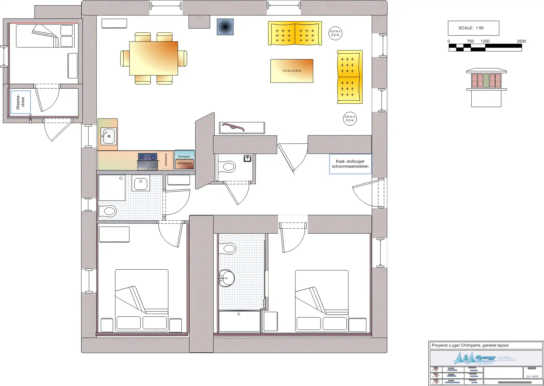 De plus, un point de raccordement 220V (monophasé 16A) pour la voiture électrique (pas de borne de recharge), dont la consommation sera facturée séparément via un compteur kWh (0,30 €/kWh). Vous devez avoir votre propre câble et votre propre prise adaptateur avec vous.