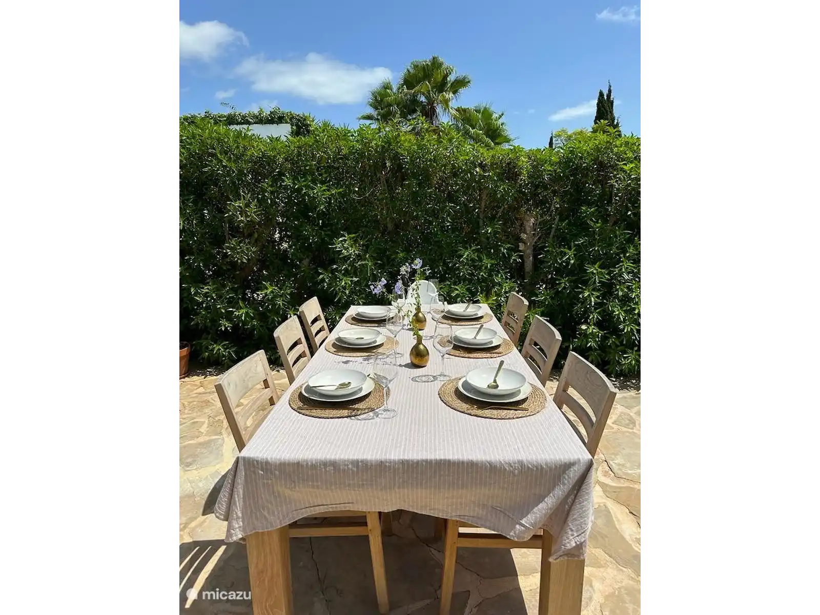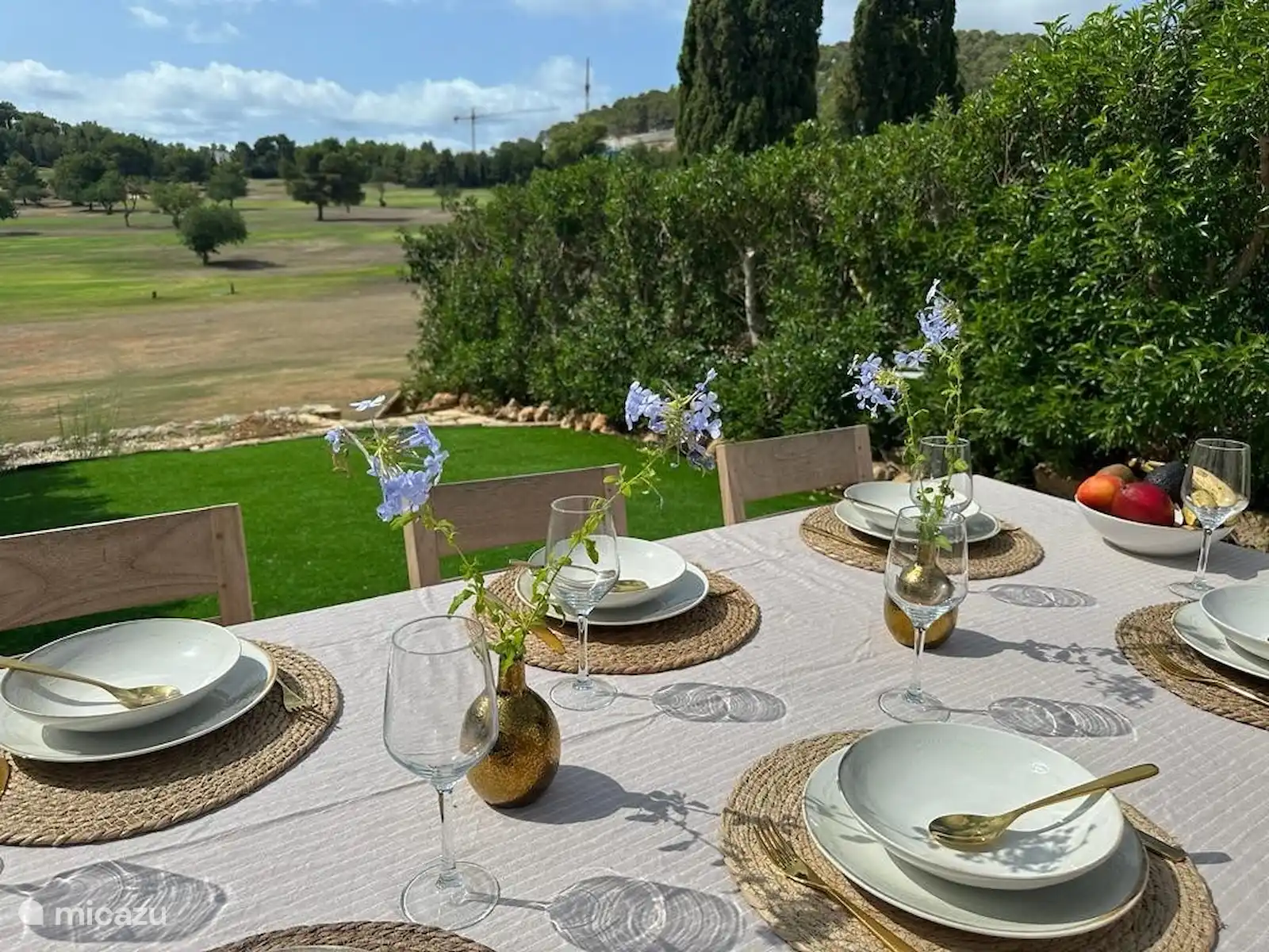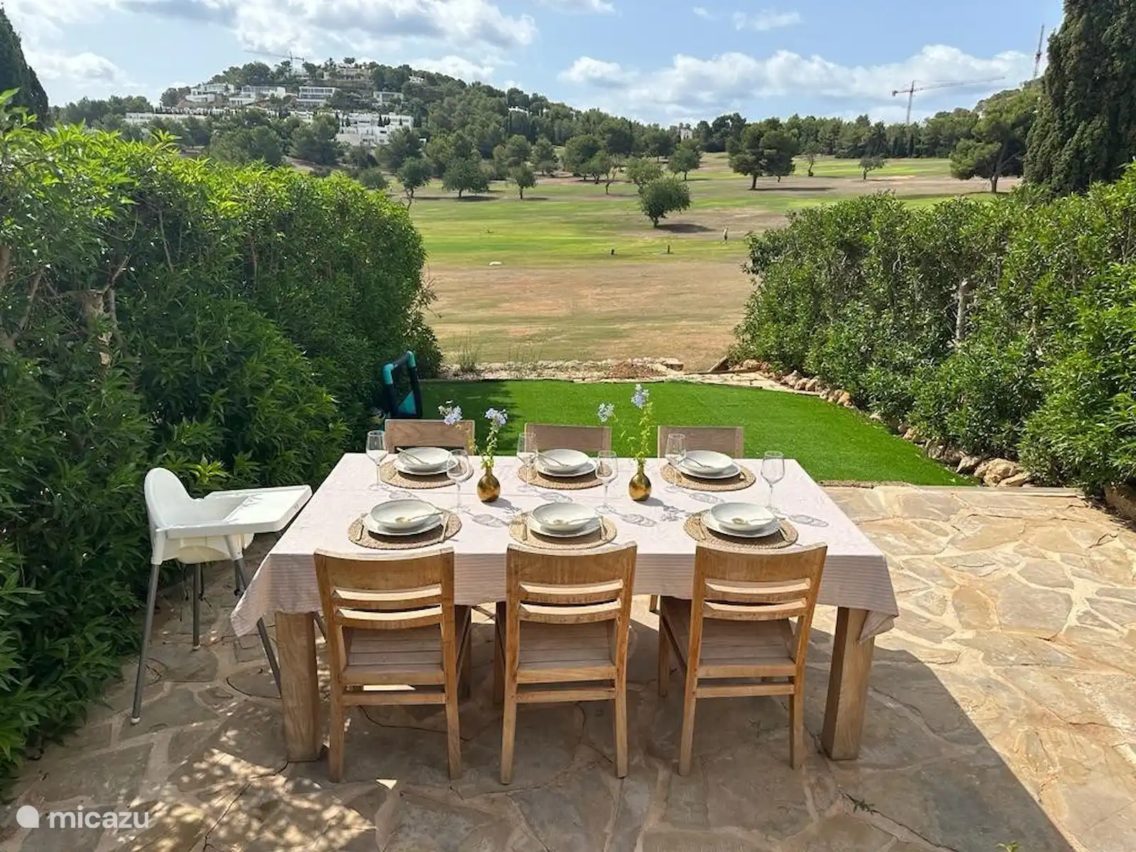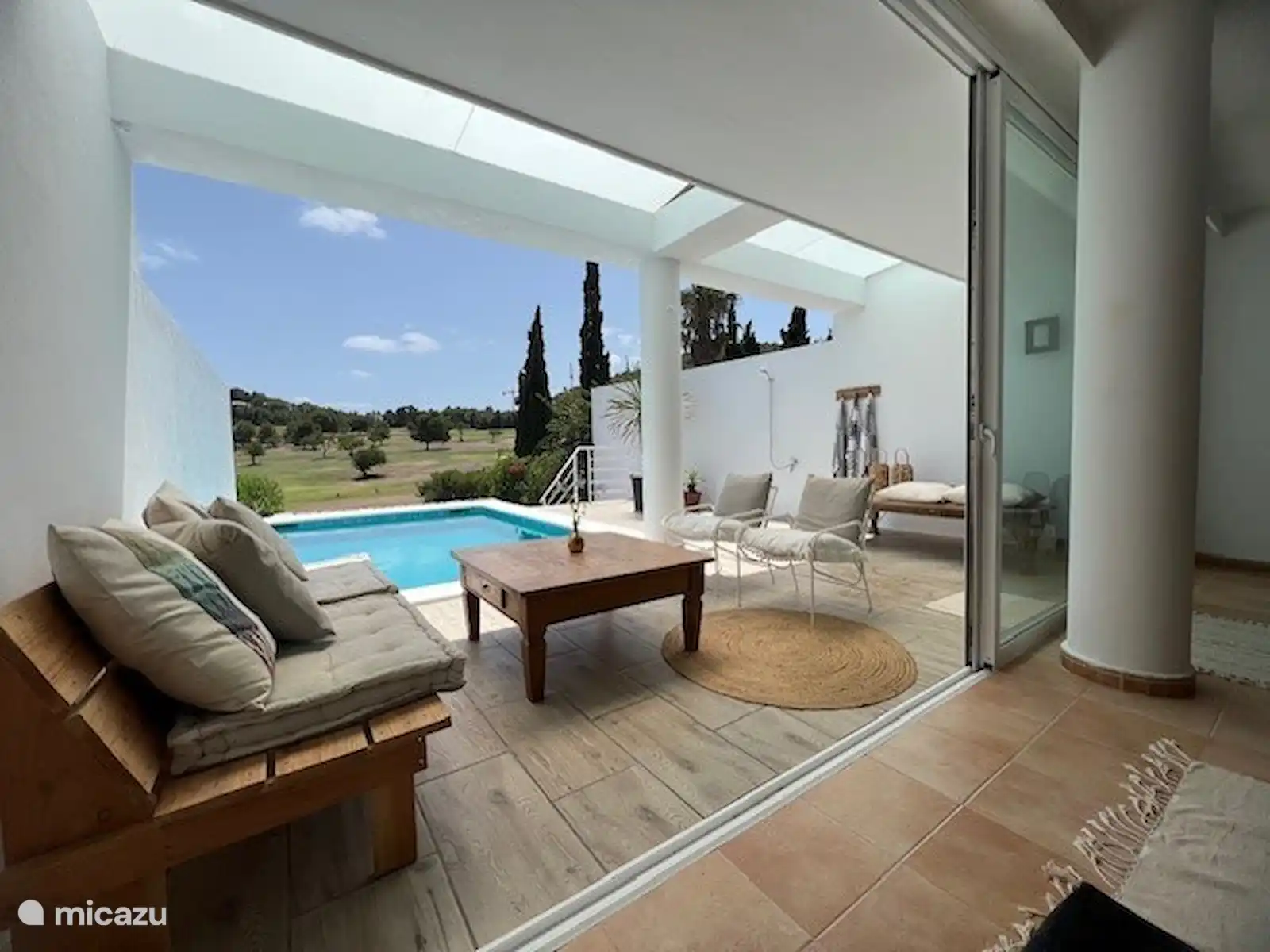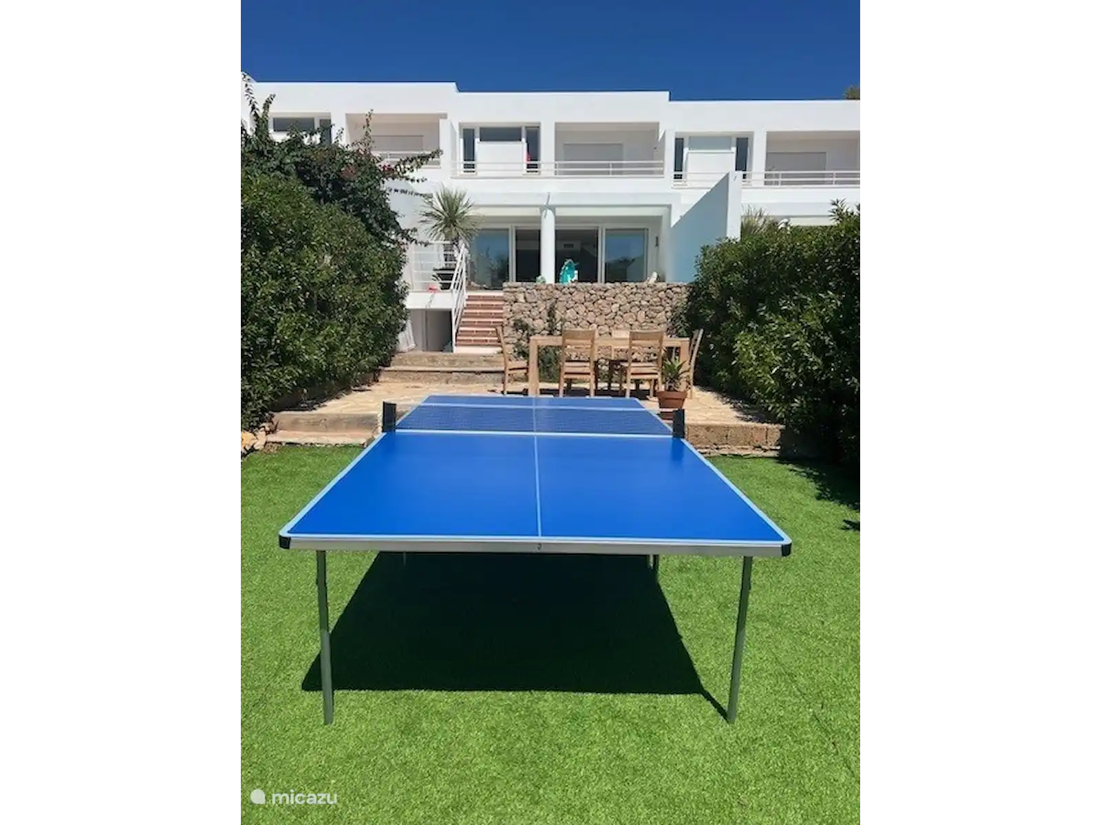 De plus, la maison dispose d’un beau grand jardin orienté plein sud. Le jardin est directement adjacent au terrain de golf, d’où vous pourrez profiter de la vue magnifique. Vraiment une oasis de paix. Dans le jardin, il y a une grande table à manger, un parasol et un barbecue, ce qui vous permet de profiter longtemps du temps chaud. Mais pour les plus actifs, vous pouvez également jouer au ping-pong sur la table mise à disposition. Sur la terrasse, il y a un ensemble de salons où tout le monde peut se détendre au bord de la piscine privée. Après la baignade, vous pouvez vous rincer dans la douche extérieure. La maison est également équipée d’une machine à laver, d’un sèche-linge et d’un parking privé. Nous vous recommandons de louer une voiture / scooter à Ibiza.