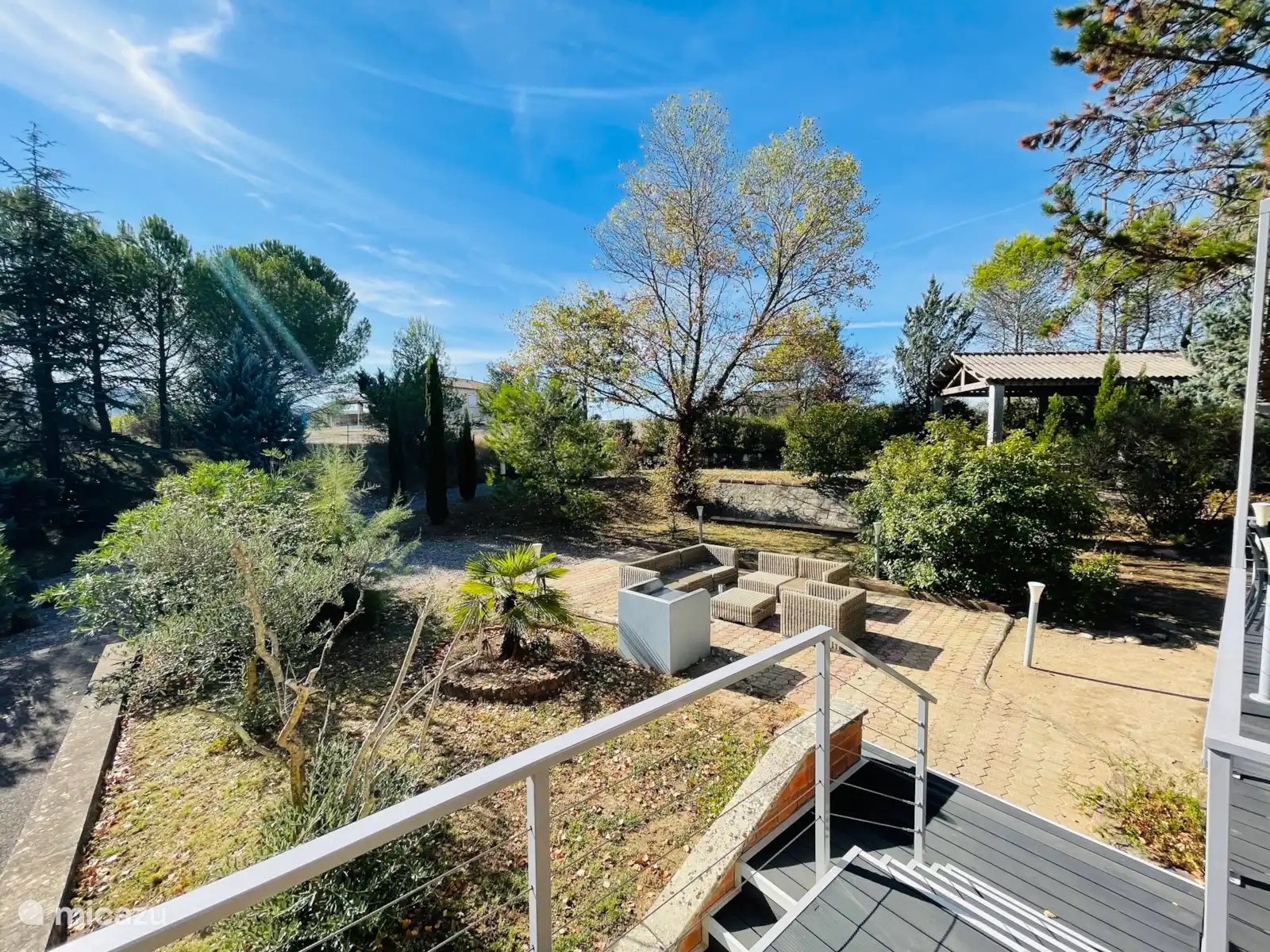 Villa de vacances dans 1 grand jardin arboré entièrement clôturé (8000 m2). Emplacements de parkings.