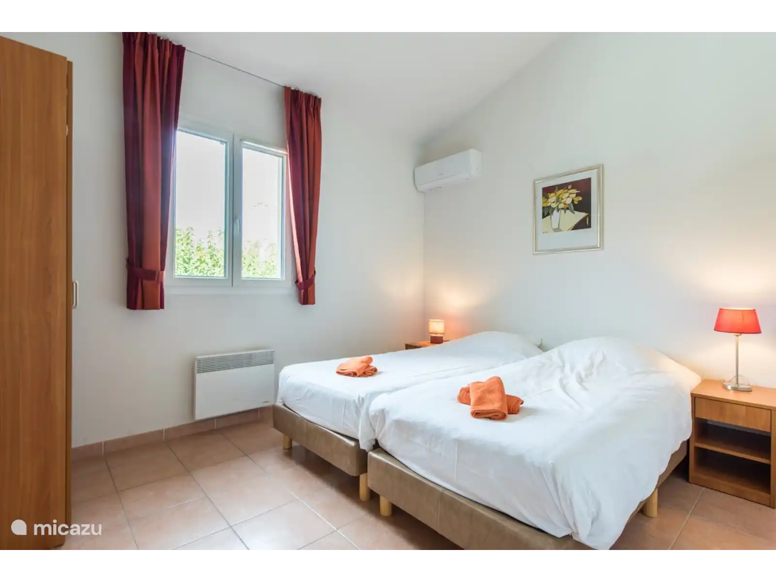 La villa dispose de quatre chambres, toutes pouvant accueillir deux personnes. Deux salles de bains, une avec baignoire, lavabo et toilettes (rez-de-chaussée) et une avec cabine de douche et lavabo (premier étage). La villa est équipée d’une connexion internet wifi. Les lits sont faits à l’arrivée.