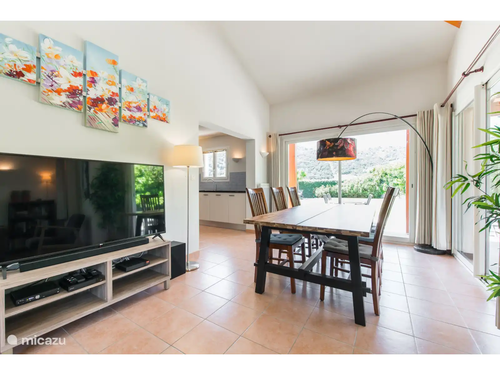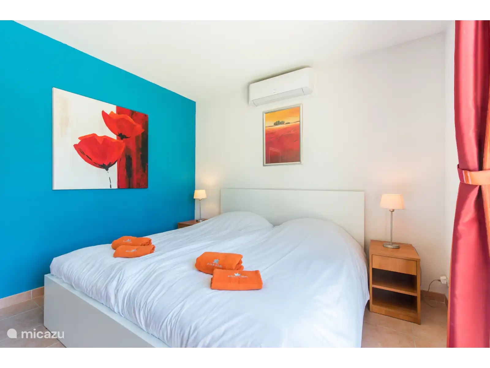 Du salon, vous passez à la salle à manger avec coin repas et doubles portes coulissantes donnant sur la terrasse. La cuisine ouverte spacieuse est équipée d’une plaque à induction, d’un four, d’un micro-ondes et d’un lave-vaisselle. La villa est adaptée aux bébés ; Lit bébé, chaise haute et matelas à langer sont disponibles dans la maison (gratuitement). Les 4 chambres disposent de la climatisation, ce qui est nécessaire dans le climat merveilleusement chaud en été. Au rez-de-chaussée se trouvent 2 chambres doubles et une salle de bain avec lavabo et douche. Au premier étage, il y a deux autres chambres doubles et une salle de bain avec baignoire, lavabo et toilettes. Dans deux chambres, les lits ont une longueur de 2,10 m, dans les autres chambres, les lits ont une longueur de 2,00 m. Les lits sont faits à l’arrivée. Les animaux de compagnie sont acceptés à la Villa Bienvenue.