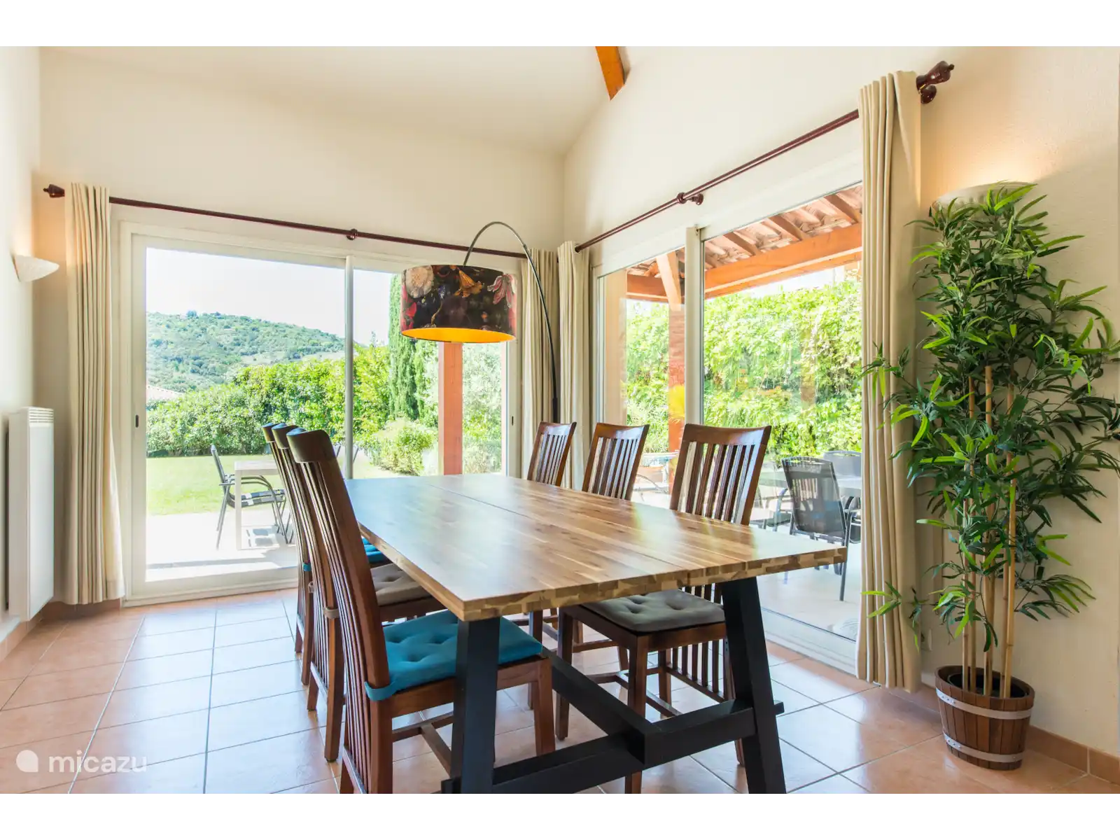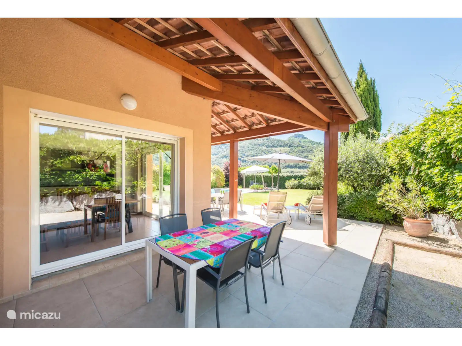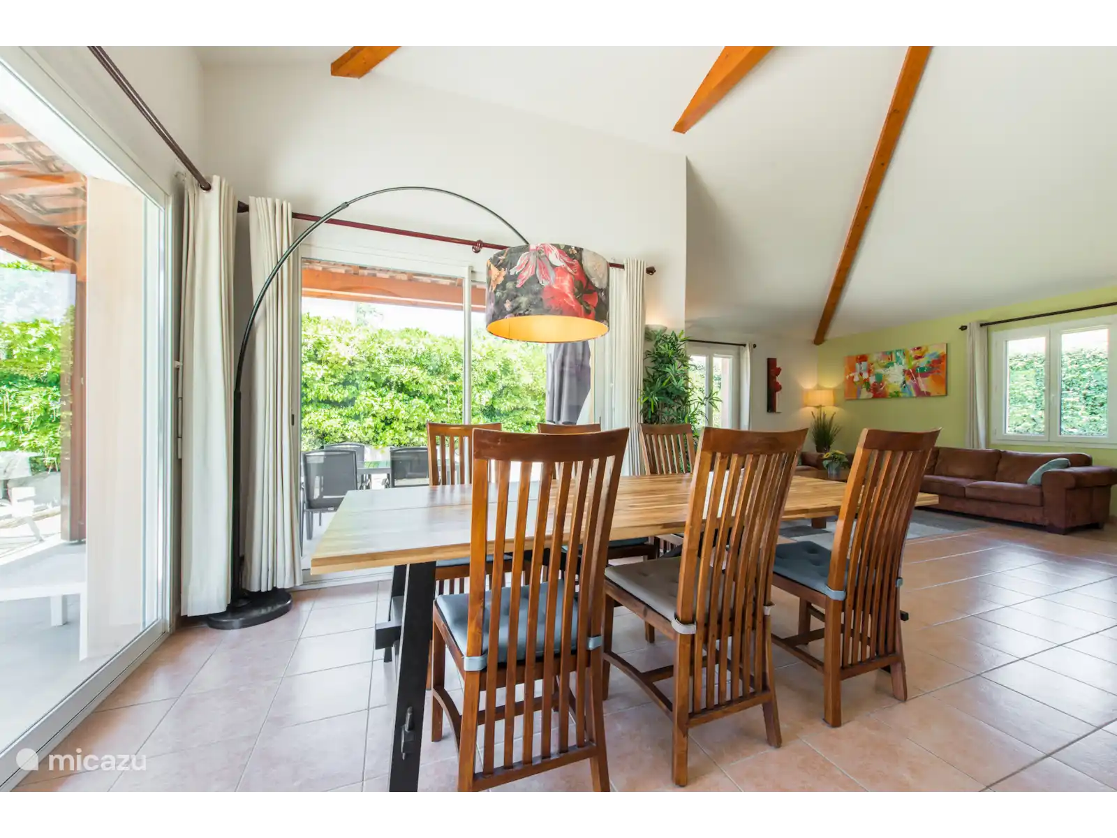 Il y a aussi un terrain de jeu de boules français original dans le jardin. À l’arrière du jardin, vous trouverez un coin salon ombragé supplémentaire sous les arbres. Cette belle villa offre beaucoup d’intimité dans le jardin. La villa se trouve sur un terrain spacieux de 1000m2 avec un espace de stationnement pour 3 voitures.