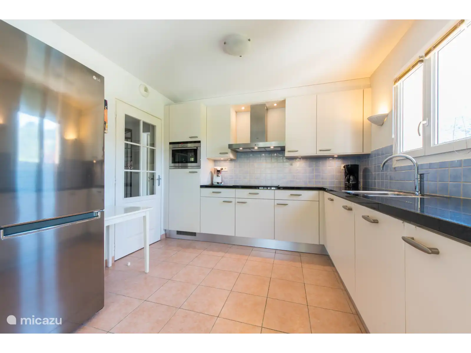 Dehors: De la villa, vous pouvez marcher directement dans votre jardin où vous pourrez profiter de l’extérieur sur la grande terrasse couverte avec des meubles de jardin modernes. La piscine privée chauffée (4,5 x 9 m, profondeur 1,1 - 2 m) dispose d’un escalier pour un accès facile. La piscine privée est ouverte d’avril à octobre. À côté de la piscine se trouve une belle pelouse, idéale pour que les enfants puissent jouer.