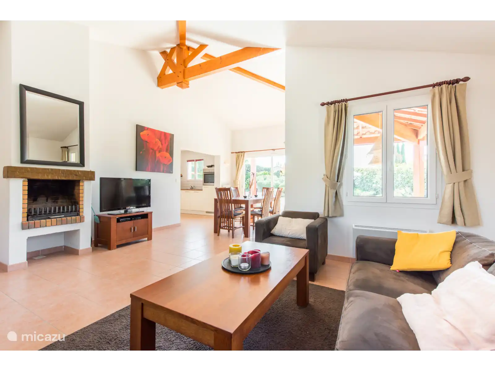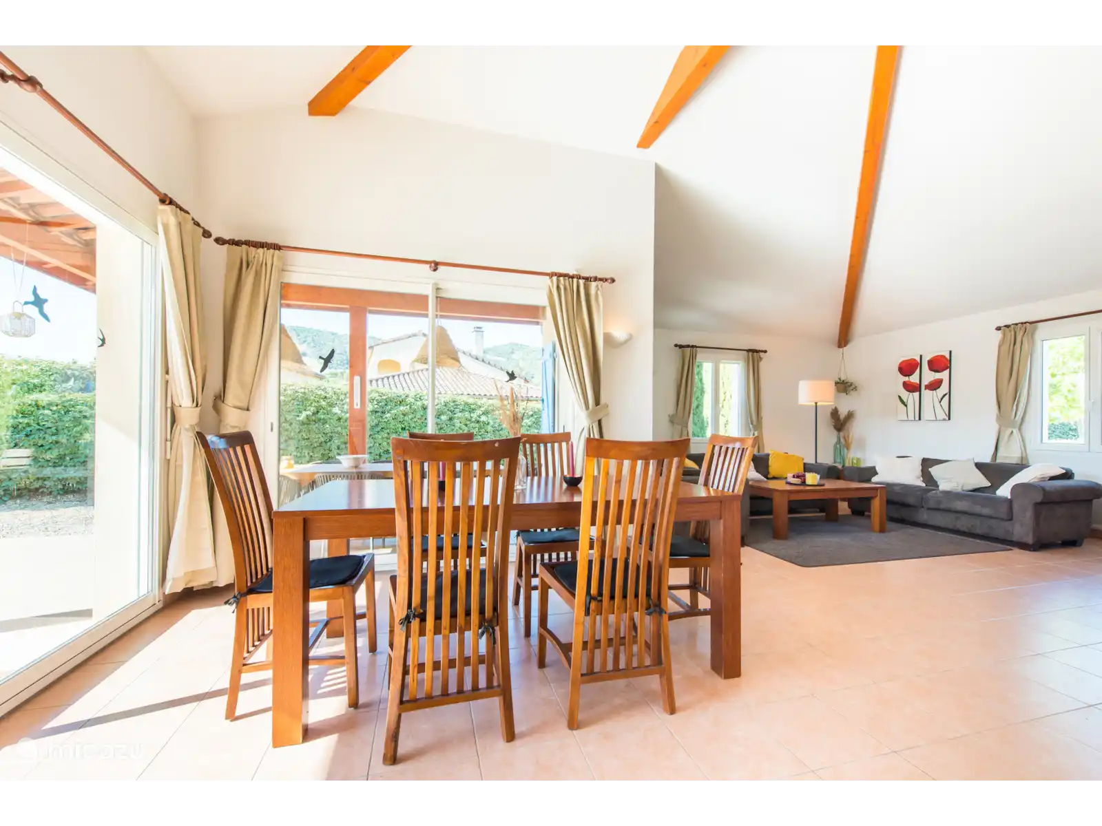 Villa avec beaucoup d’espace, confortablement meublée et entièrement équipée. Salon chaleureux avec de grands canapés, salle à manger avec table et 6 chaises, des portes coulissantes doubles donnent accès à la terrasse. Grande cuisine ouverte avec lave-vaisselle et four. Trois