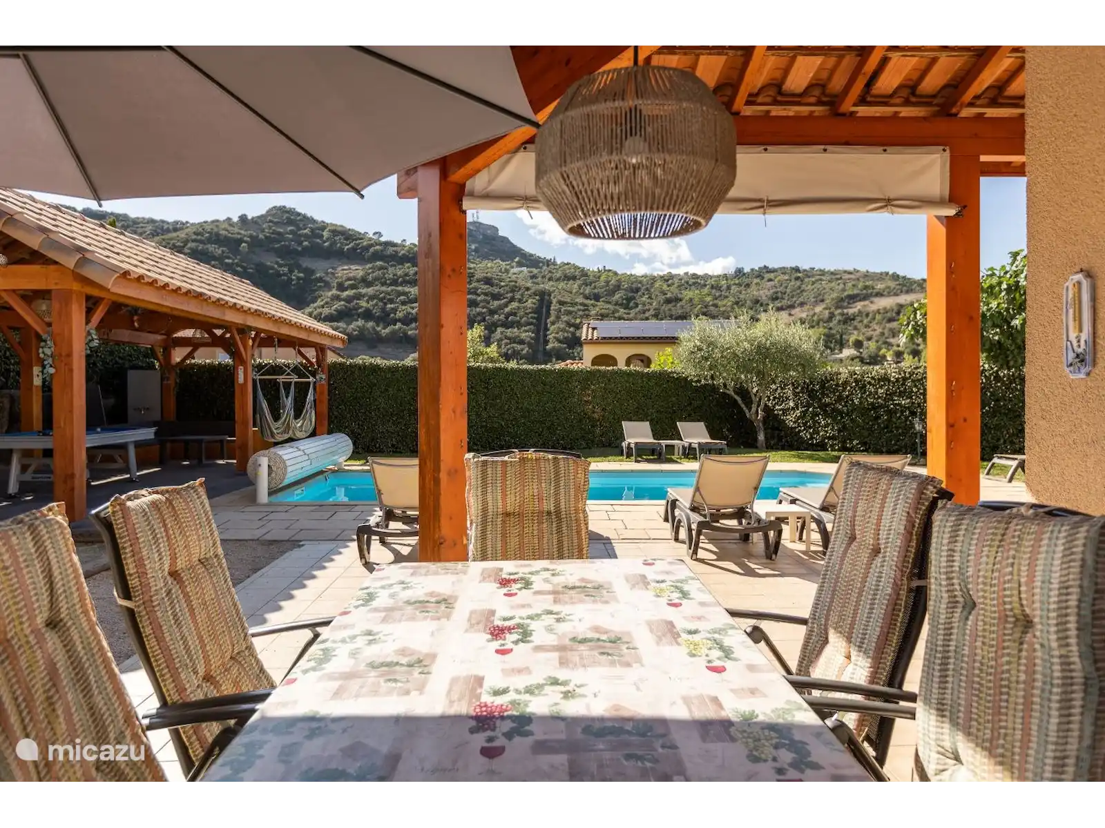 Villa très complète et luxueuse, maintenant depuis octobre 2024 avec climatisation. 4 chambres, 2 salles de bains, balcon à l’étage, 785 m2 de terrain. Le jardin est également idéal pour les chiens car ils ne peuvent pas s’échapper. Une cage pour chien est standard. Inventaire de cuisine très complet comprenant 2 réfrigérateurs avec compartiment congélateur. Grande télévision intelligente avec toutes les applications imaginables. Abri voiture, débarras avec machine à laver et sèche-linge, auvent avec table de billard, tennis de table, jeu de fléchettes et ensemble de salon, belle vue sur la crête le long de laquelle coule la rivière. Connexion Internet 2Gb via fibre optique. Une station de recharge pour la voiture électrique à la maison. Le parc dispose également d’installations à usage partagé telles qu’une grande piscine, des courts de tennis, un terrain de football/basket-ball, une prairie pour enfants, une table de ping-pong. Vallon Pont d’Arc et Ruoms à distance cyclable. Les magnifiques « Gorges de l’Ardèche » sont à 10 minutes en voiture. Par les escaliers dans le parc de la villa, vous pouvez marcher jusqu’à la belle rivière Ardêche. Il y a aussi beaucoup à faire à proximité. Terrains de padel à proximité du parc de la villa, golf à Grospierres, canoë sur l’Ardèche, parc aventure, karting, quad , équitation et bien sûr profiter des magnifiques environs.