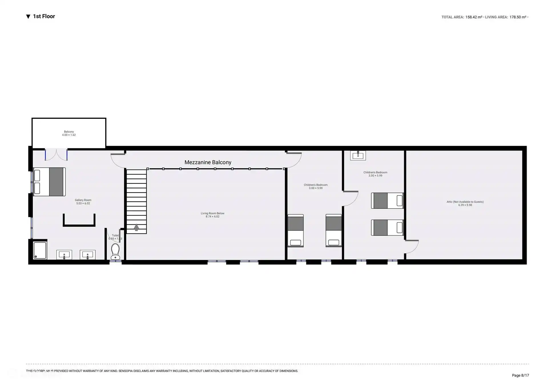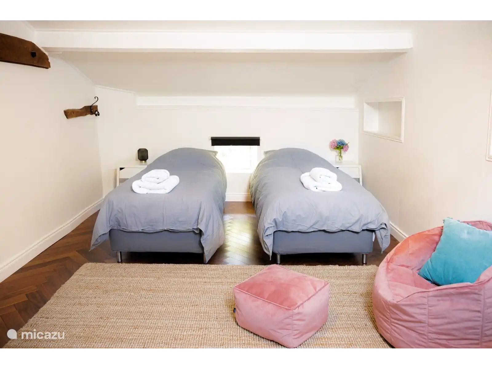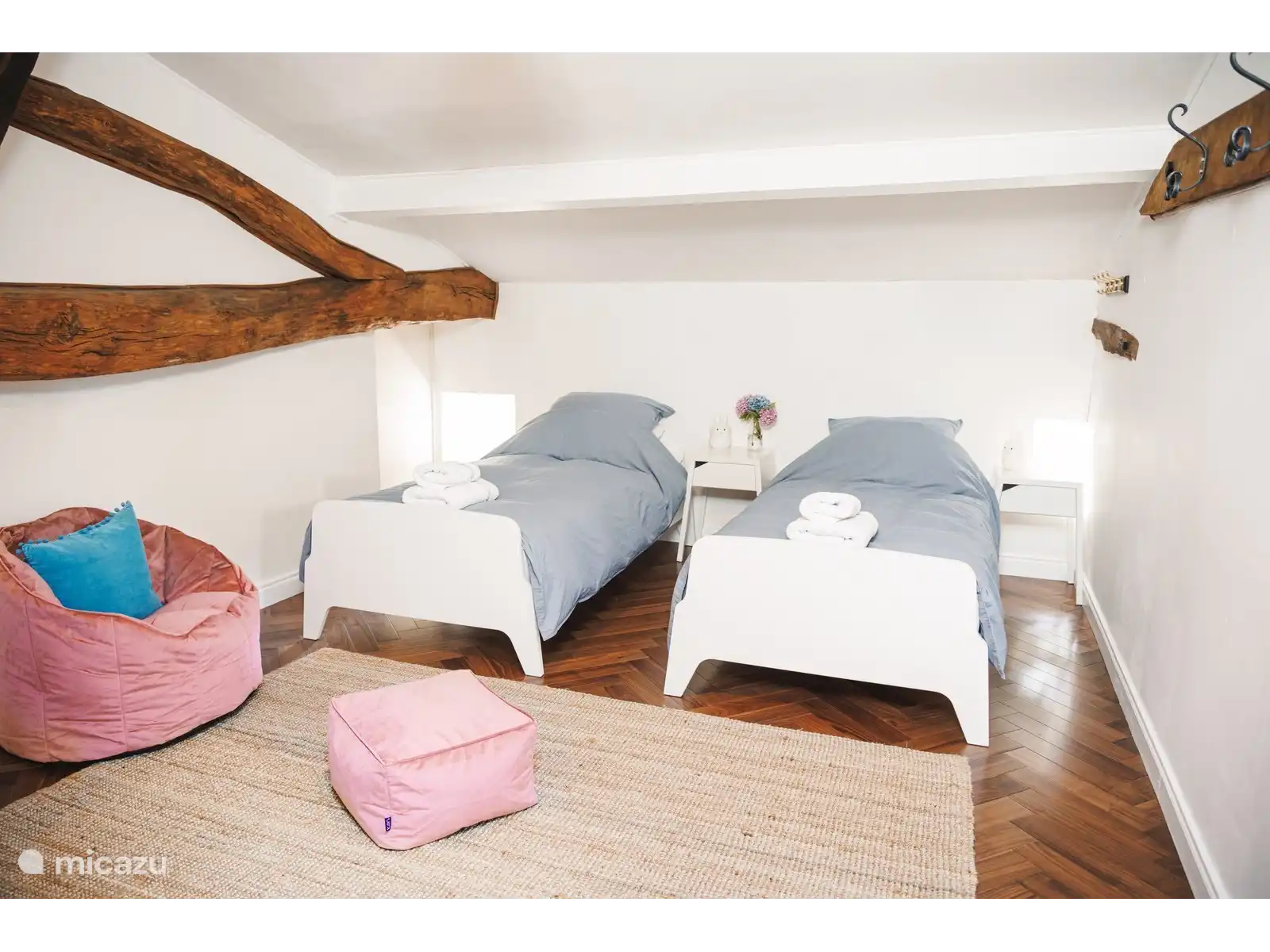 Les chambres des enfants (premier étage) - Deux chambres mansardées, toutes deux avec deux lits simples et une salle de bain partagée.