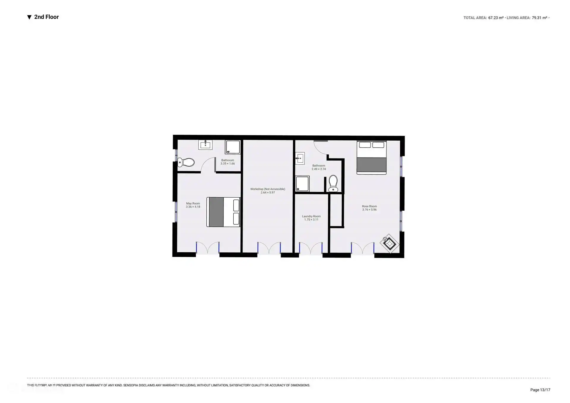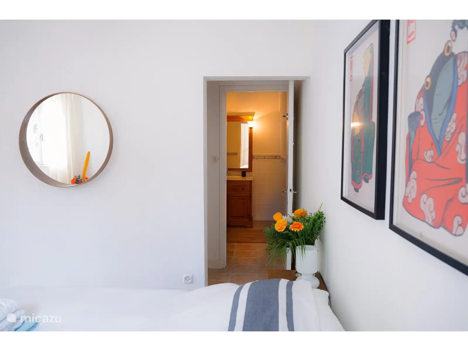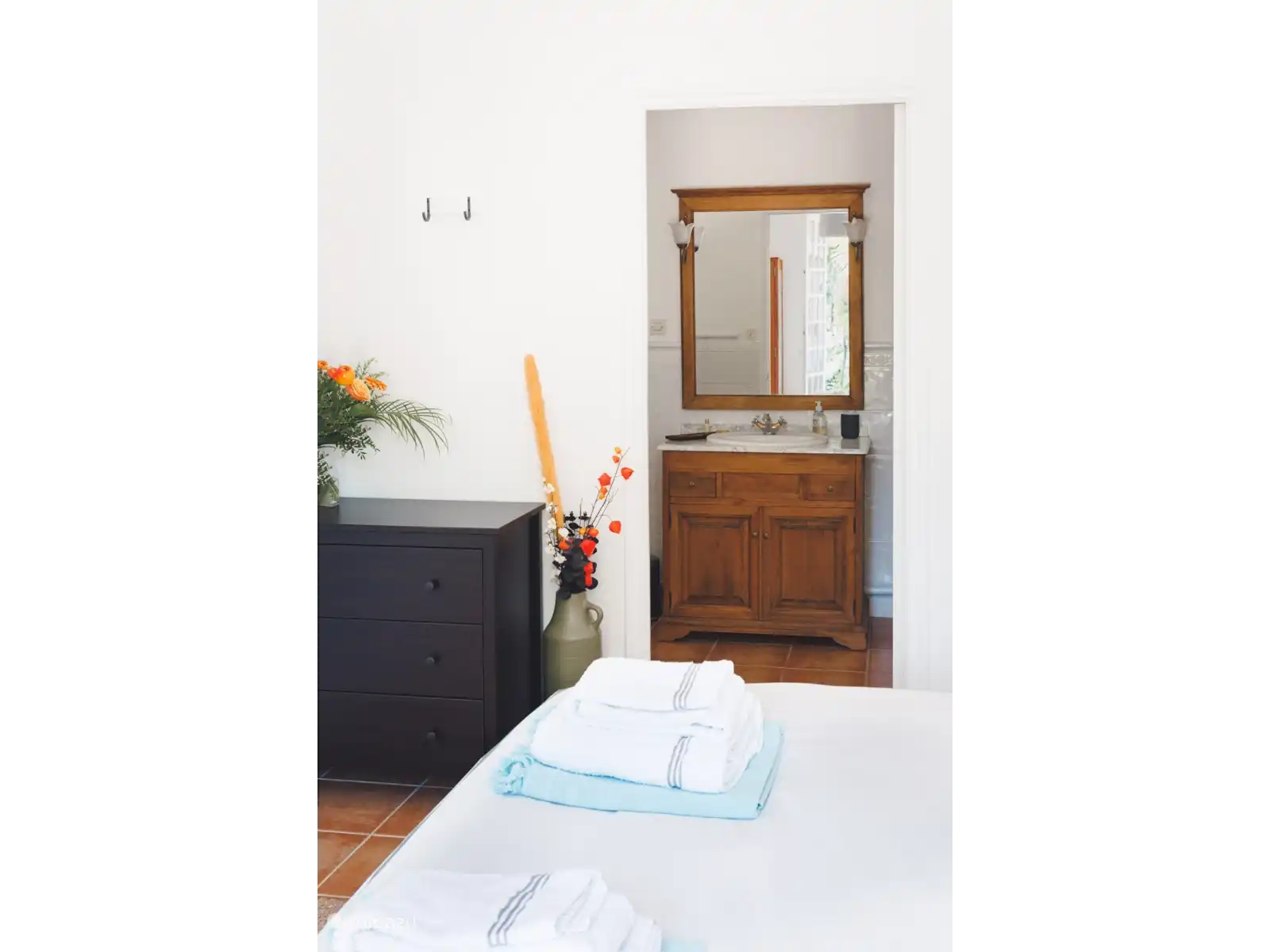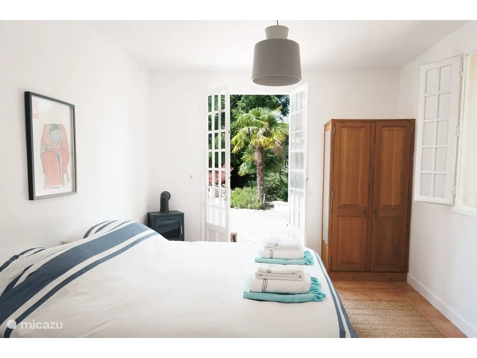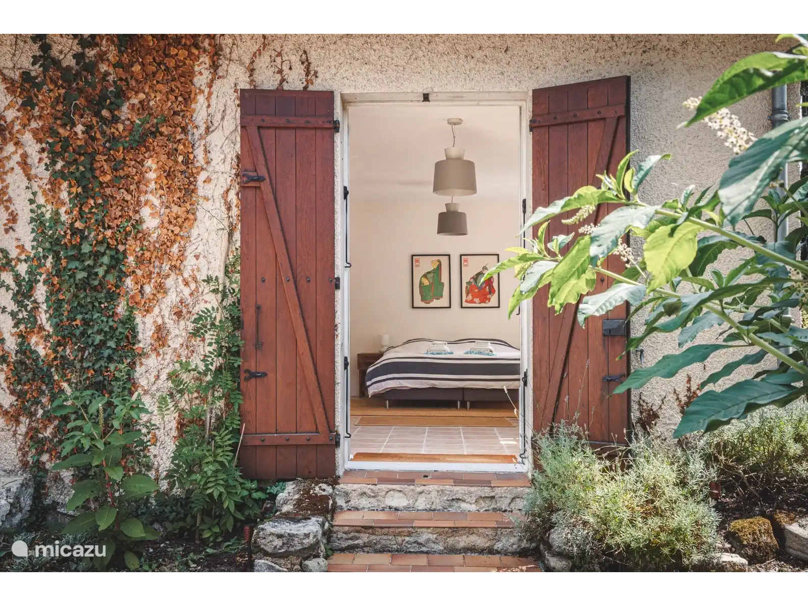 La 'May Room' - Chambre double avec douche et WC privatifs. Portes-fenêtres donnant sur la cour.