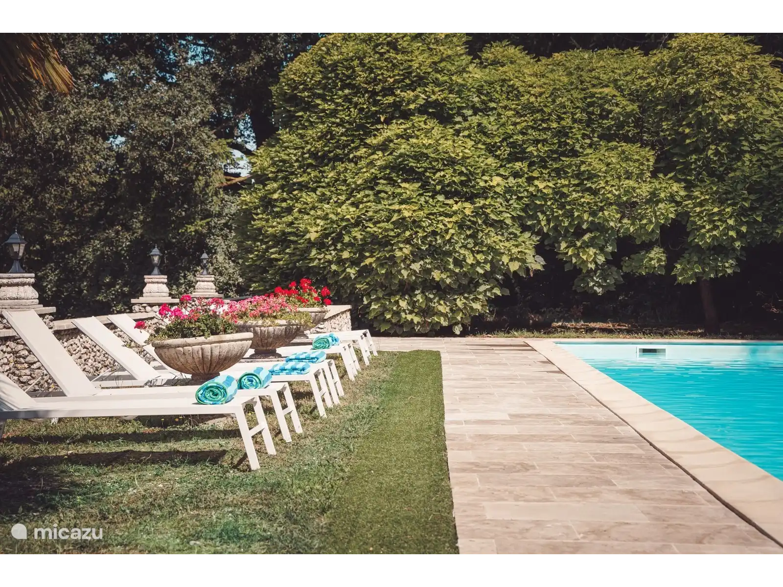 Petit Pezet dispose d’un grand terrain - quatre acres de jardin en pente douce bordé d’arbres boisés matures, y compris des pins parasols anciens, des pins panachés géants, des chênes rouges anciens, des bouleaux, des érables et des saules pleureurs.