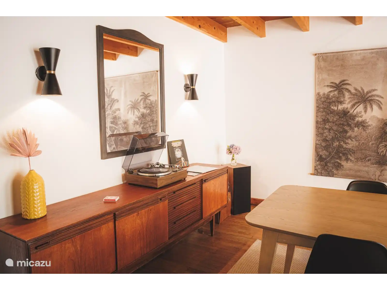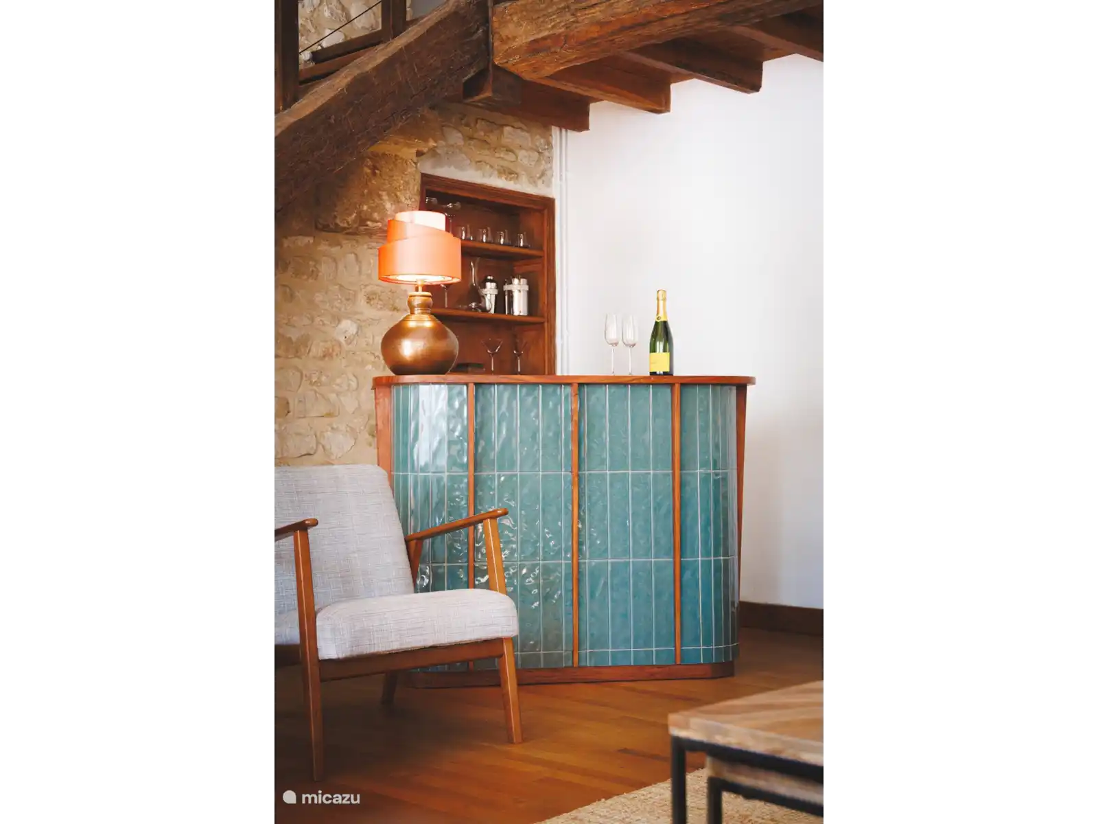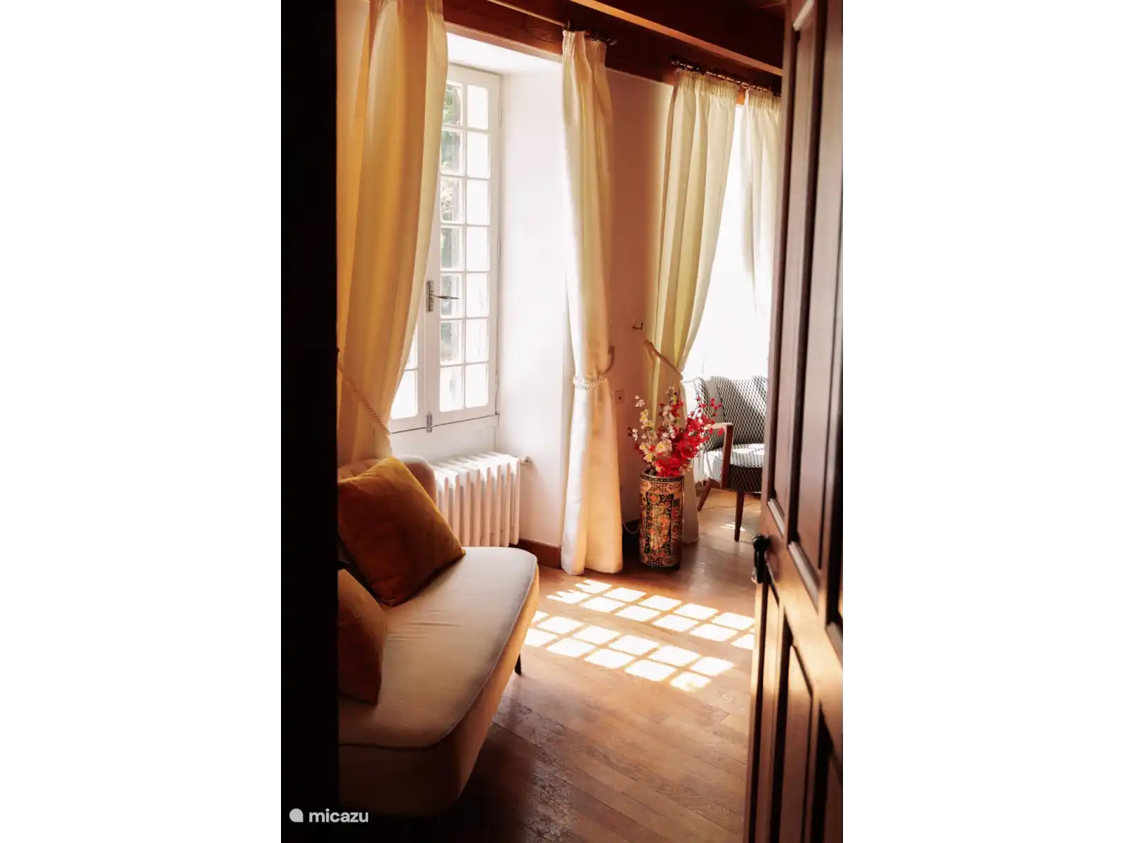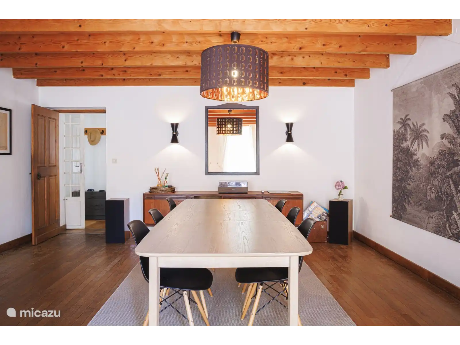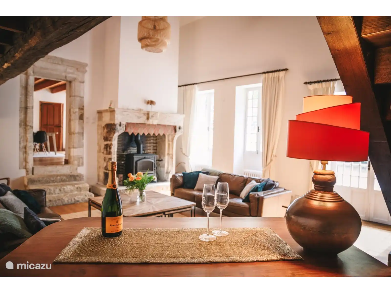 La maison principale en pierre est une ancienne ferme avec une grange aménagée qui a été restaurée avec amour par le Médecin de Village et son épouse qui y a vécu pendant de nombreuses années. C’est une maison charentaise moderne et typique qui est pleine de caractère d’époque avec de hauts plafonds avec des poutres en chêne apparentes, d’immenses cheminées et de vieilles pierres.