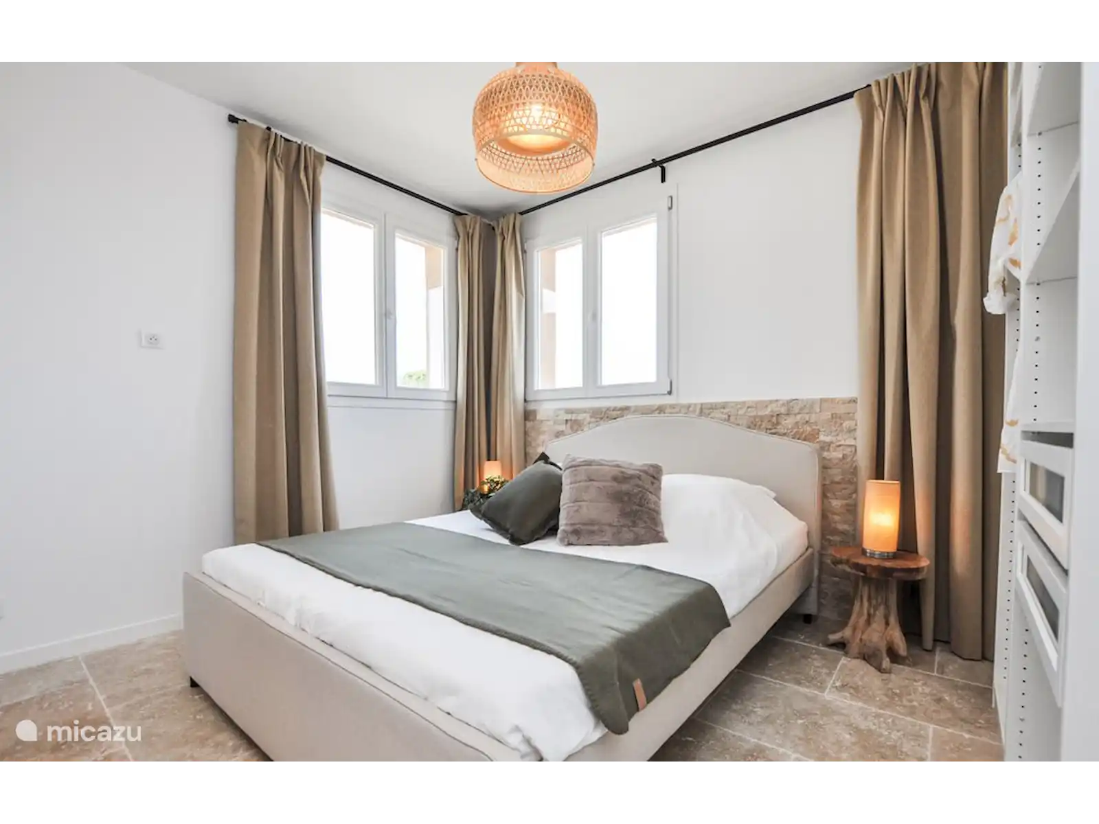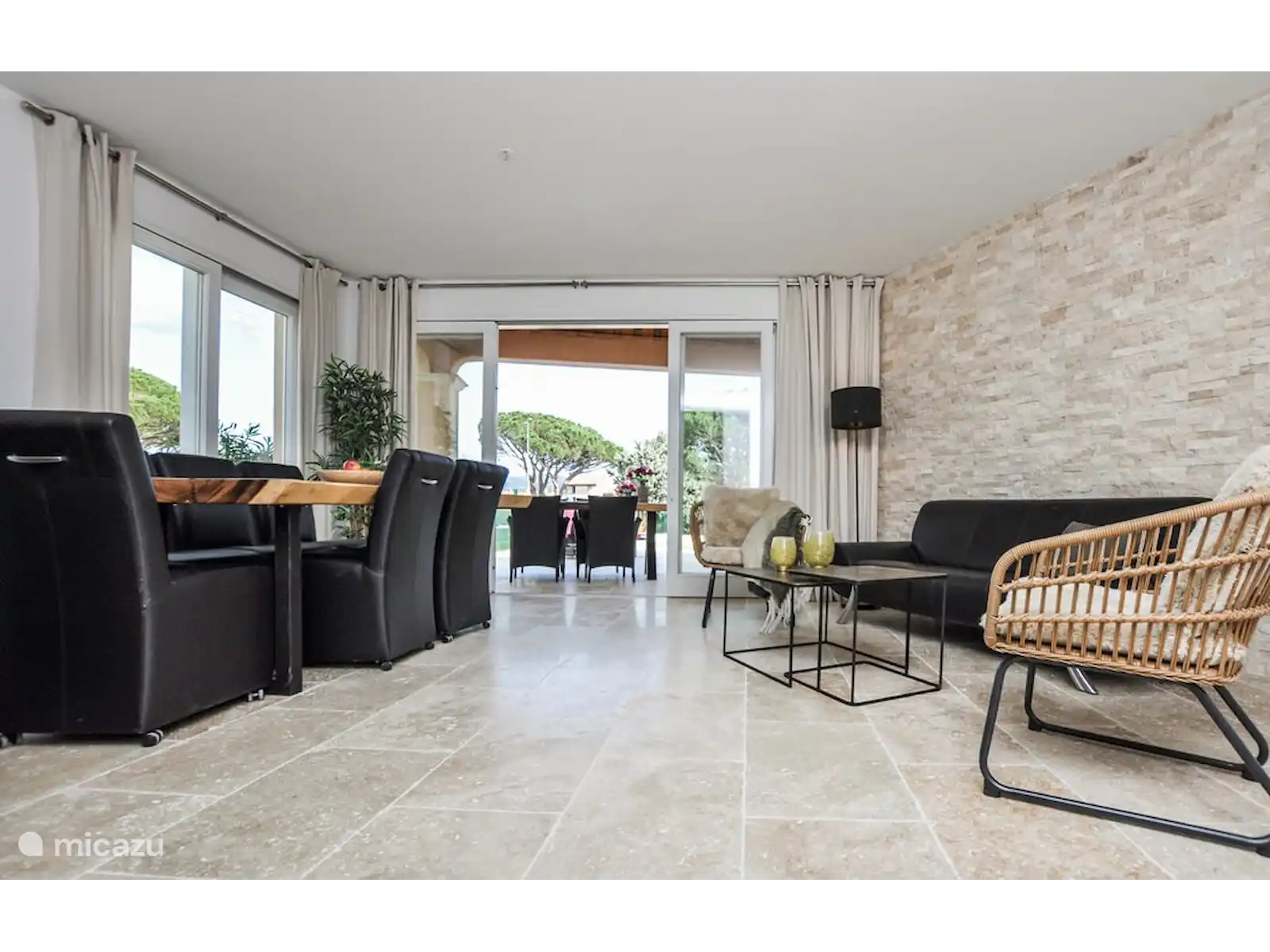 - Séjour cosy avec coin salon et vue sur la piscine. Cuisine ouverte aménagée et entièrement équipée. Télévision connectée disponible.