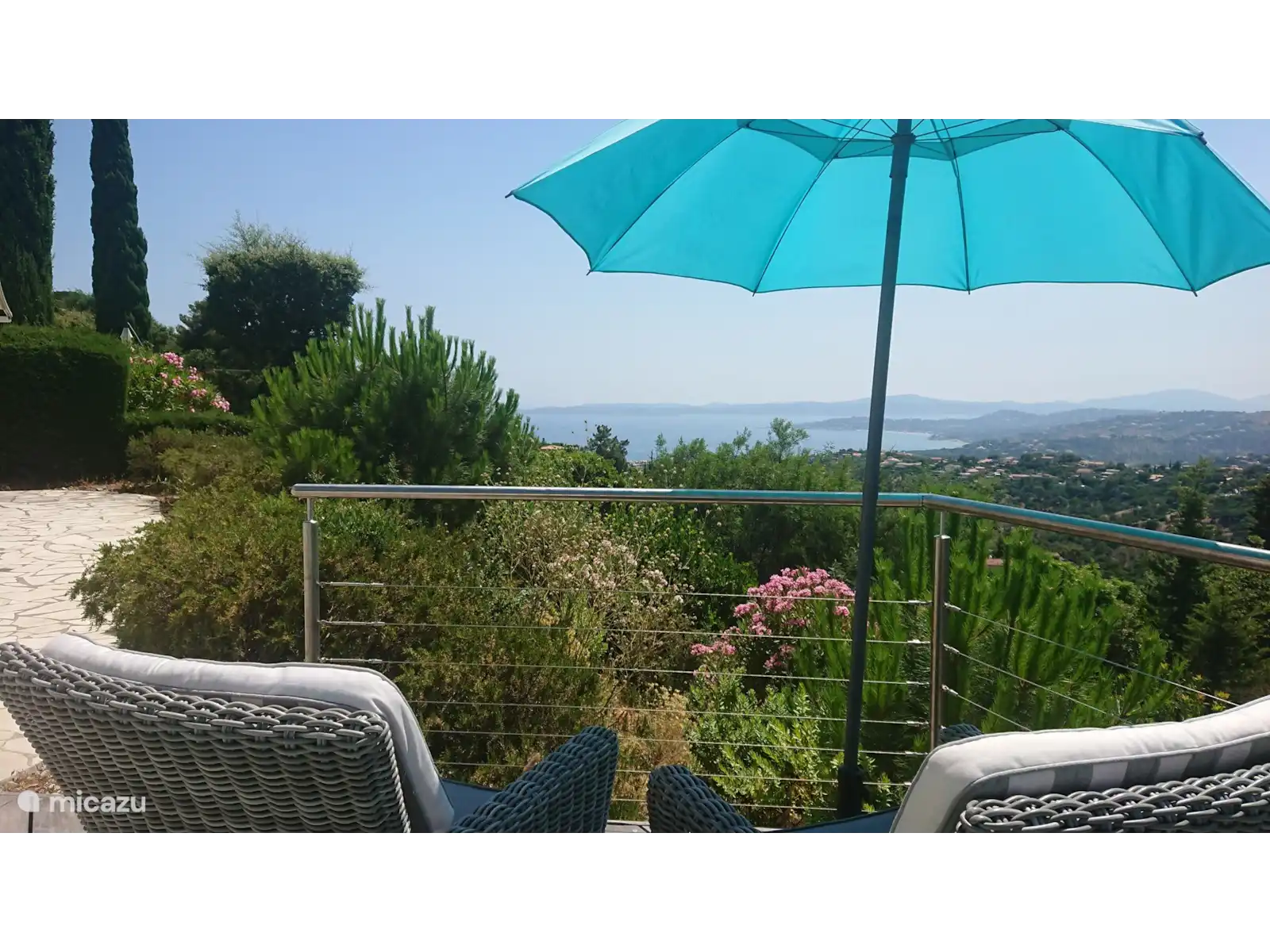 Belle villa individuelle avec une vue imprenable sur la baie de Saint-Tropez depuis une terrasse confortable et une belle piscine. Au bout d’un cul-de-sac tranquille.
