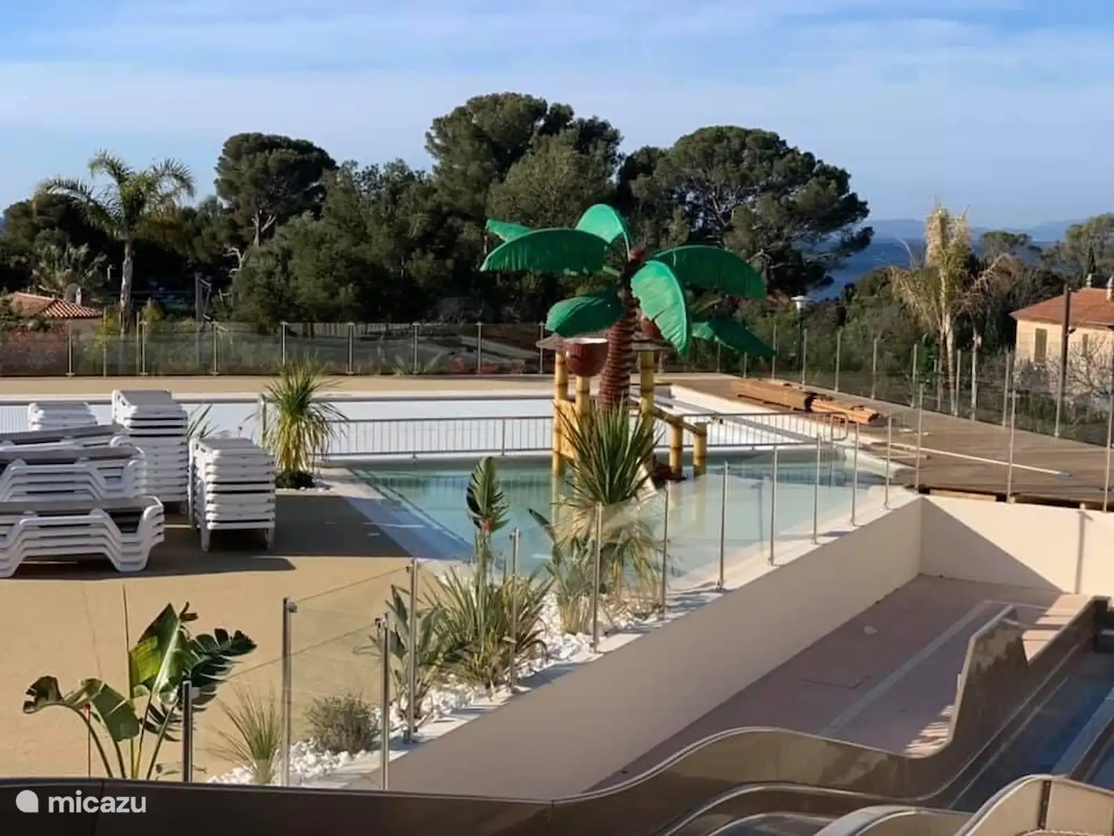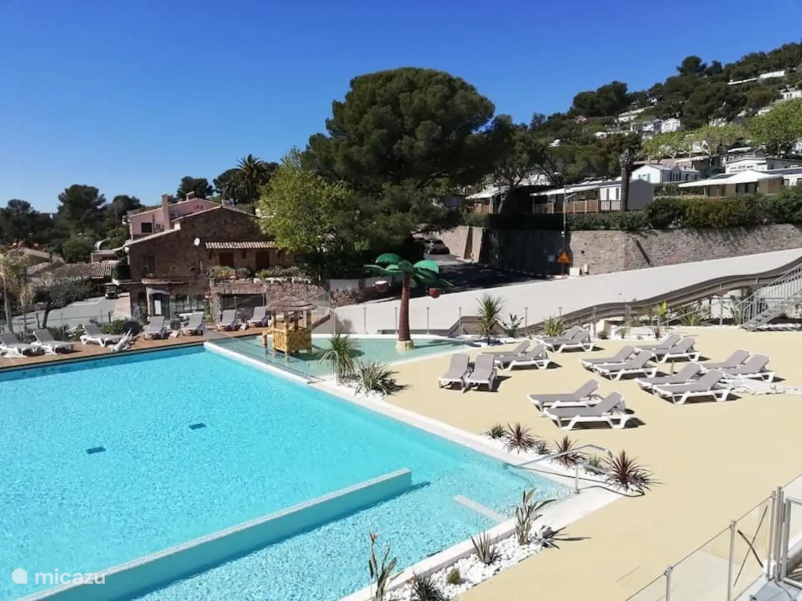 Camping en terrasses très calme (même en haute saison) avec de nombreux habitués. Bar, boutique, piscine, aire de jeux et restaurant à l'entrée du camping (sur la route côtière) à 2 minutes à pied de notre emplacement. Le site (environ 40 mètres au dessus de la mer) est l'un des plus beaux du camping avec une vue magnifique sur la mer et l'île d'Or. Il n'y a aucune nuisance des passants et des voitures. Un endroit avec une intimité absolue. Il y a toujours du soleil sur la terrasse (environ 35m2). Des meubles de jardin sont disponibles. Vous pouvez garer votre voiture à côté de la caravane.