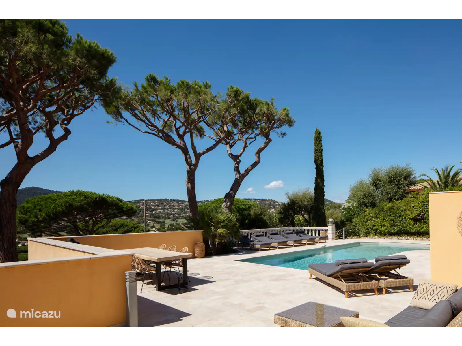 L’emplacement est idéal : la plage (Plage La Nartelle) se trouve à environ 1 km, le centre animé de Sainte-Maxime est accessible en 5 minutes en voiture et, depuis le port, le ferry vous emmène à Saint-Tropez en environ 15 minutes. Dans les environs immédiats, vous trouverez des villages charmants tels que Grimaud et Cogolin ainsi que divers parcours de golf.