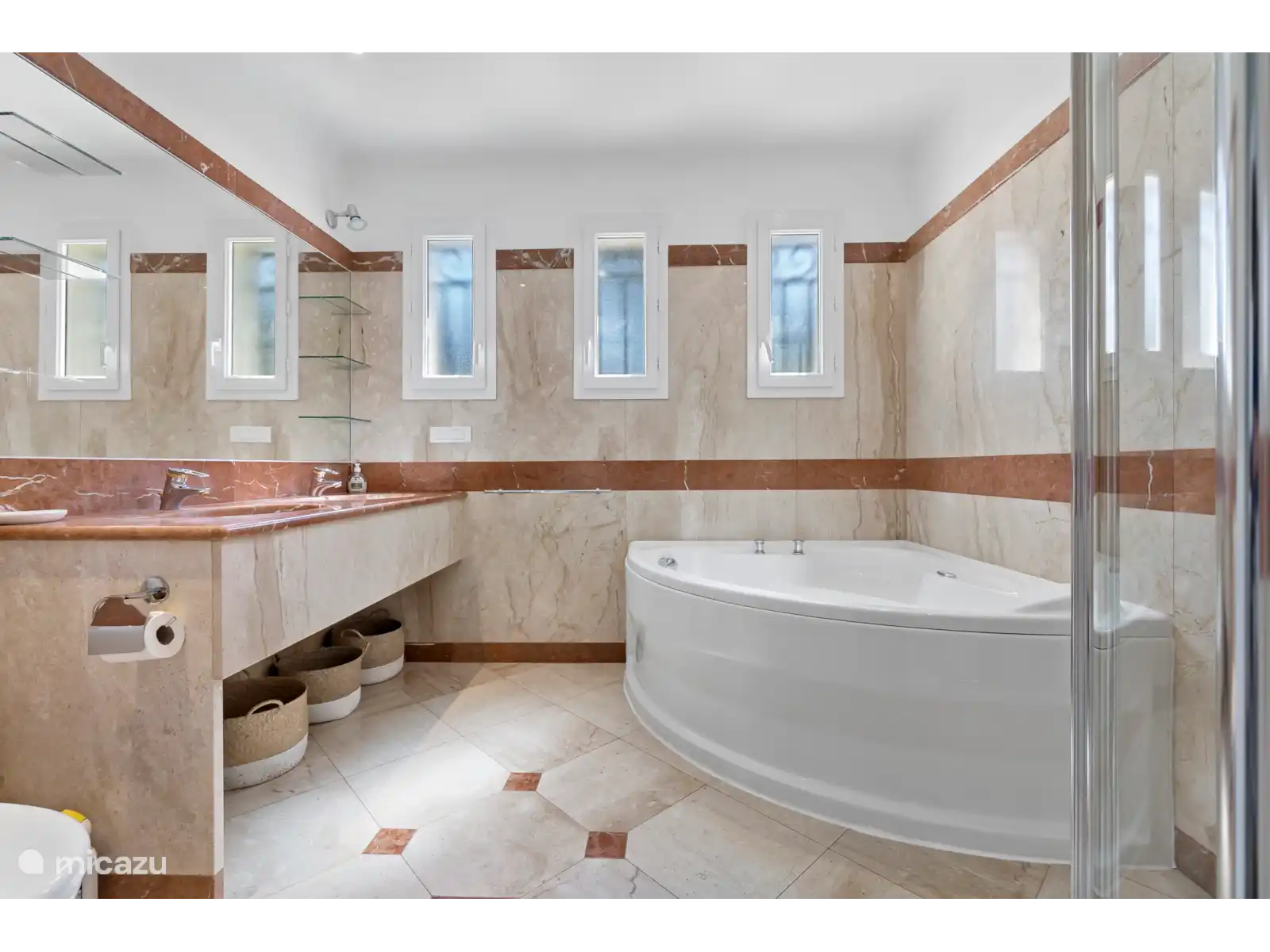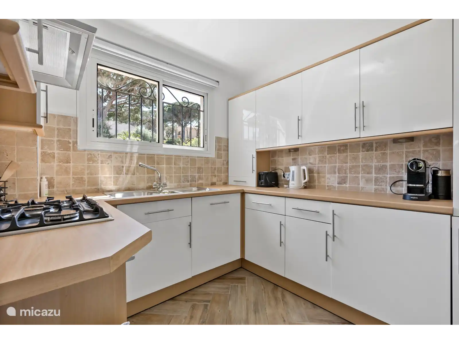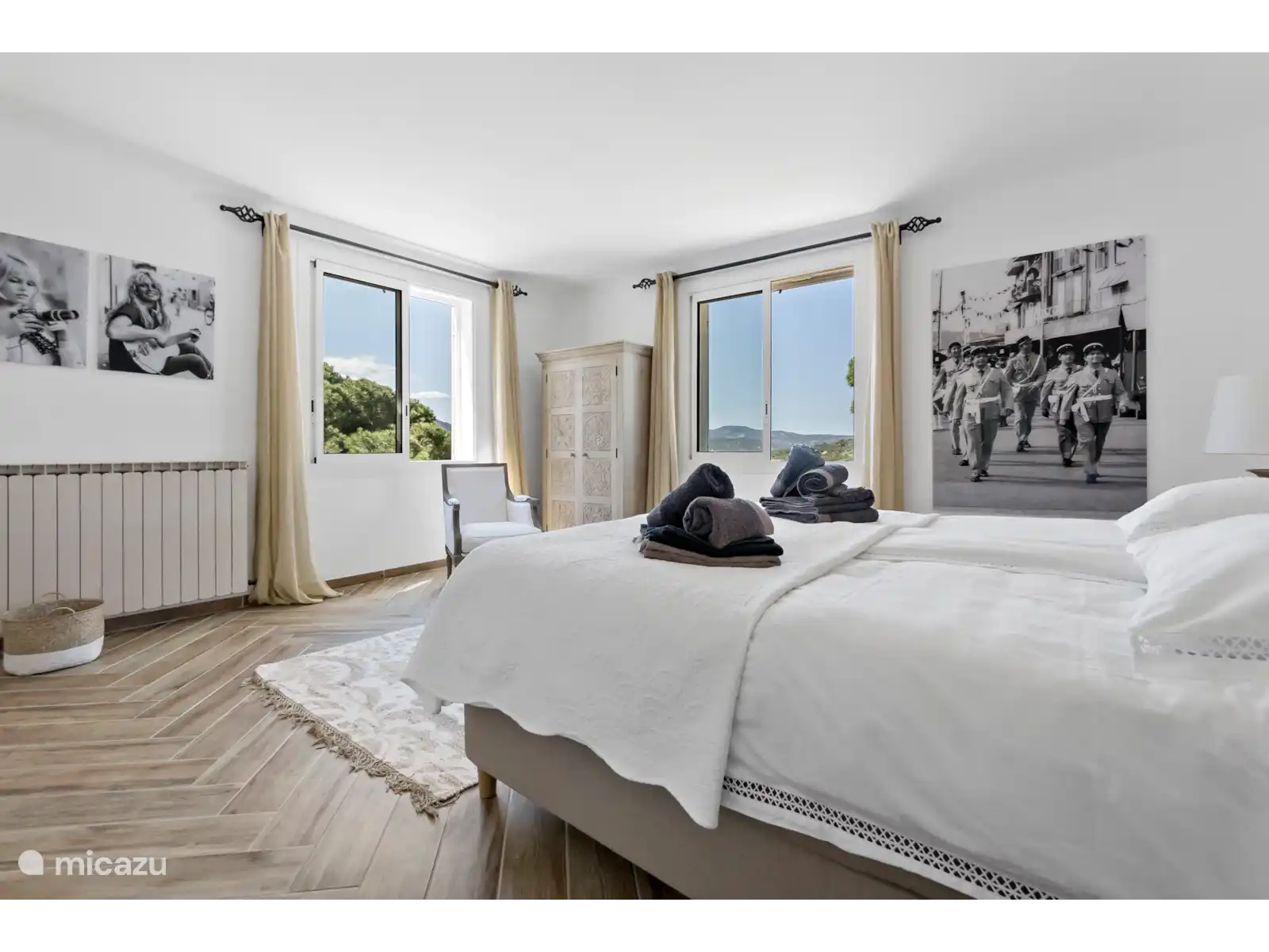 Au total, il y a 5 chambres et 3 salles de bains, toutes meublées de façon confortable et élégante. Les chambres offrent des lits confortables, beaucoup d’espace dans les placards et une ambiance calme. Les salles de bain sont modernes et équipées de douche et/ou de baignoire. De plus, il y a deux cuisines équipées d’appareils électroménagers modernes et une kitchenette avec réfrigérateur, machine Nespresso et bouilloire.