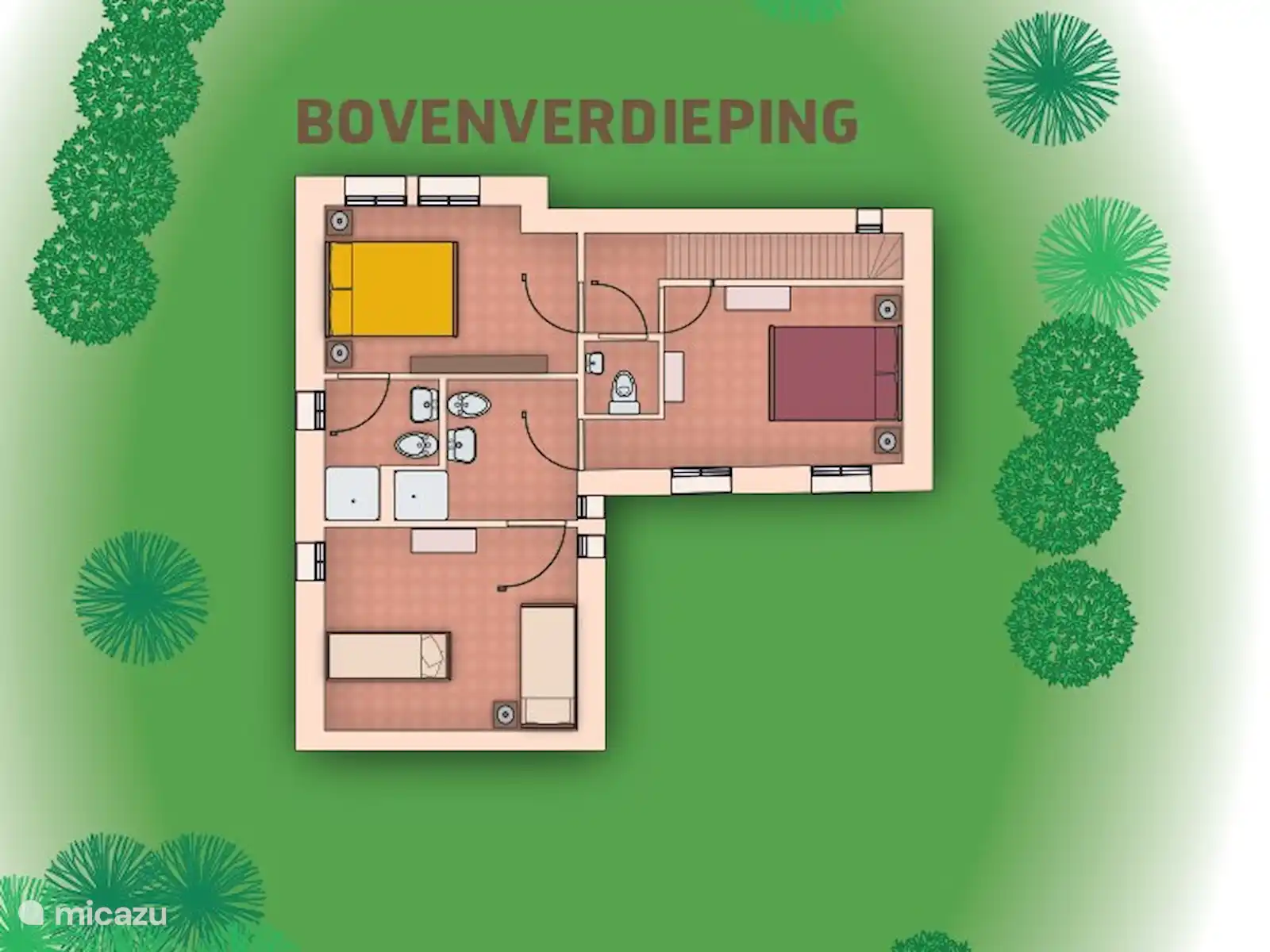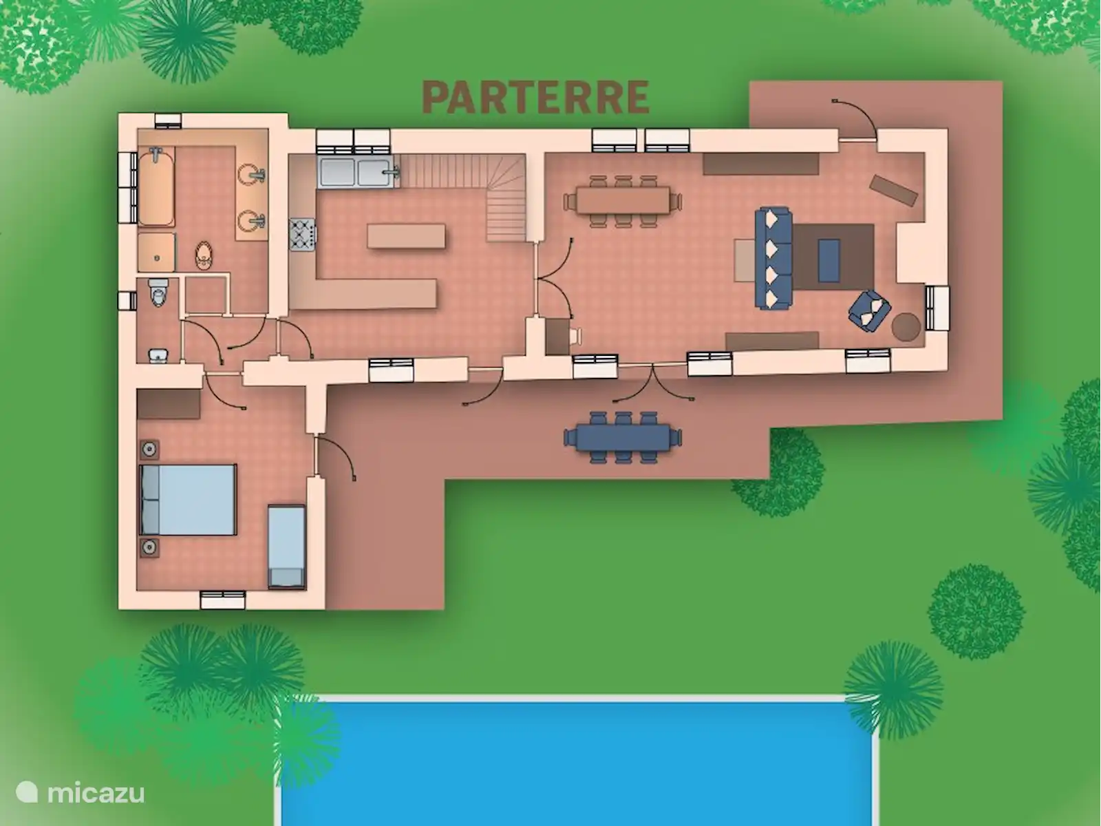 Le salon/salle à manger avec cheminée est joliment meublé avec une table à manger pour au moins 8 personnes et une grande télévision LED (50 pouces) avec parabole (y compris les chaînes néerlandaises), Netflix et Chromecast. Il y a un accès internet wifi en fibre superrapide gratuit (jusqu’à 500 Mo). La cuisine bleue provençante est très bien équipée. Au rez-de-chaussée se trouve la chambre principale avec une grande salle de bain avec douche et baignoire, ainsi qu’une toilette. Au premier étage, il y a 3 autres chambres, dont une chambre pour enfants (pour un maximum de 2 enfants). On peut y accéder par la chambre principale et ils partagent une salle de bain. La troisième chambre (2 personnes) offre une vue splendide sur la ville de Grasse et dispose d’une salle de douche attenante. À cet étage, il y a encore des toilettes séparées. Dans le studio, accessible de l’extérieur par une entrée privée, se trouve la cinquième petite chambre (maximum 2 personnes). Il y a aussi une salle de bain avec toilettes et une grande pièce avec buanderie et un canapé-lit simple. Disponible pour les enfants : 1 lit de camp, 1 chaise haute, 1 chaise haute à fixer à la table, bain pour bébé, table à langer, balançoire, trampoline, table de ping-pong, football américain, jouets de billard, matériel de badminton, jeux familiaux, cartes à jouer et DVD.