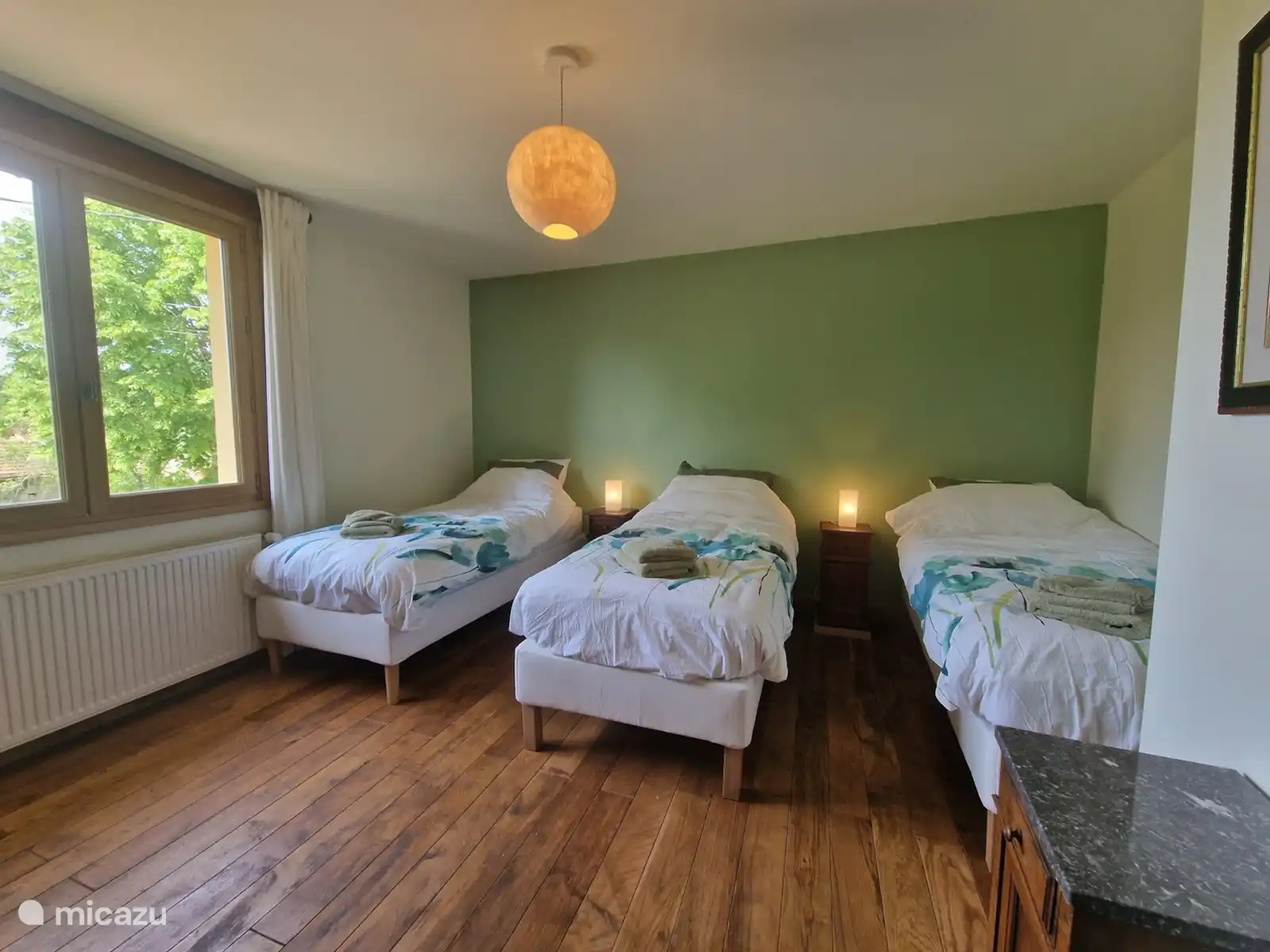 Les quatre chambres spacieuses et attrayantes ont toutes de bons lits déjà faits, des serviettes, des armoires en chêne, un ventilateur et la chambre principale dispose d’un deuxième lieu de travail.