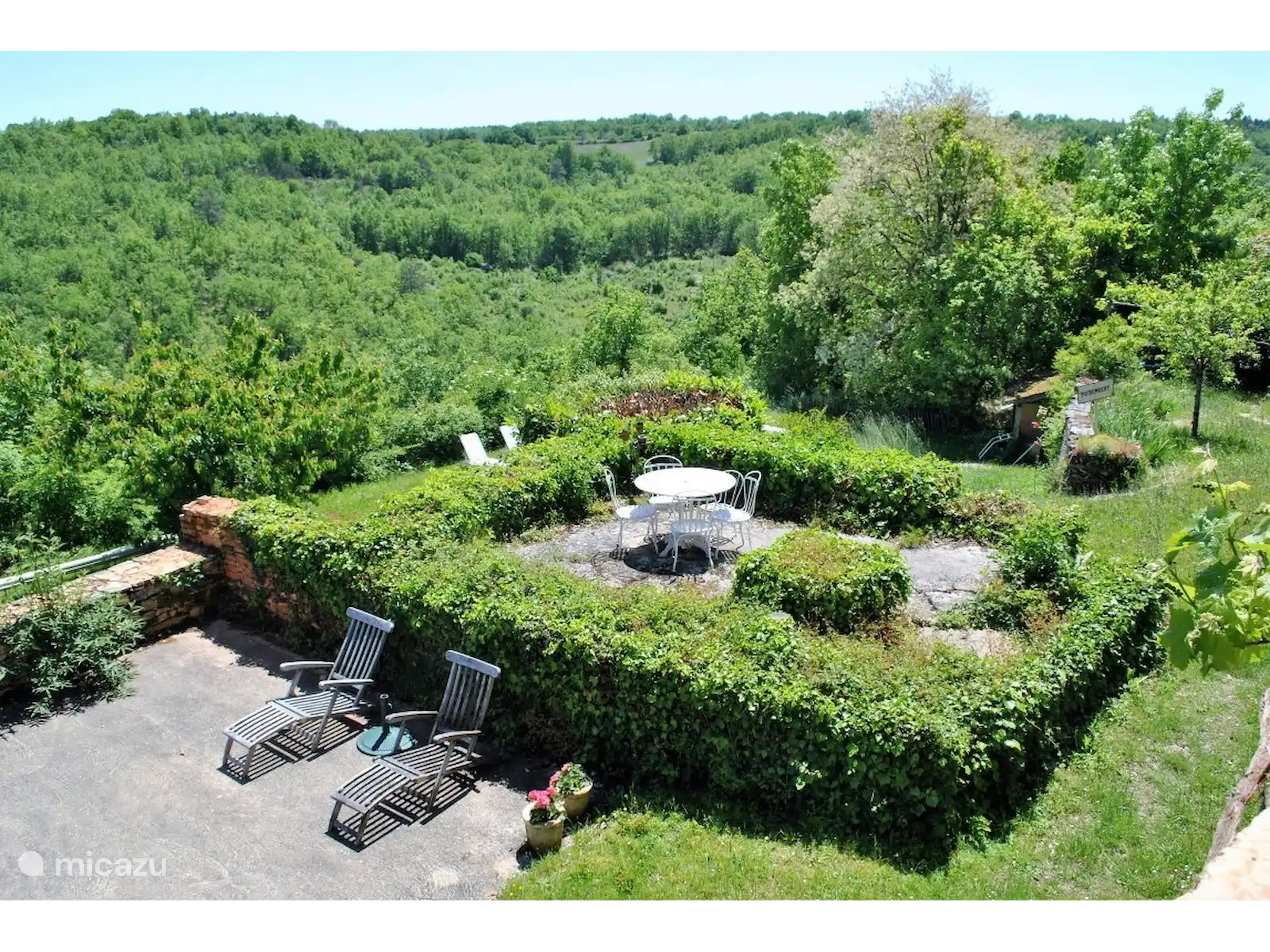 Depuis la maison principale, les terrasses et le jardin, vous bénéficiez d’une vue panoramique sur des dizaines de kilomètres au-dessus des collines. La Pomette, la maison principale, a été créée à partir de la fusion de trois cottages et couvre un total de 250 m2.