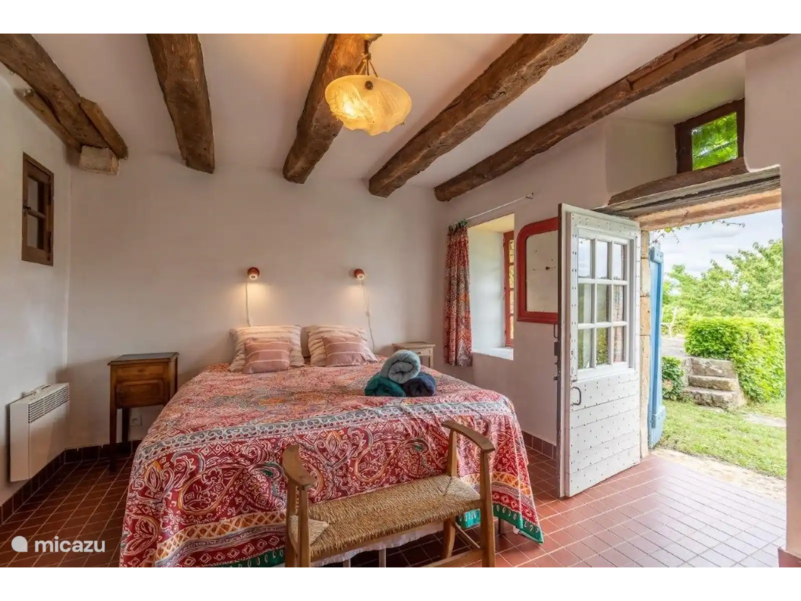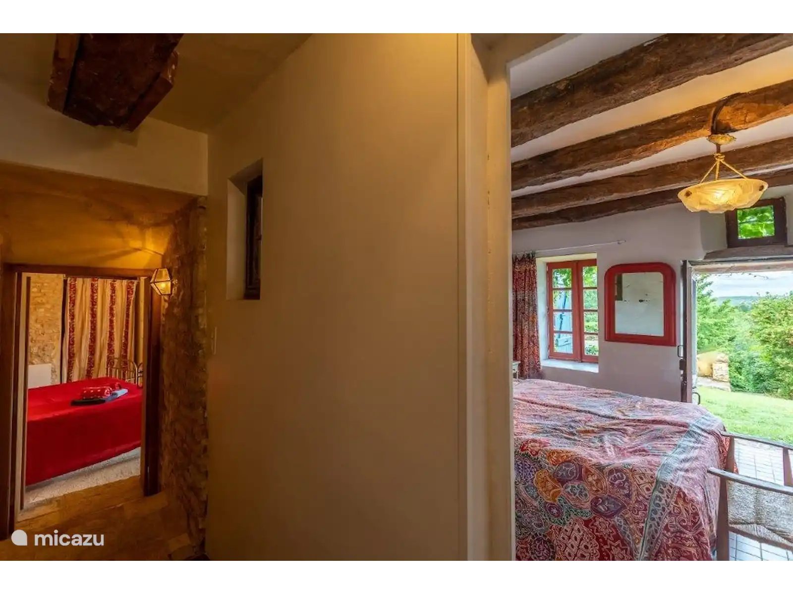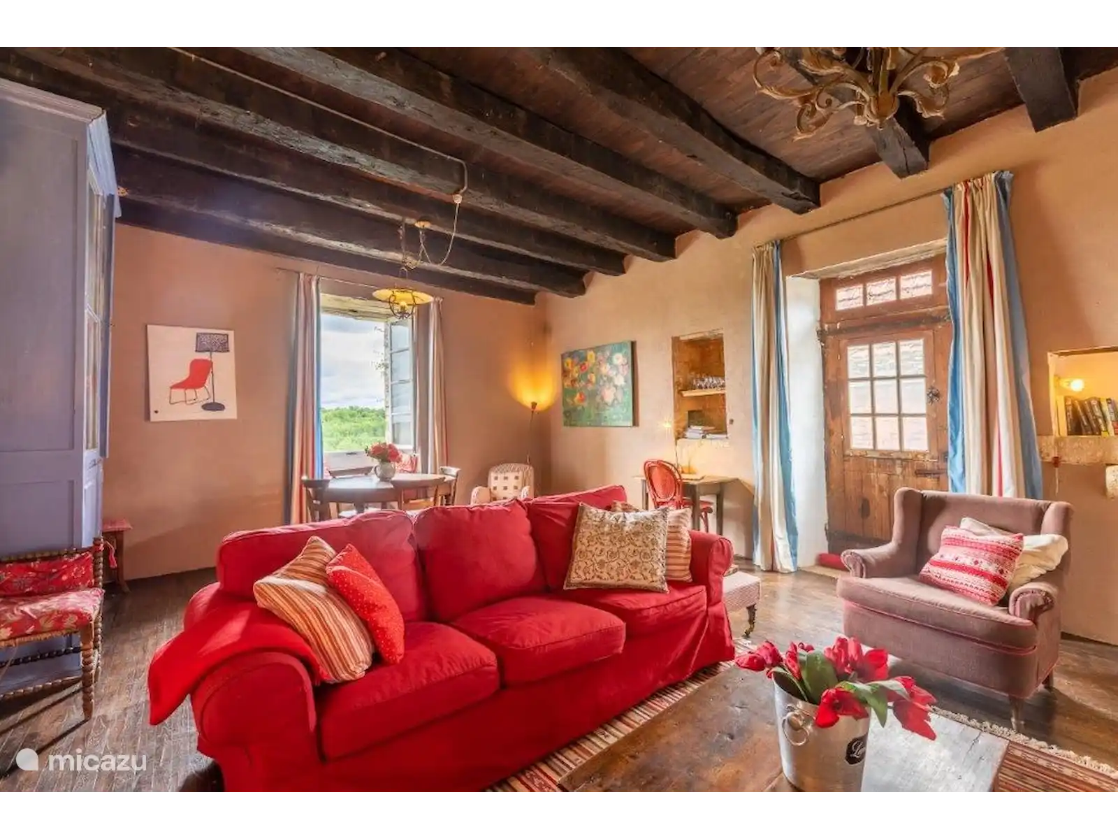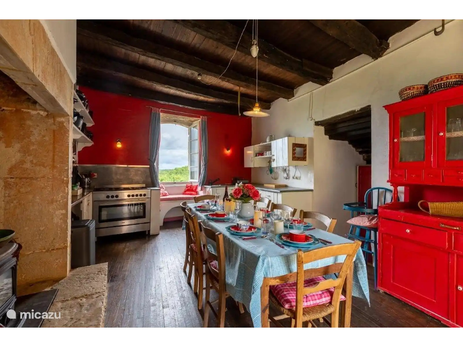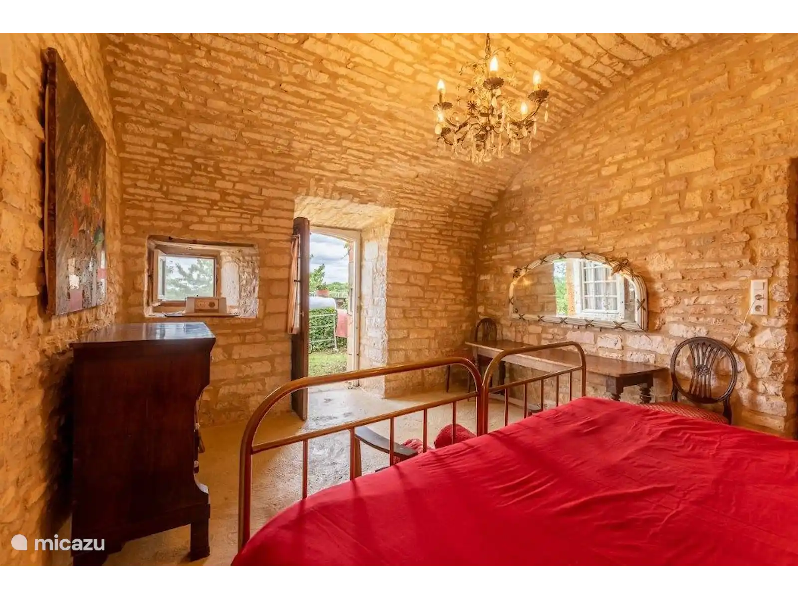 Dans un petit hameau se trouve La Pomette, une maison de vacances française typique et simple, construite avec de magnifiques murs épais en pierre orange-rouge. Si vous voulez vous cacher sans être trop loin des sites, cette maison de vacances est un endroit vraiment agréable ! Le hameau est centré autour de l’ancien château et fait partie du village de Florimont-Gaumiers (181 habitants), à quinze minutes de la Dordogne. Au fait, saviez-vous que la région de la Dordogne est la plus propre d’Europe et qu’il n’y a pas de pollution lumineuse ici ? Tu verras des milliers d’étoiles la nuit... Super romantique !