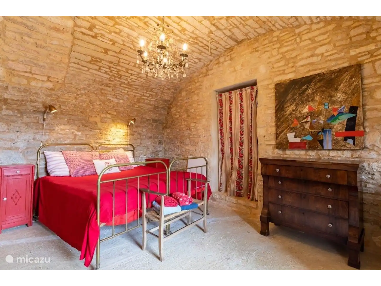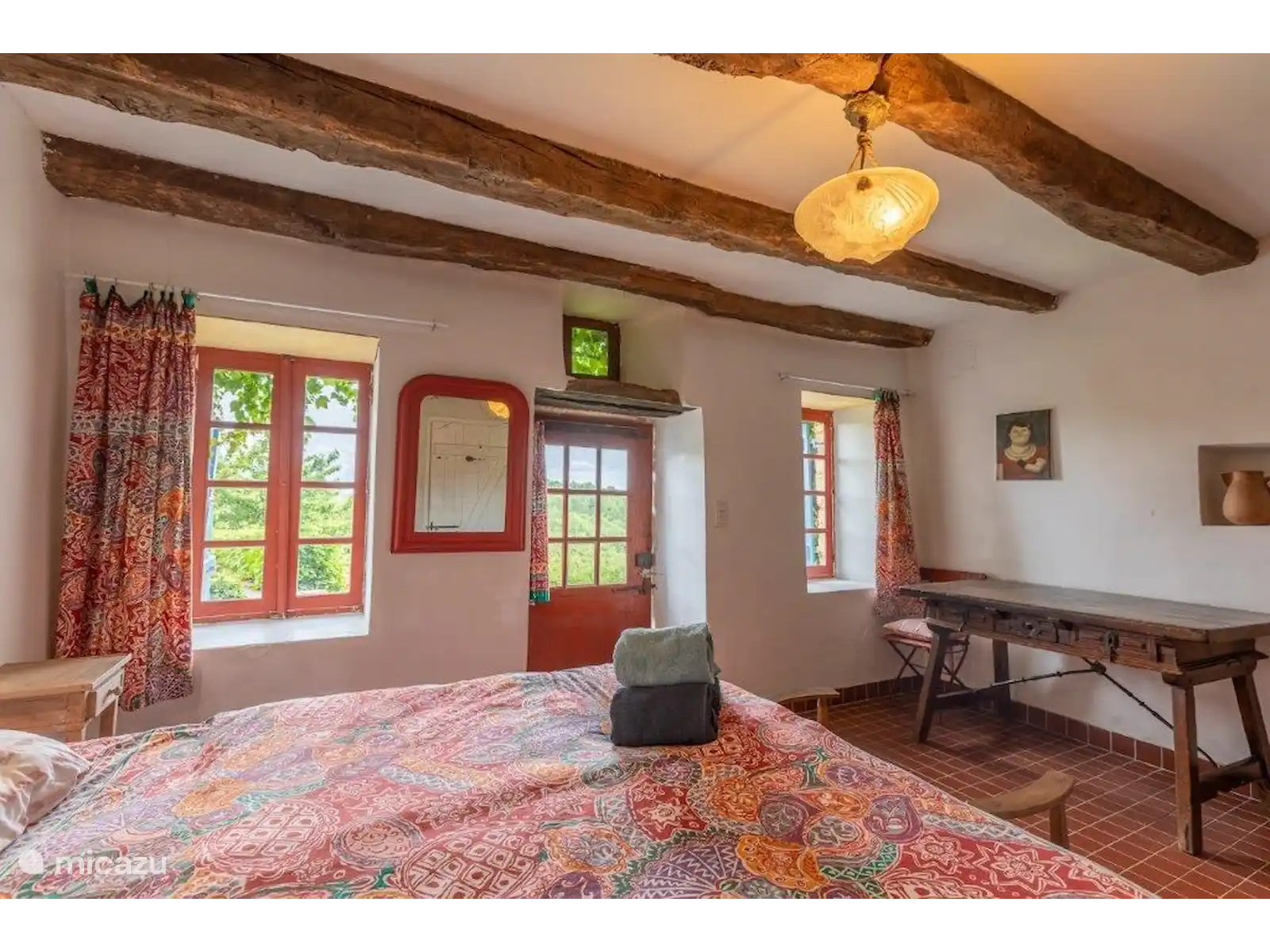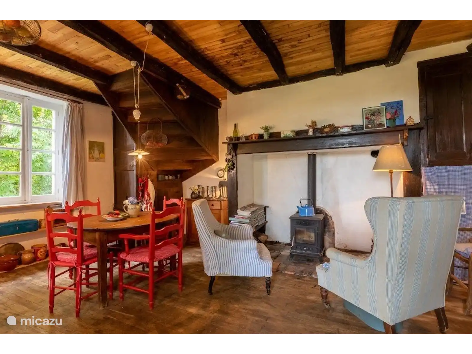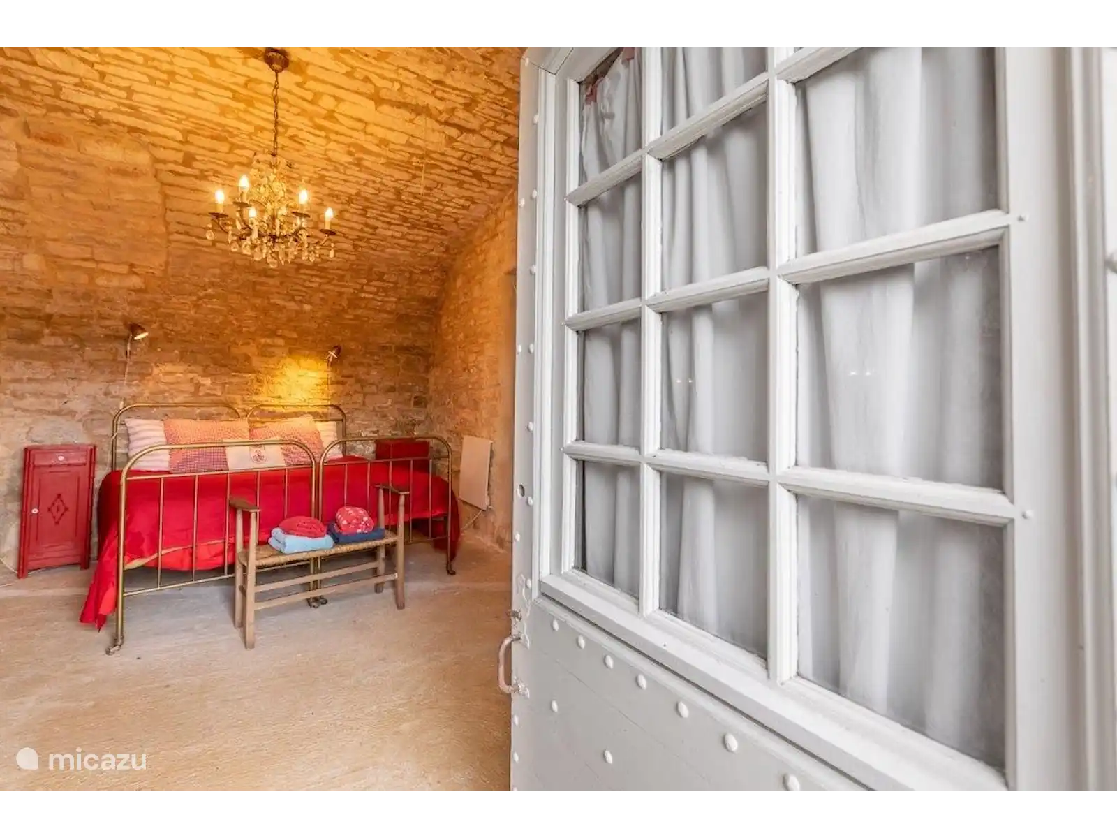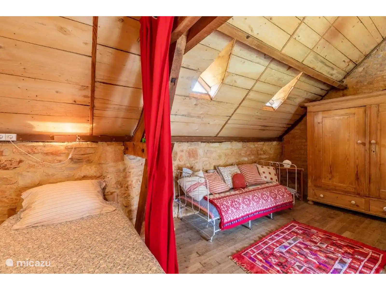 Dans un petit hameau se trouve La Pomette, une maison de vacances française typique et simple, construite avec de magnifiques murs épais en pierre orange-rouge. Si vous voulez vous cacher sans être trop loin des sites, cette maison de vacances est un endroit vraiment agréable ! Le hameau est centré autour de l’ancien château et fait partie du village de Florimont-Gaumiers (181 habitants), à quinze minutes de la Dordogne. Au fait, saviez-vous que la région de la Dordogne est la plus propre d’Europe et qu’il n’y a pas de pollution lumineuse ici ? Tu verras des milliers d’étoiles la nuit... Super romantique !