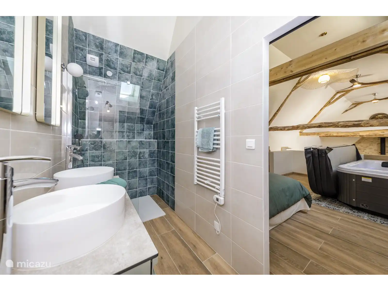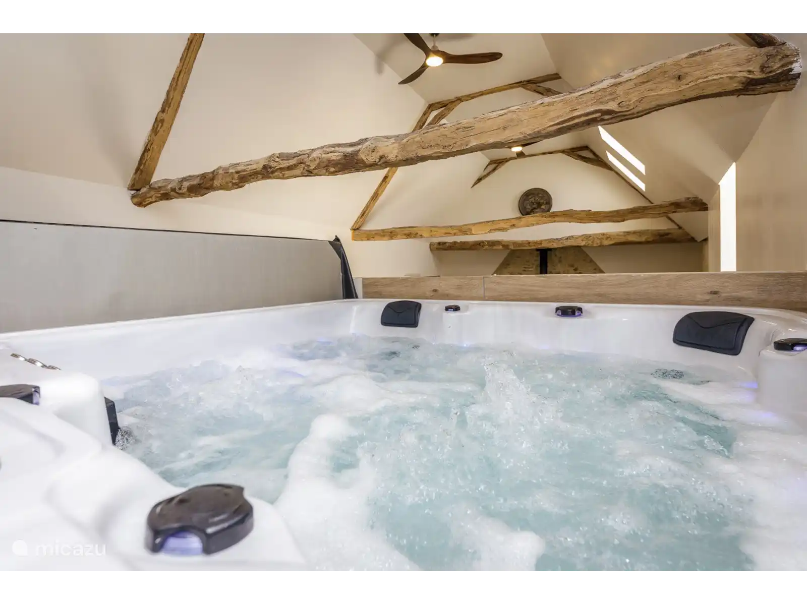 Sourcette dispose de quatre chambres confortables, chacune avec sa propre salle de bain pour garantir votre intimité. Une des chambres est cachée au-dessus du salon et possède son propre jacuzzi (6 personnes). Au rez-de-chaussée se trouve le grand salon, où vous pouvez préparer de délicieux repas pour votre famille ou vos amis sur l’îlot central de la cuisine, dans une cuisine bien équipée. Il y a un Nescafé Dolce Gusto NEO avec assez de tasses. Dans le salon, vous pouvez vous blottir sur un canapé confortable près du poêle à bois, ou vous asseoir autour de la table à manger pour manger ensemble.