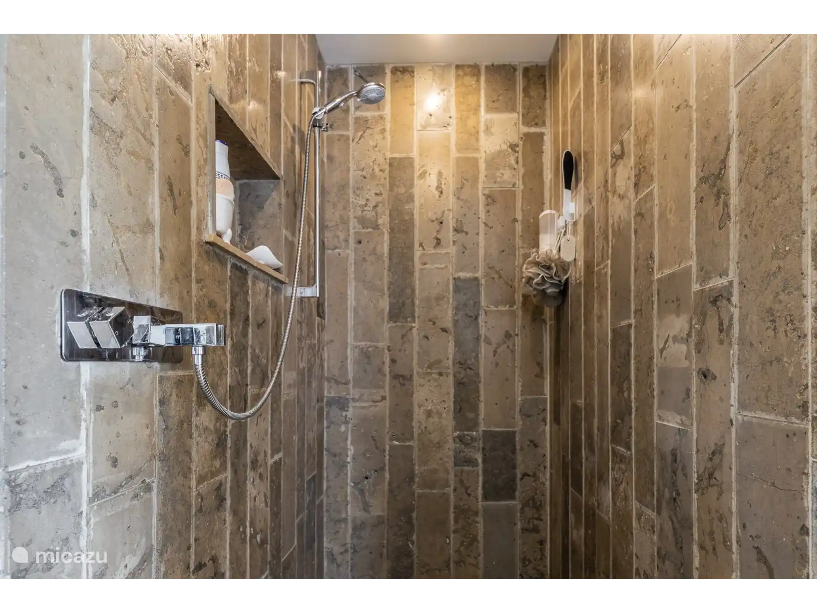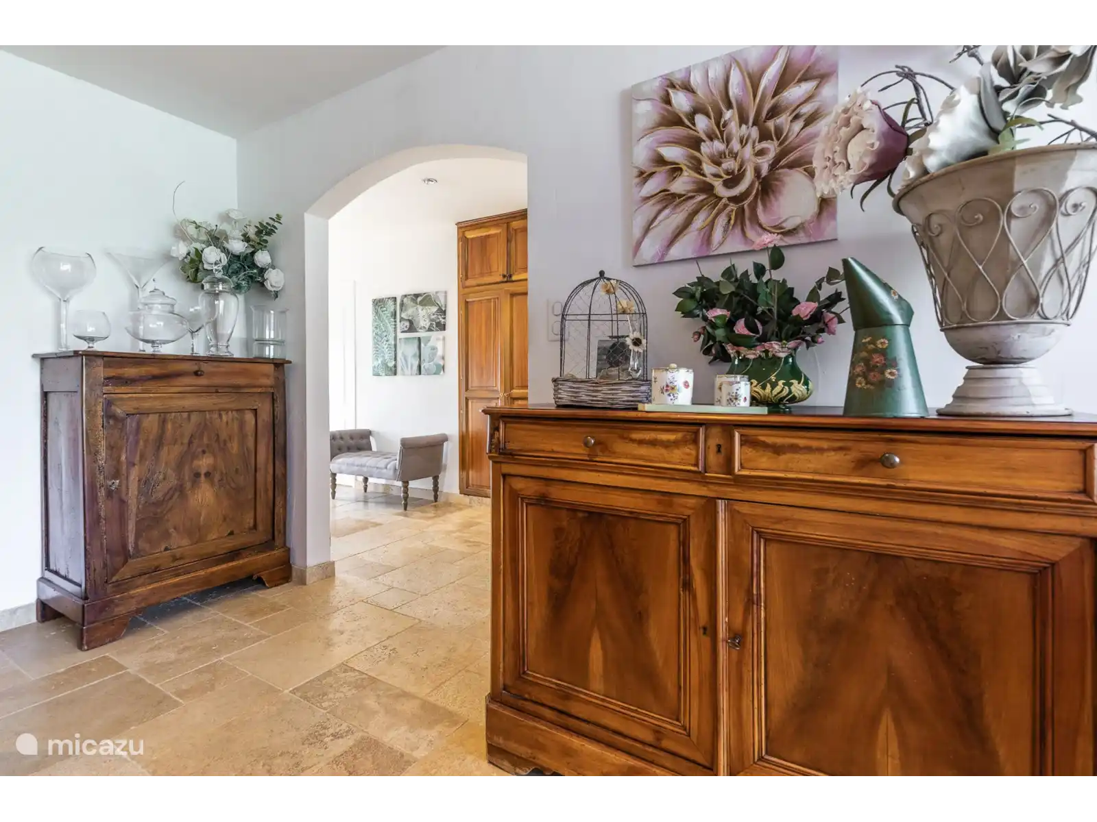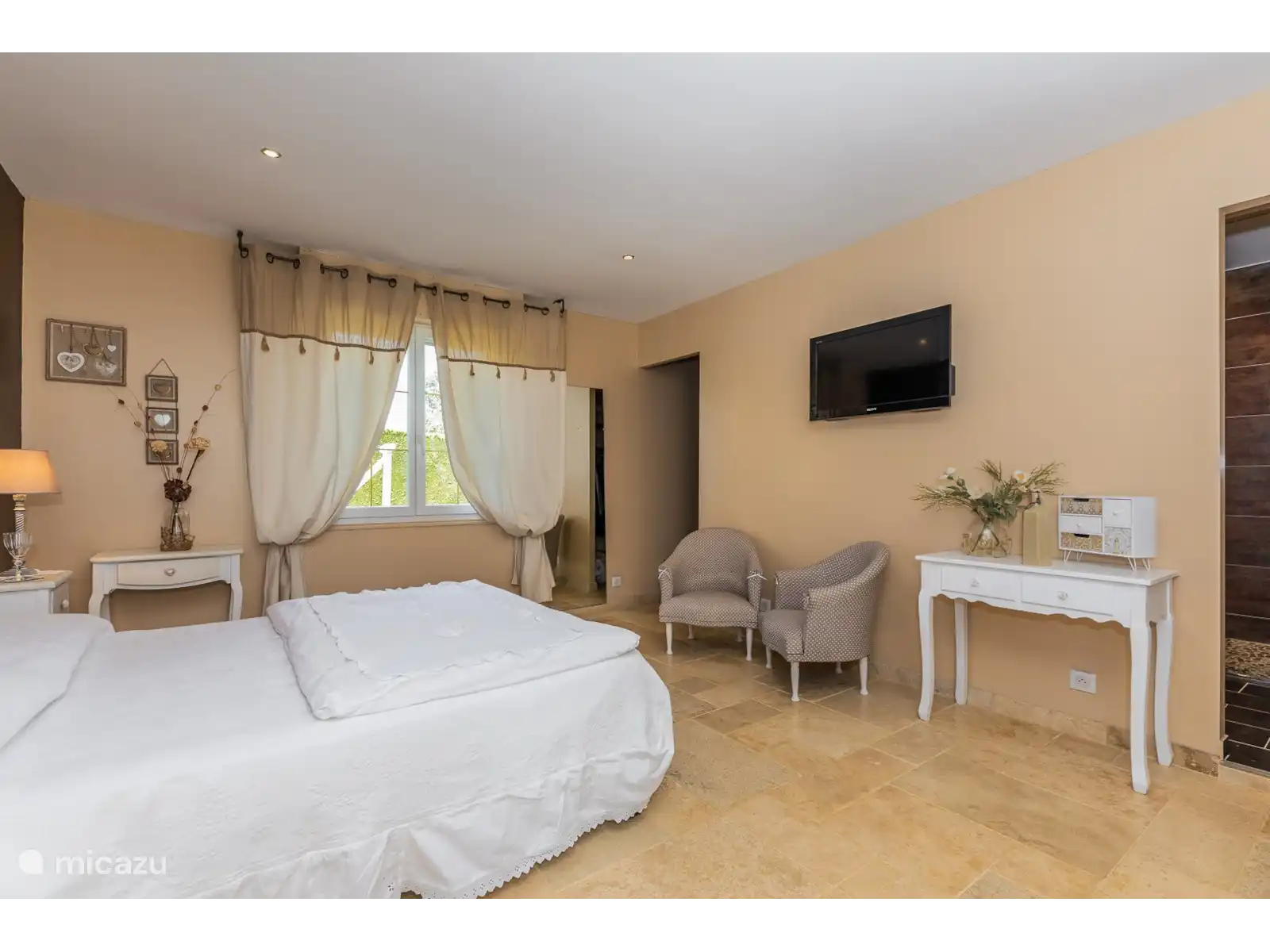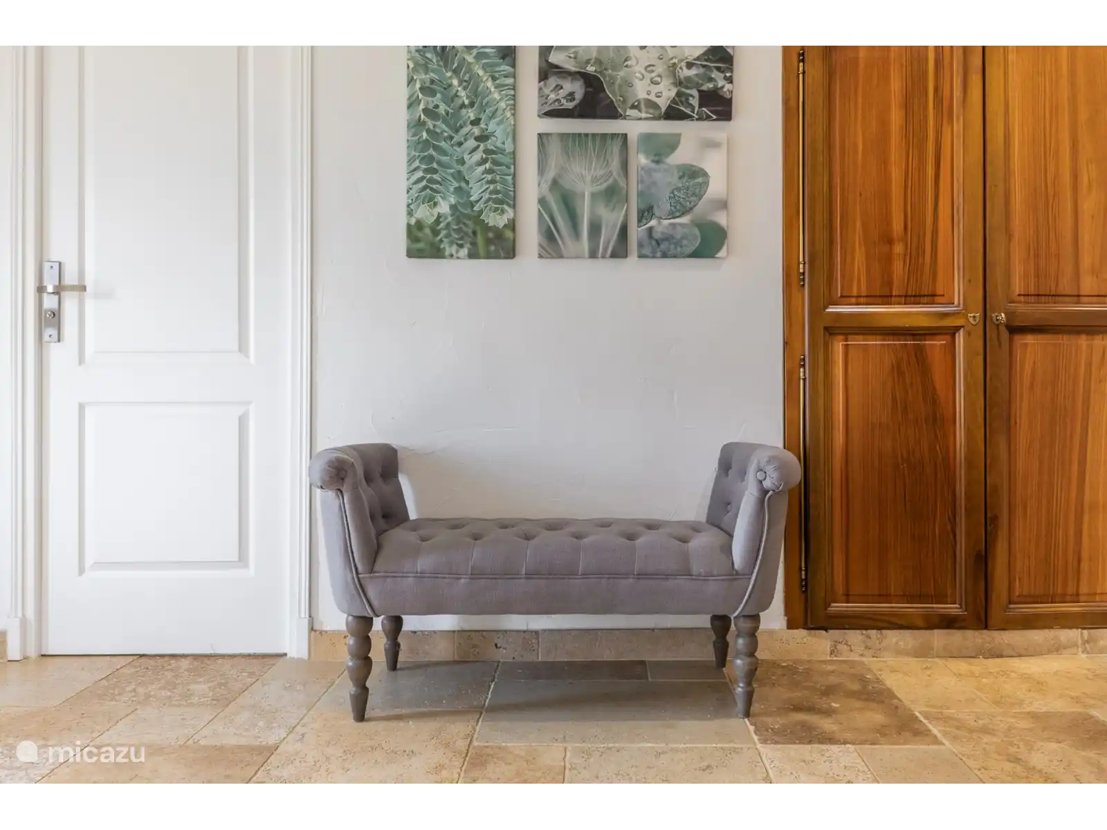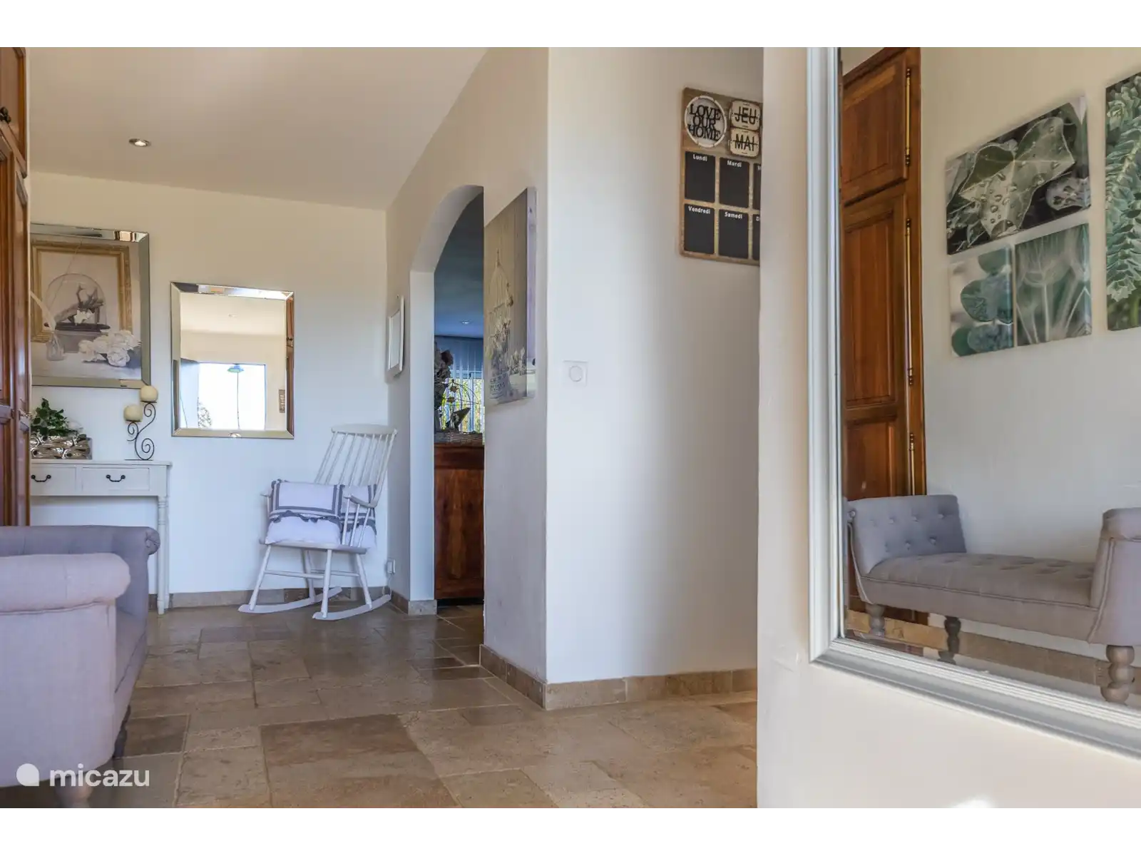Autour de la maison se trouve une grande pelouse avec plusieurs coins salon et la possibilité de jouer au football. La piscine de 10 x 5 a une surface abaissée de 1,10. Sur la terrasse au bord de la piscine, il y a un pool house où vous pouvez vous allonger à l’ombre si vous le souhaitez. Il y a une allée séparée avec un grand parking pour les voitures.