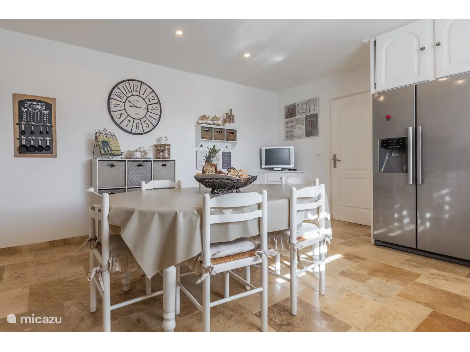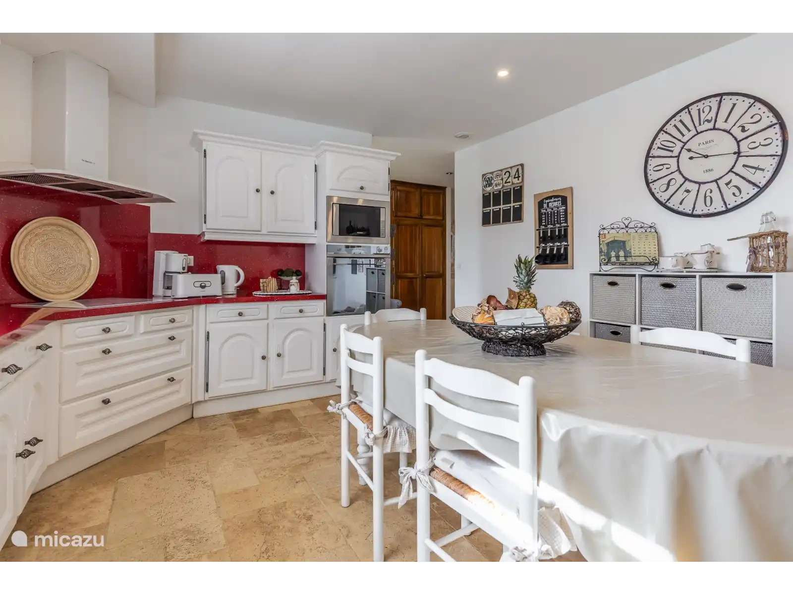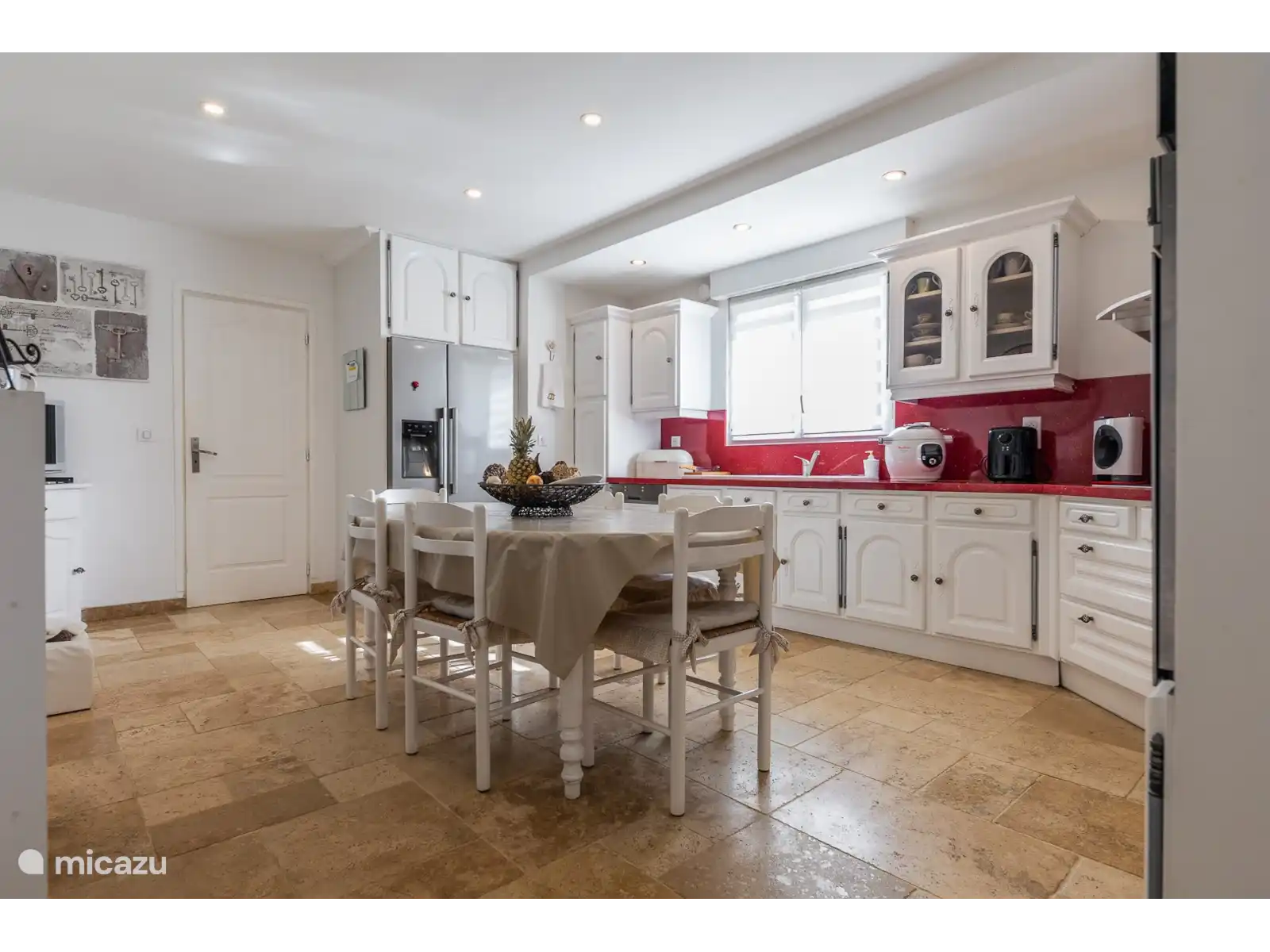 Grande salle à manger avec portes-fenêtres donnant sur la terrasse. Cuisine moderne bien équipée avec un bar pour le petit-déjeuner. La maison dispose de trois chambres spacieuses (dont une avec un vrai dressing) : 2 chambres avec un lit double et 1 grande chambre avec 2 lits de 120 cm, fantastique si vous partez en vacances avec plusieurs enfants ! La terrasse de la villa dispose de 2 belles salles de bains modernes !
