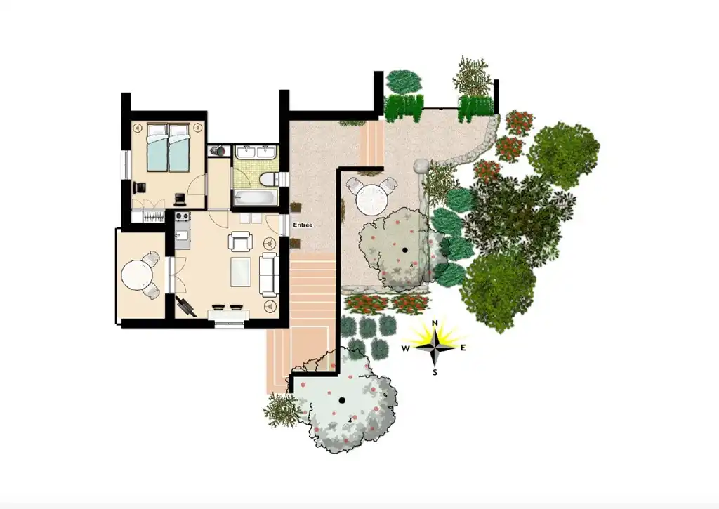 - Entrée indépendante et terrasse/jardin à l'est;
