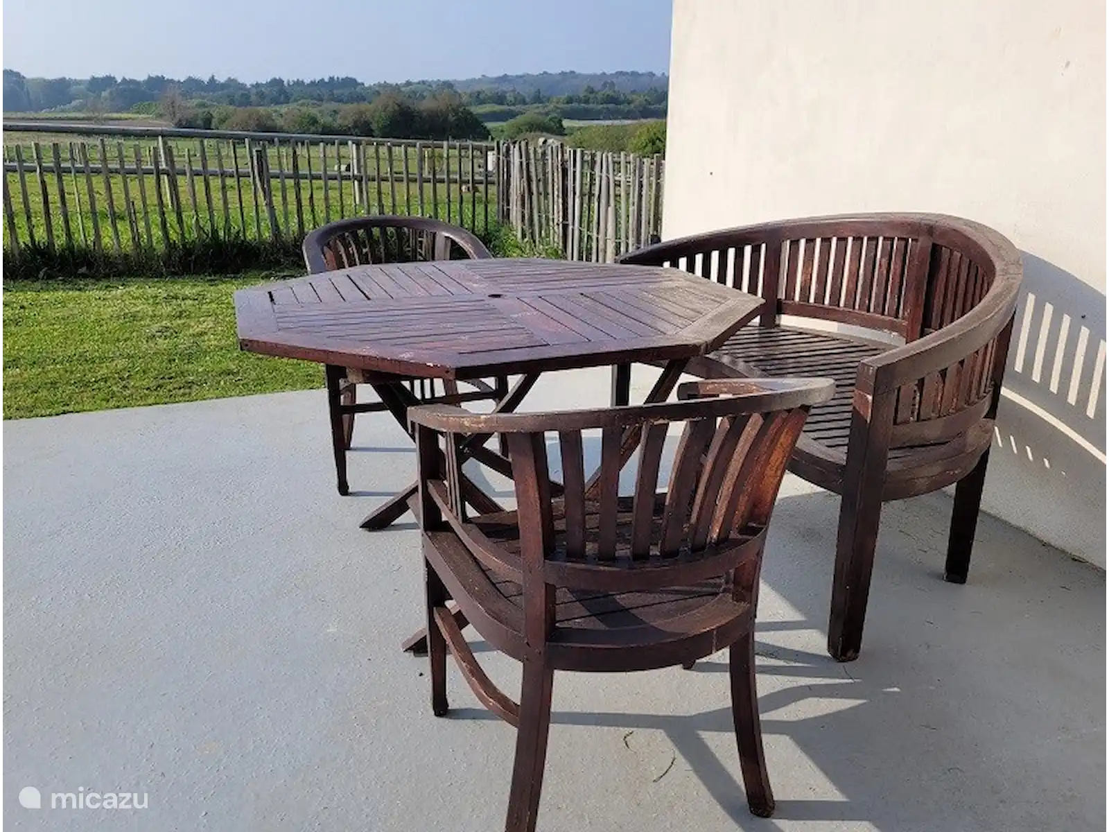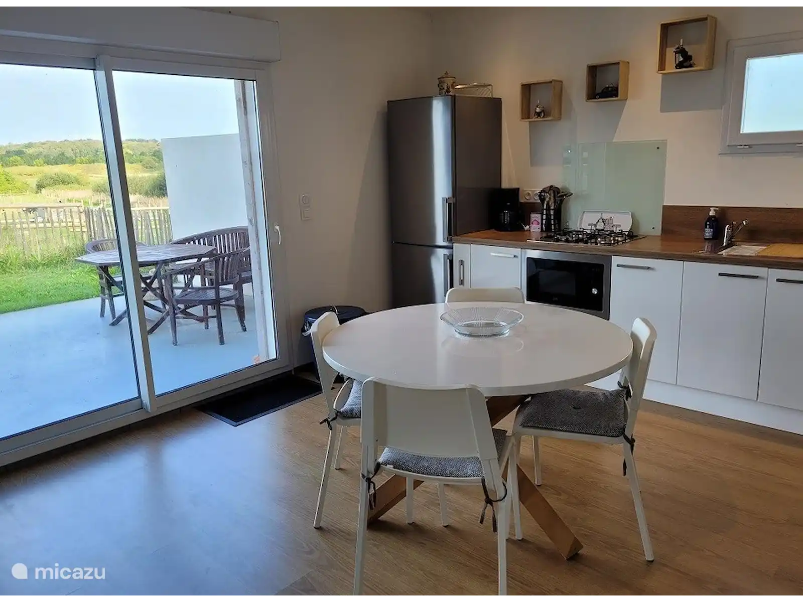 La maison est individuelle et offre une intimité totale, avec une allée privée, une entrée, une place de parking et une terrasse privée avec de belles vues sur les prairies environnantes, nos animaux et la forêt avec la baie juste derrière.