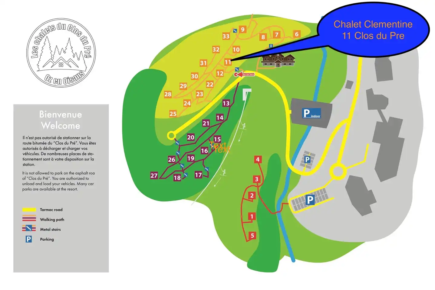 Le chalet fait partie d'un développement exclusif de 33 chalets indépendants nichés dans un coin calme d'Oz en Oisans, qui fait partie du domaine skiable de l'Alpe d'Huez, à 1350 mètres d'altitude. Au premier étage il y a un hall avec porte-skis et chaussures et de nombreux crochets pour accrocher vos manteaux. Cela mène à une grande pièce ouverte avec cheminée. Deux portes-fenêtres donnent sur un balcon que nous avons prolongé pour envelopper deux côtés du chalet et offre un grand espace pour s'asseoir, avec de belles vues ininterrompues sur les montagnes. De l'autre côté de la pièce se trouve une grande table à manger pour 10 personnes. Au coin, il y a une cuisine à partir de laquelle des portes-fenêtres doubles offrent un autre accès au balcon prolongé qui dispose de sièges extérieurs et d'une table pouvant accueillir confortablement six personnes et offre d'autres vues imprenables. Au rez-de-chaussée se trouvent trois chambres et depuis le salon un escalier mène à une quatrième chambre en mezzanine, avec une hauteur réduite sur un côté.