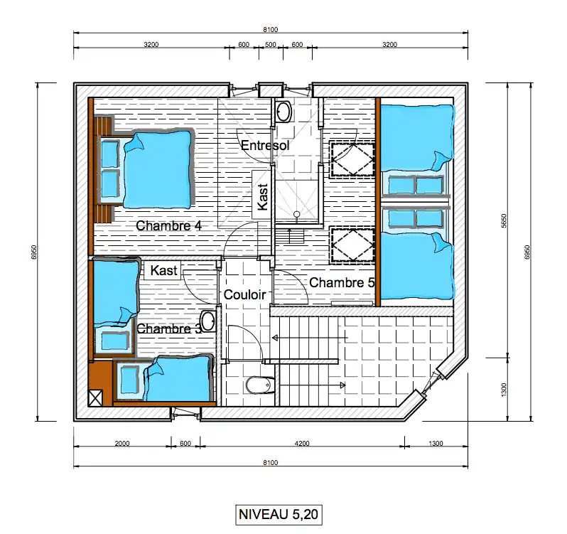 Au premier étage se trouvent deux chambres spacieuses (13 et 15 m 2 ) chacune avec un lit double (180 × 200) et un lit simple (90 × 200). Au lieu d'un lit double et d'un lit simple, vous pouvez également opter pour trois lits simples (90×200) dans les deux chambres. Les deux chambres ont des portes-fenêtres donnant sur un balcon ou une terrasse. Toutes les chambres ont des planchers en bois et des couettes en duvet confortables sur de nouveaux lits. A cet étage deux salles de bains modernes (une avec douche et une avec baignoire) et un WC séparé. A cet étage se trouve également le "local à skis/vélos" et un spacieux palier/grenier.