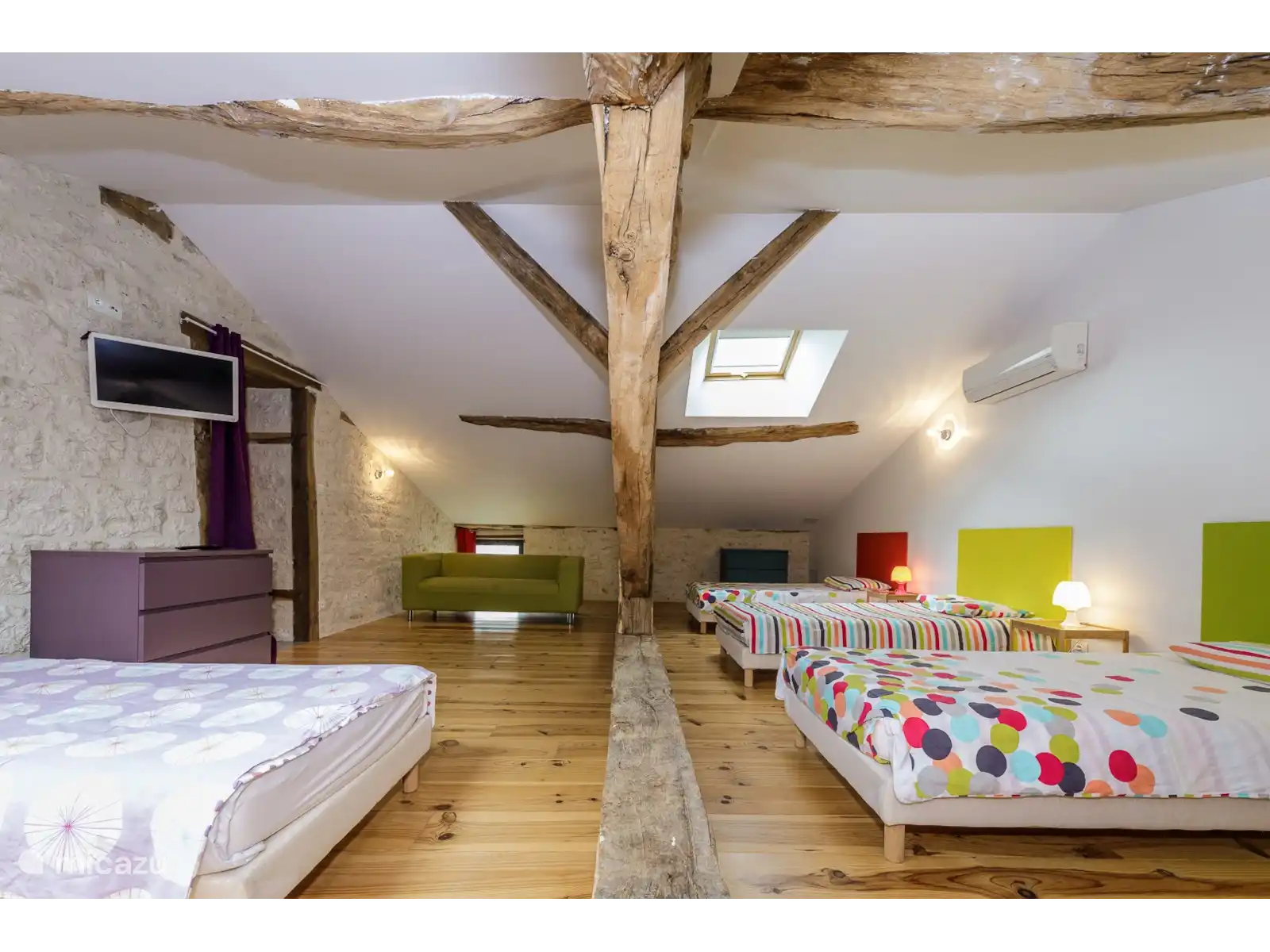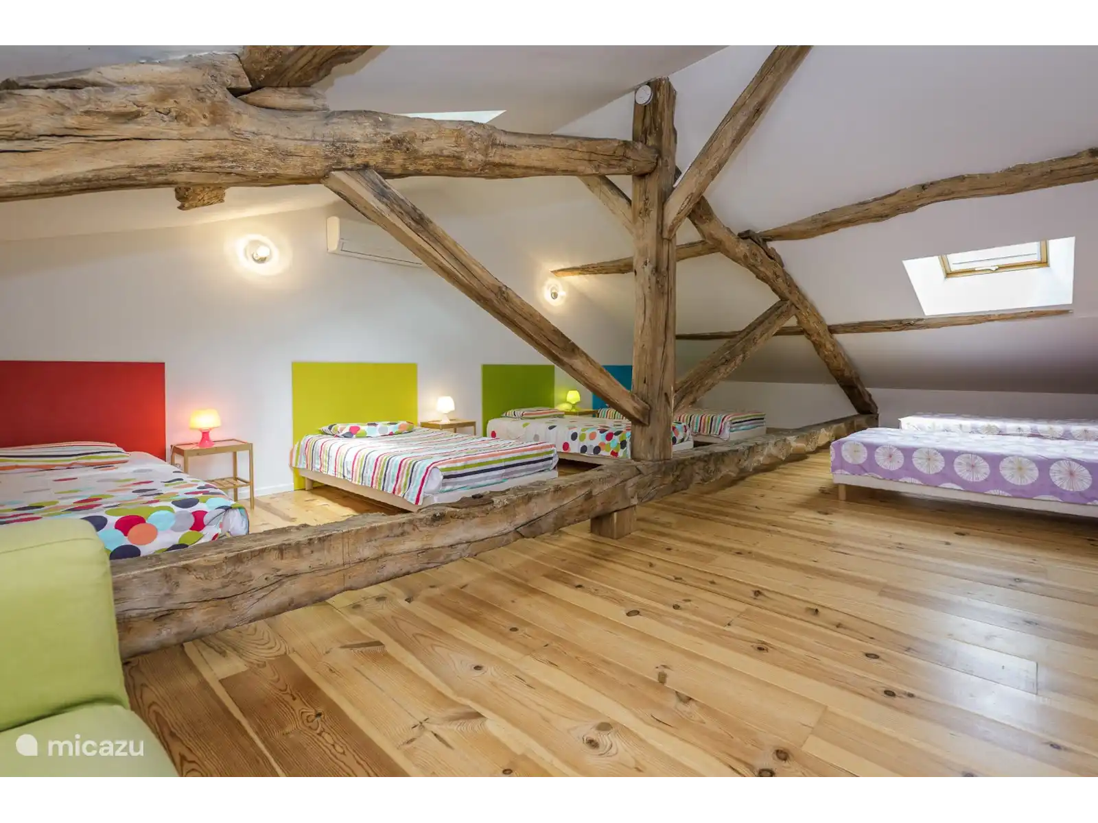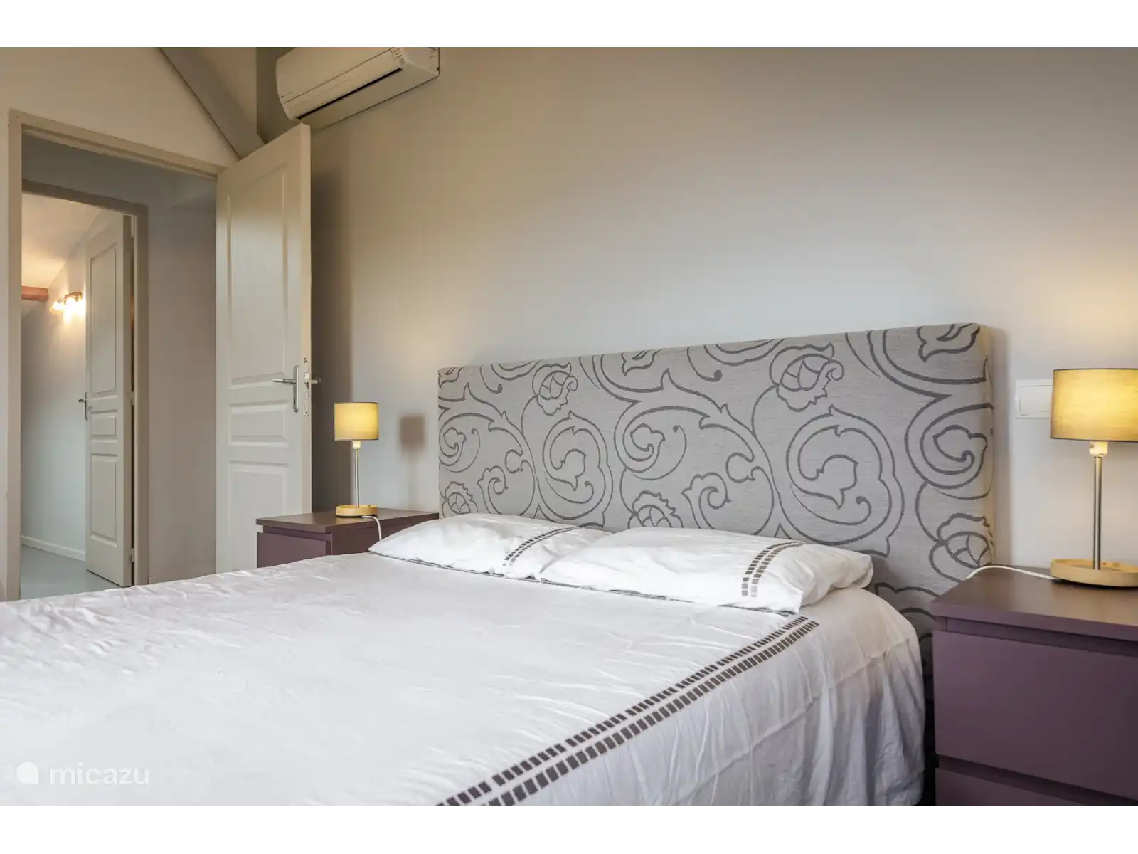 À l’étage, il y a une autre chambre double, une chambre pour bébé entièrement équipée (avec lit, salle de bain et table à langer) et un spacieux dortoir pour enfants avec six lits (90 x 190 cm), comprenant un espace de jeux avec télévision et lecteur DVD. De plus, il y a une grande salle de bain avec douche et baignoire ainsi qu’une toilette séparée. Toute la maison est climatisée.