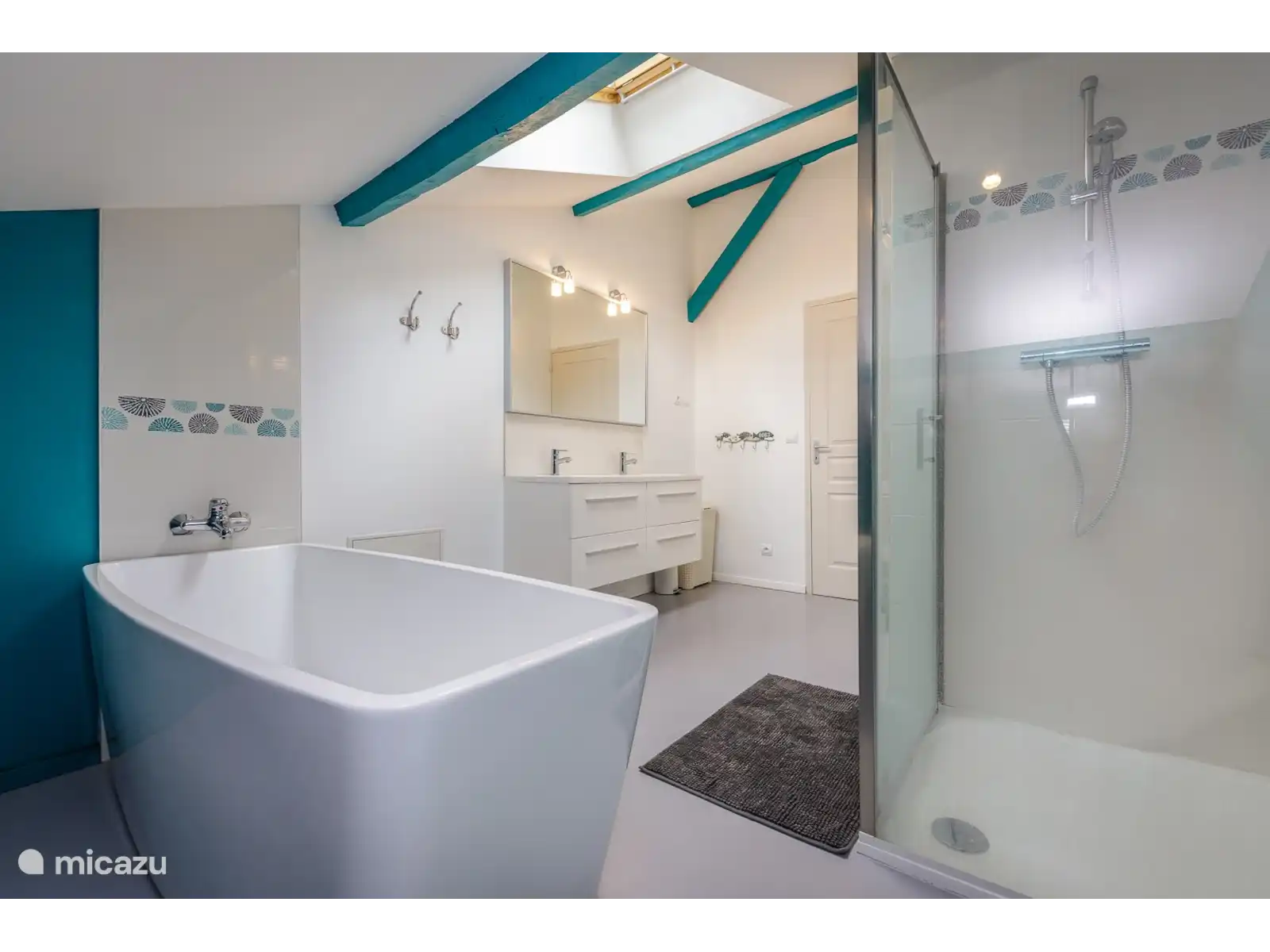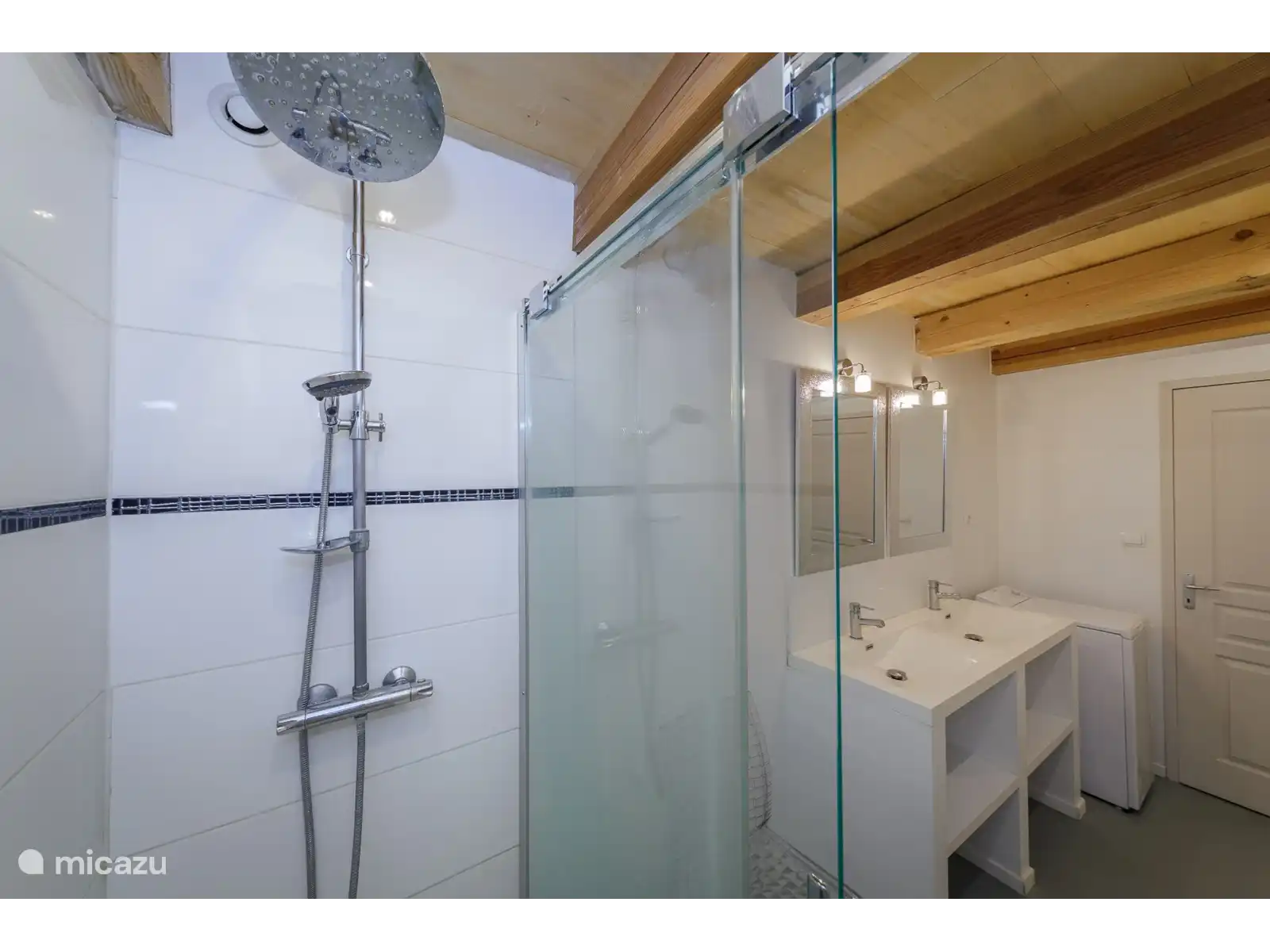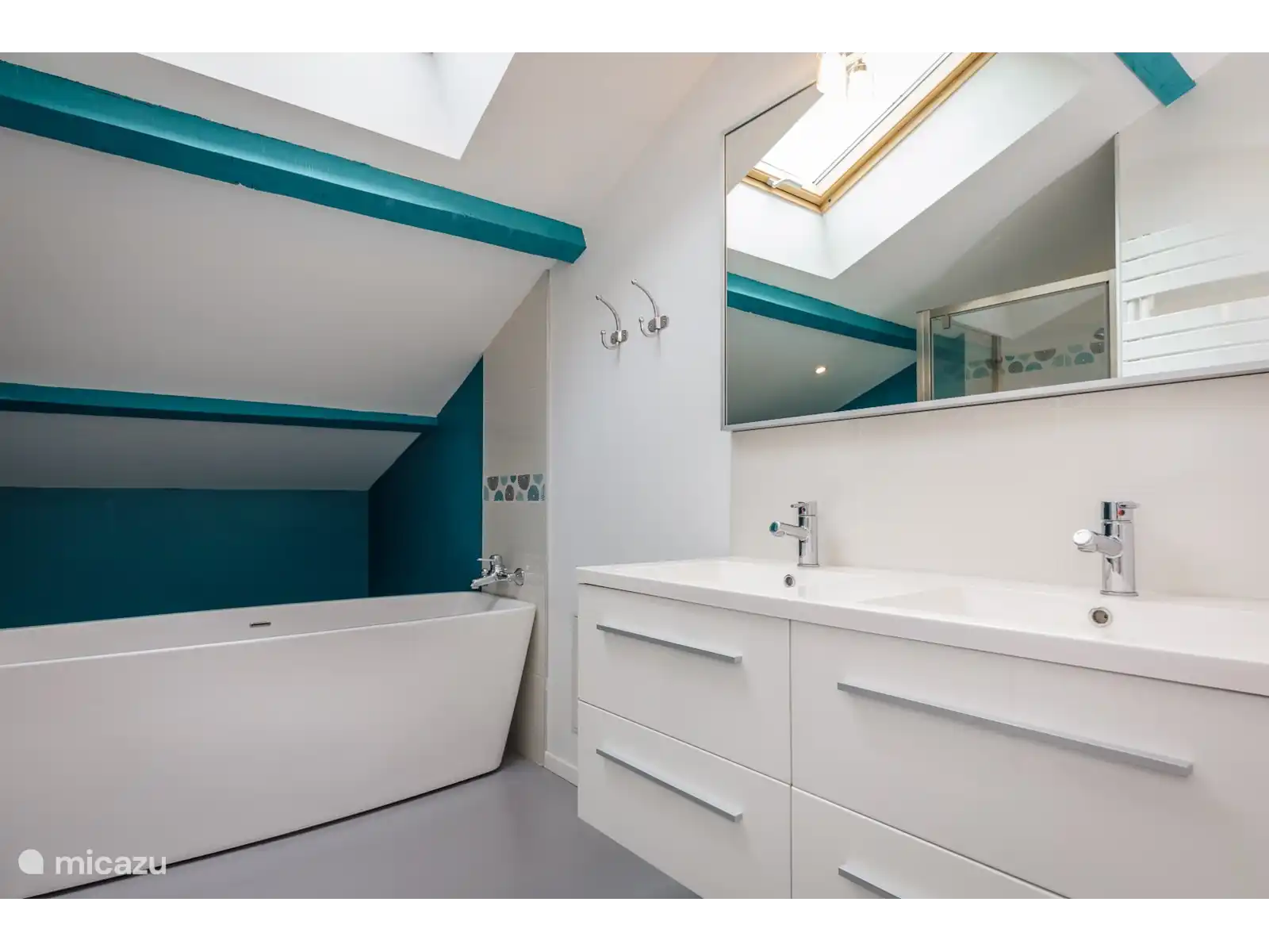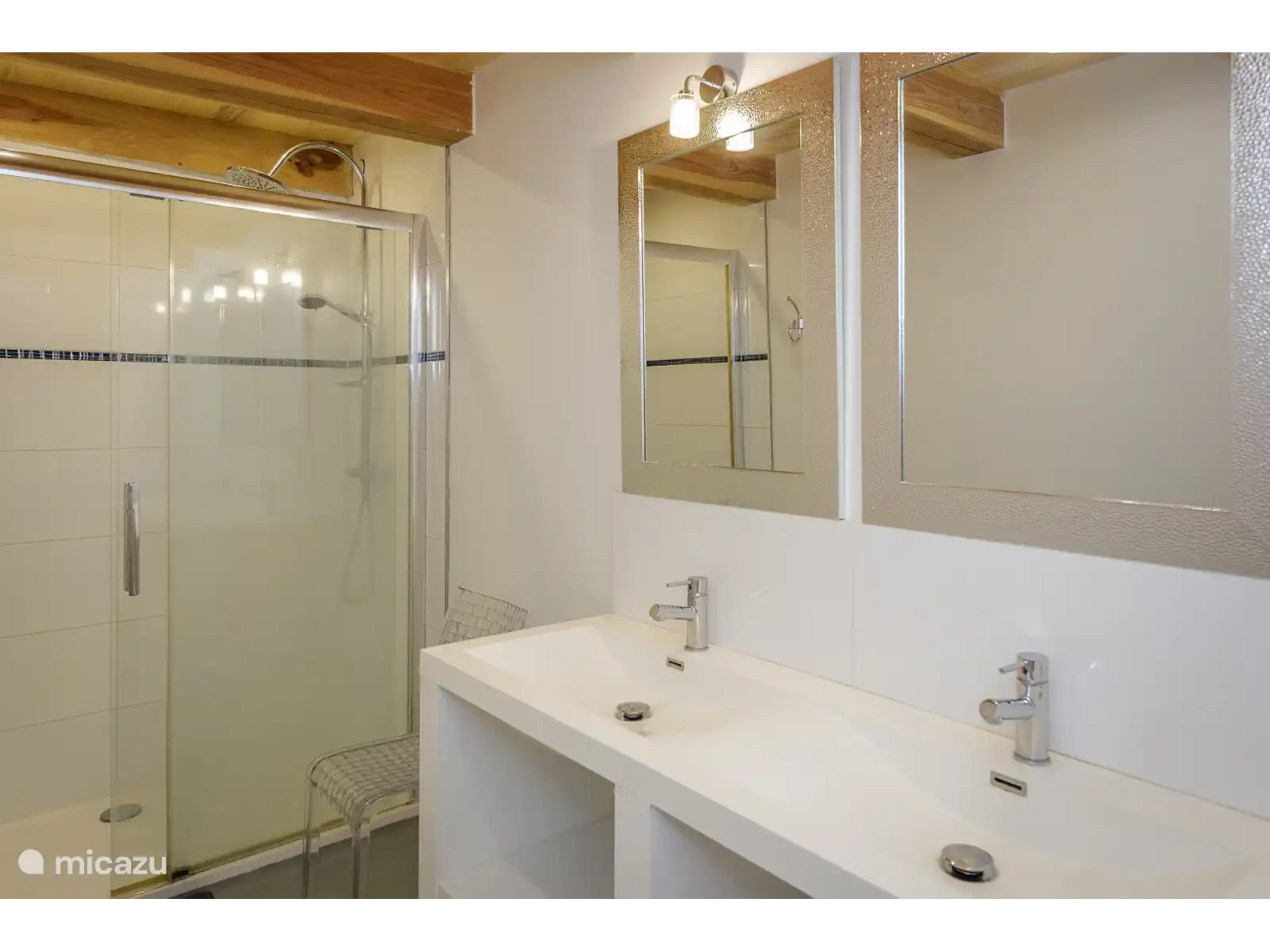 À l’étage, il y a une autre chambre double, une chambre pour bébé entièrement équipée (avec lit, salle de bain et table à langer) et un spacieux dortoir pour enfants avec six lits (90 x 190 cm), comprenant un espace de jeux avec télévision et lecteur DVD. De plus, il y a une grande salle de bain avec douche et baignoire ainsi qu’une toilette séparée. Toute la maison est climatisée.