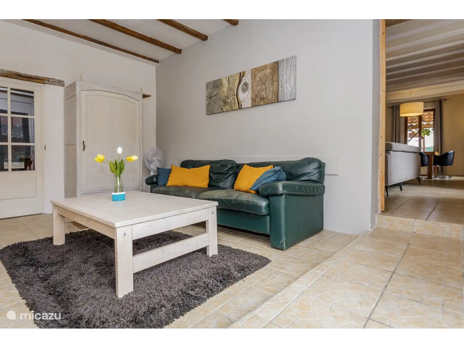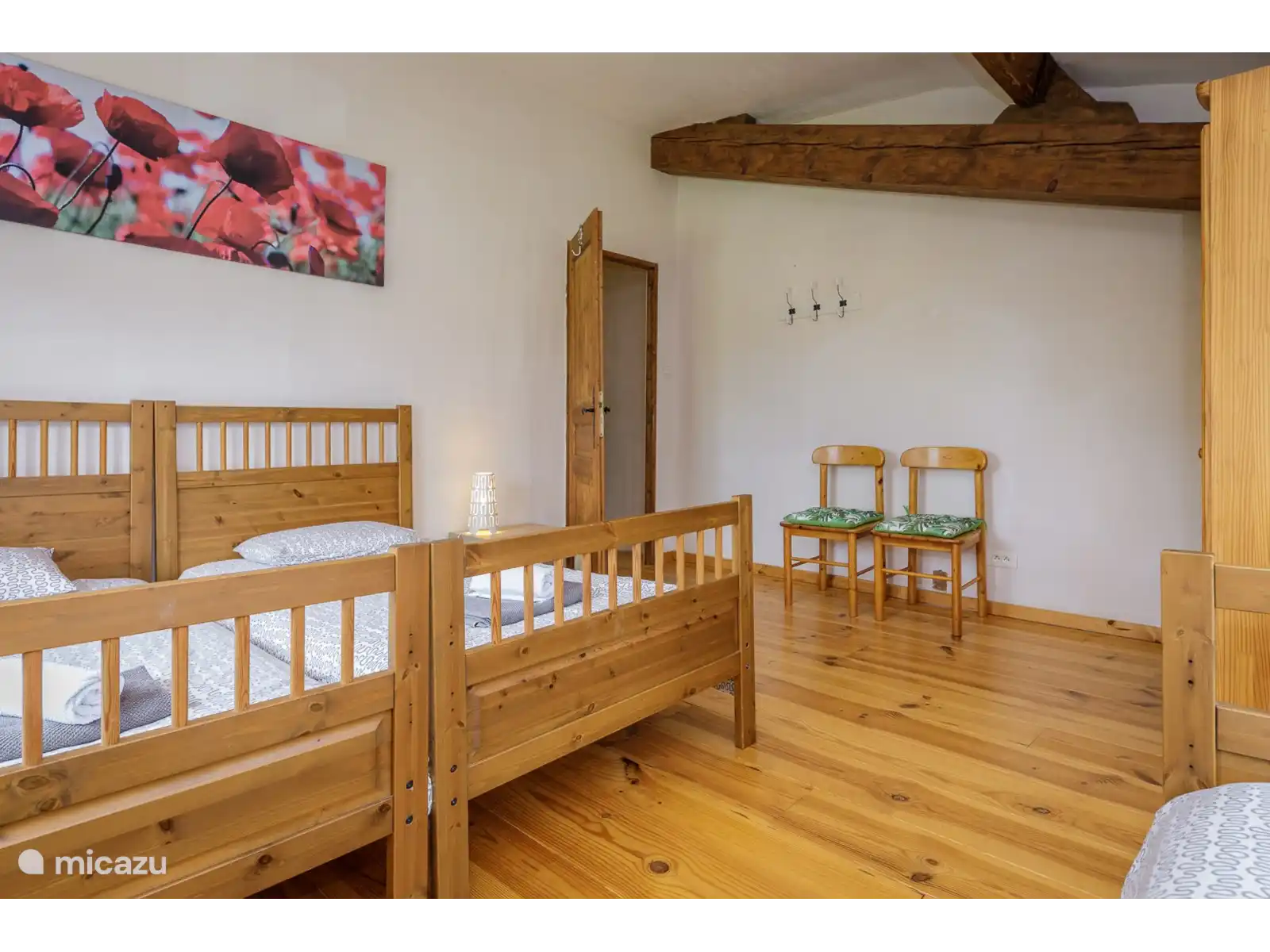 La villa dispose d’un salon confortable avec poêle à bois, télévision à écran plat et table à manger. La cuisine spacieuse est entièrement équipée. Au rez-de-chaussée se trouve une salle de bain avec deux douches et une baignoire. Dans la buanderie, il y a une machine à laver et un sèche-linge. A l’étage se trouvent cinq chambres dont une salle familiale avec sa propre salle de bain. D’autres chambres sont équipées de lits simples et doubles et d’un lit bébé. Il y a deux salles de bains supplémentaires et des toilettes séparées.