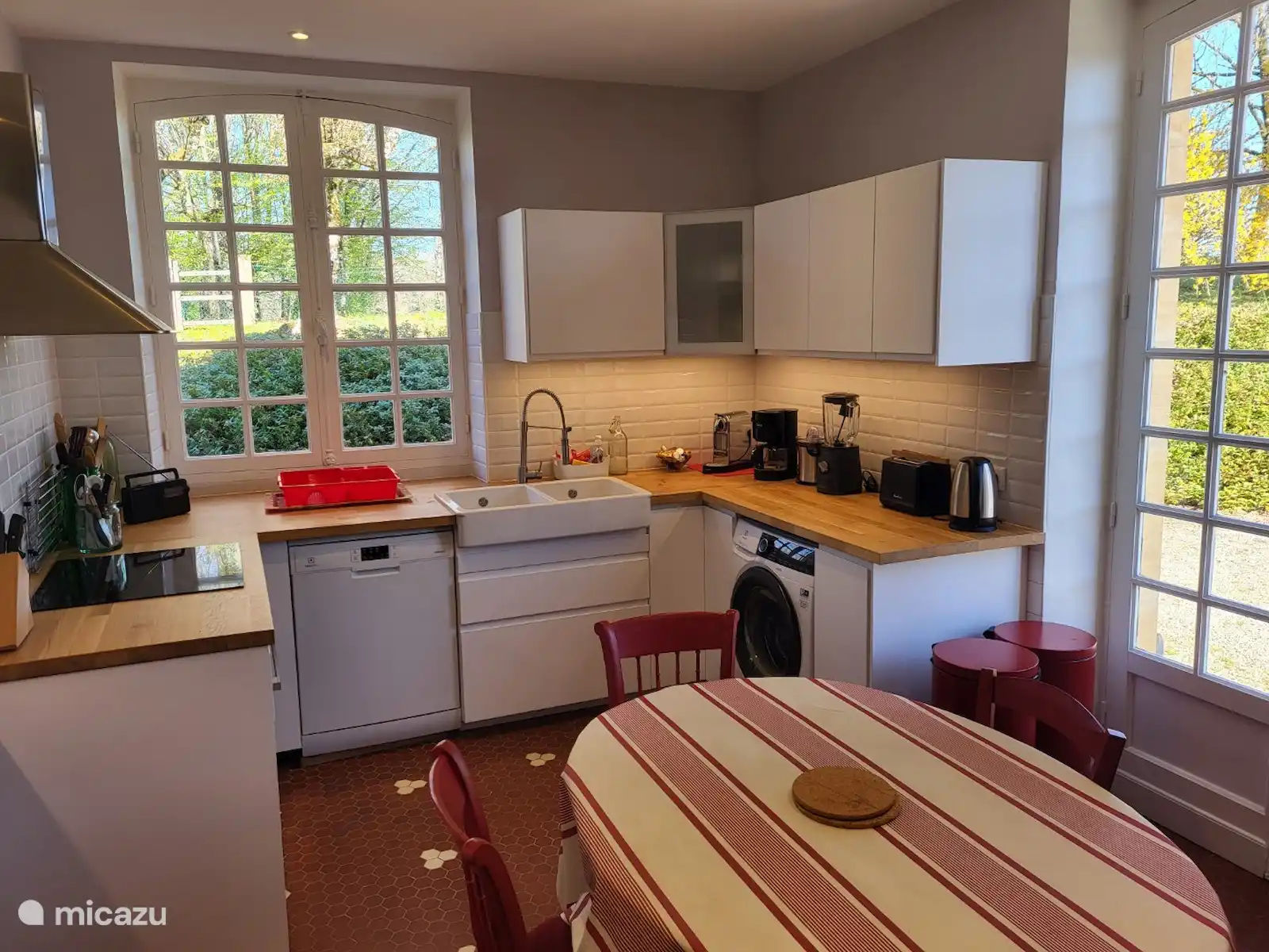 Une grande maison de vacances très confortable, où règne une tranquillité absolue. Ce manoir est situé dans un cadre enchanteur et dispose de 8 chambres (15 lits + lits jumeaux), 4 salles de bains (3 douches) et 4 toilettes. Il y a un salon confortable avec une cheminée en état de marche, une salle à manger et une belle bibliothèque. La cuisine est neuve et fonctionnelle. Une grande piscine (12x6), un salon de jardin choisi avec soin, une plancha, des hamacs et une table de ping-pong complètent l’équipement de vacances. Vous et votre famille/amis passerez d’excellentes vacances dans cet endroit magnifique !
