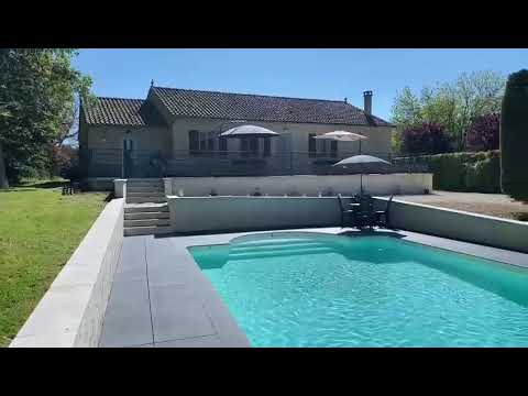 Grand jardin entièrement clos (4000m2) avec pelouse et équipements de jeux. Grande piscine chauffée (12 x 5) avec partie surbaissée et couverture de sécurité.