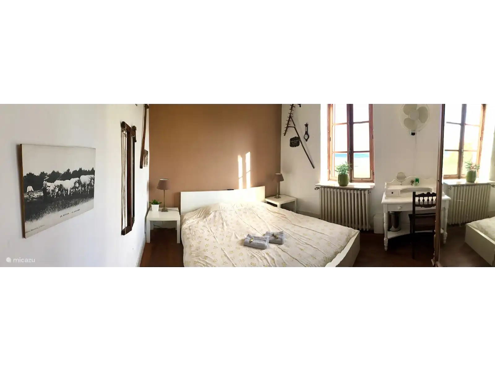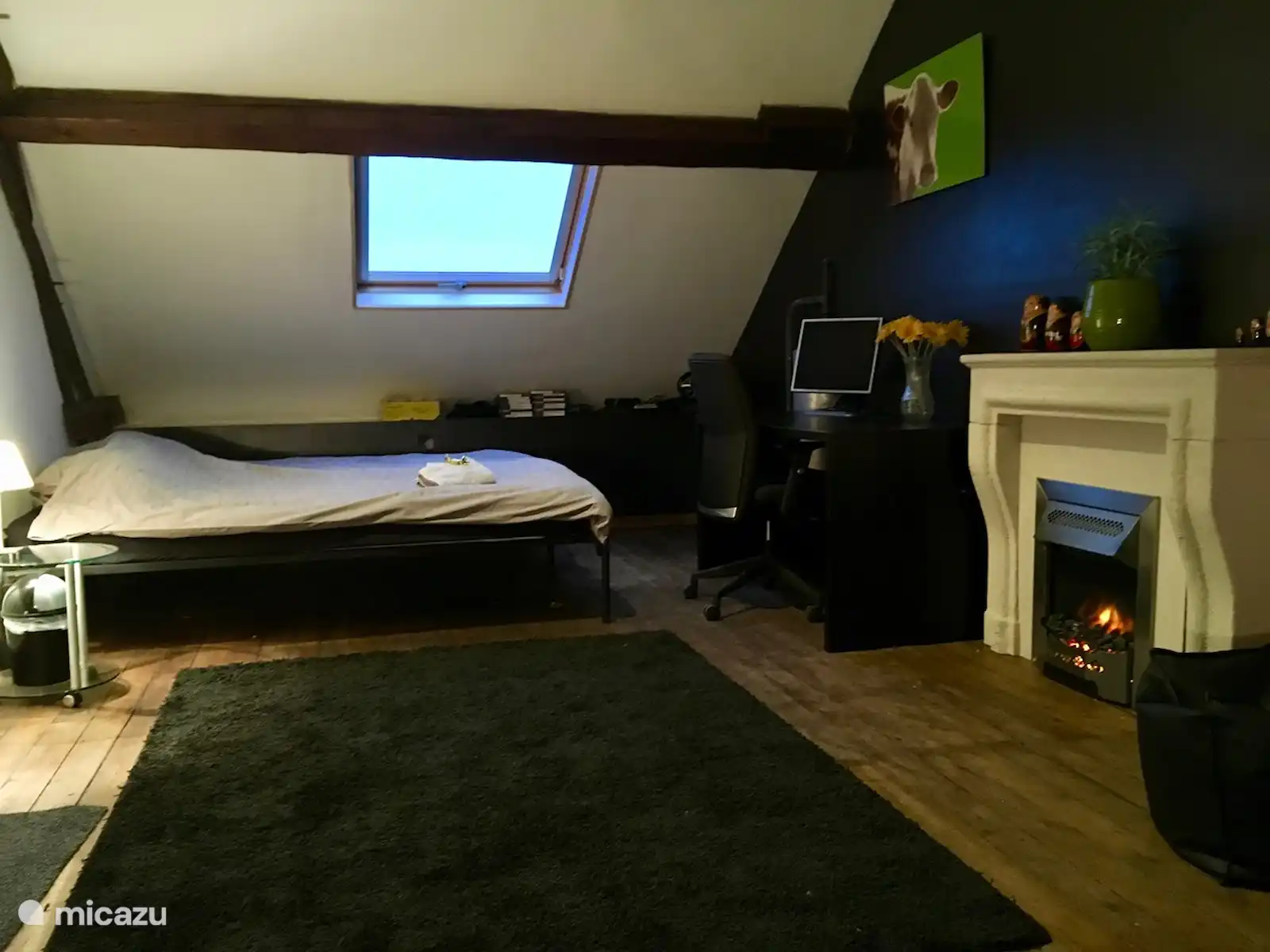 - rez-de-chaussée 1 chambre traversante, avec un lit simple, qui se poursuit par une chambre pour 2 personnes