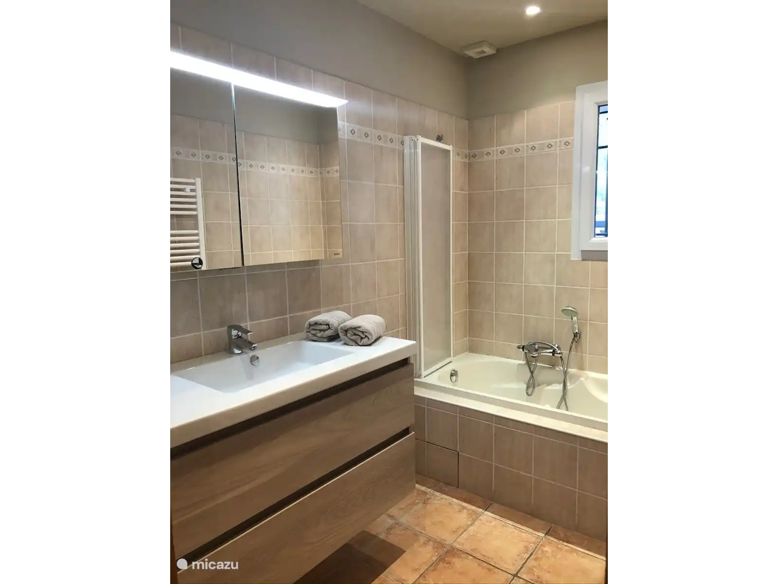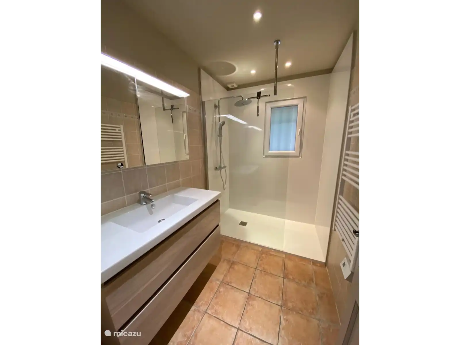 La cuisine spacieuse est entièrement équipée (micro-ondes, four, plaque vitrocéramique, hotte aspirante, cafetière, Nespresso, lave-vaisselle, réfrigérateurs). En plus de la table à manger, le salon dispose également d’un coin salon avec cheminée. Le Samsung Smart TV n’est pas équipé d’une réception par câble ou par satellite, mais de Chromecast, ce qui vous permet de regarder numériquement (diffuser) vos programmes domestiques préférés via votre mobile ou votre ordinateur. Internet sans fil est disponible. Un bureau complète cet espace. Deux chambres sont chacune équipées d’un lit double à sommier tapissier de haute qualité. La troisième chambre dispose de deux lits simples. Chaque chambre dispose d’une armoire intégrée. La chambre principale dispose d’une spacieuse salle de bains privative avec douche à l’italienne, baignoire, toilettes et lavabo. La deuxième salle de bain dispose d’une douche à côté du lavabo, la troisième salle de bain dispose d’une douche et d’un deuxième toilette. Une troisième toilette est