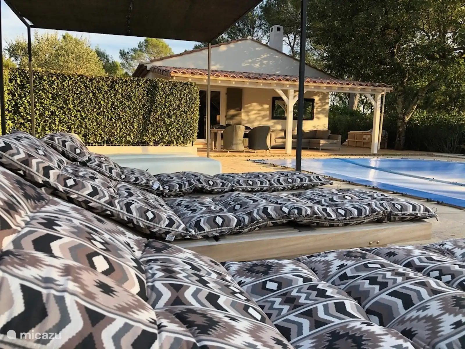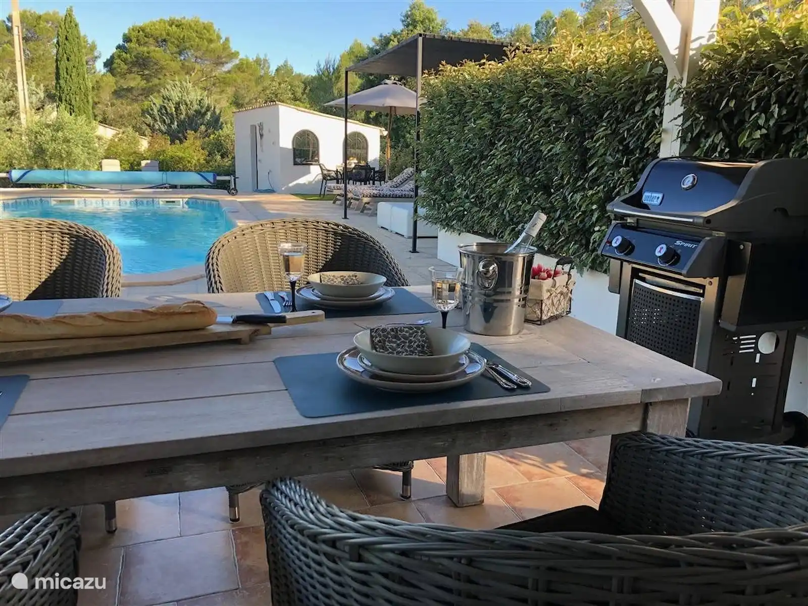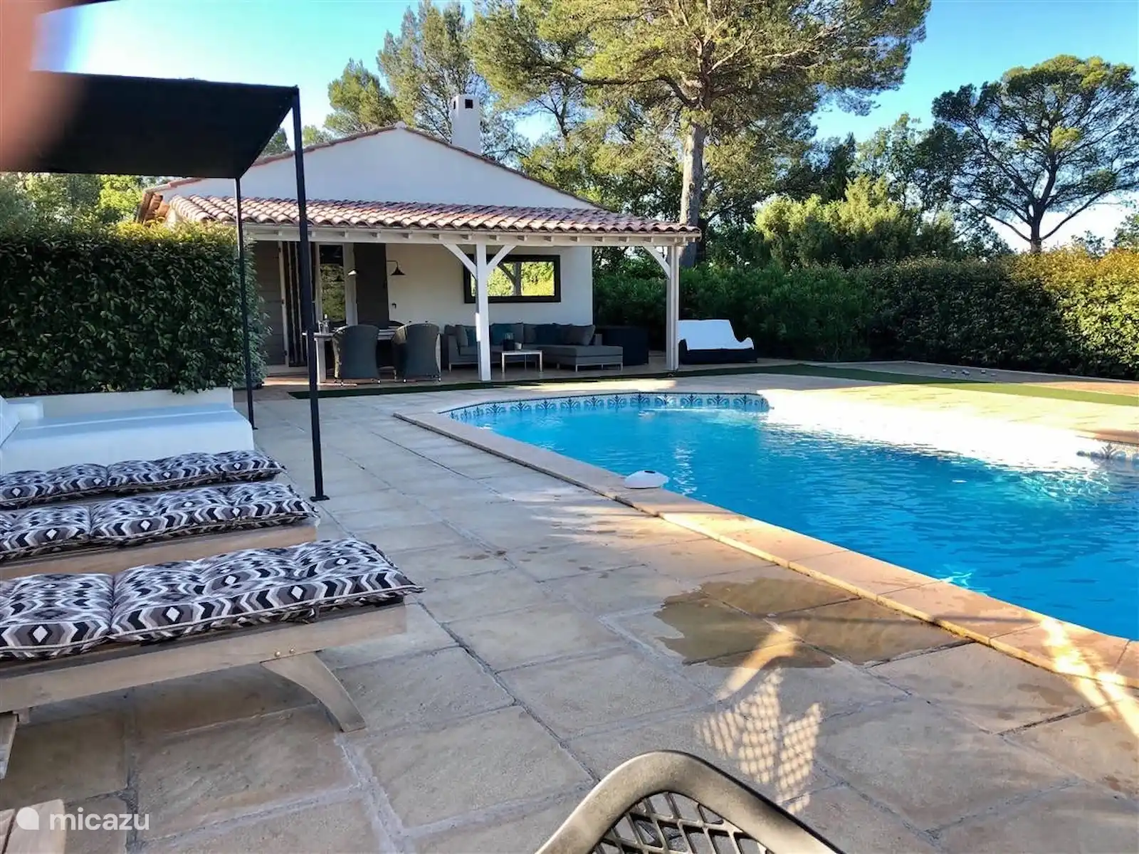La terrasse ensoleillée autour de la piscine chauffée offre une pergola ombragée en plus des 6 chaises longues. Sous l’auvent, c’est au soleil du soir, dînez à une table spacieuse ou détendez-vous dans le salon. Le barbecue à gaz est prêt pour vos plaisirs culinaires. Le terrain de pétanque fait vivre l’ambiance provençale. Il n’y a nulle part où regarder les voisins ou les passants occasionnels. Le jardin est entièrement clôturé et sans danger pour les animaux domestiques.