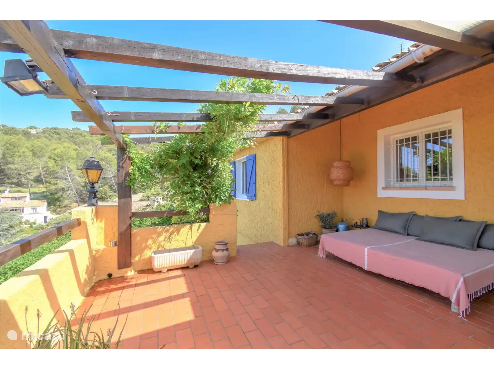 Autour de la villa se trouvent plusieurs terrasses, chacune avec sa propre atmosphère, entourées de plantes méditerranéennes et de fleurs colorées. Un grand barbecue est également disponible. La piscine privée (9 x 4 mètres) est située un peu plus bas dans le jardin et est équipée de nombreux transats. À côté de la piscine se trouve une pièce supplémentaire avec machine à laver, un réfrigérateur supplémentaire ainsi qu’une toilette et une douche supplémentaires – pratique si vous vous détendez au bord de la piscine pendant la journée.