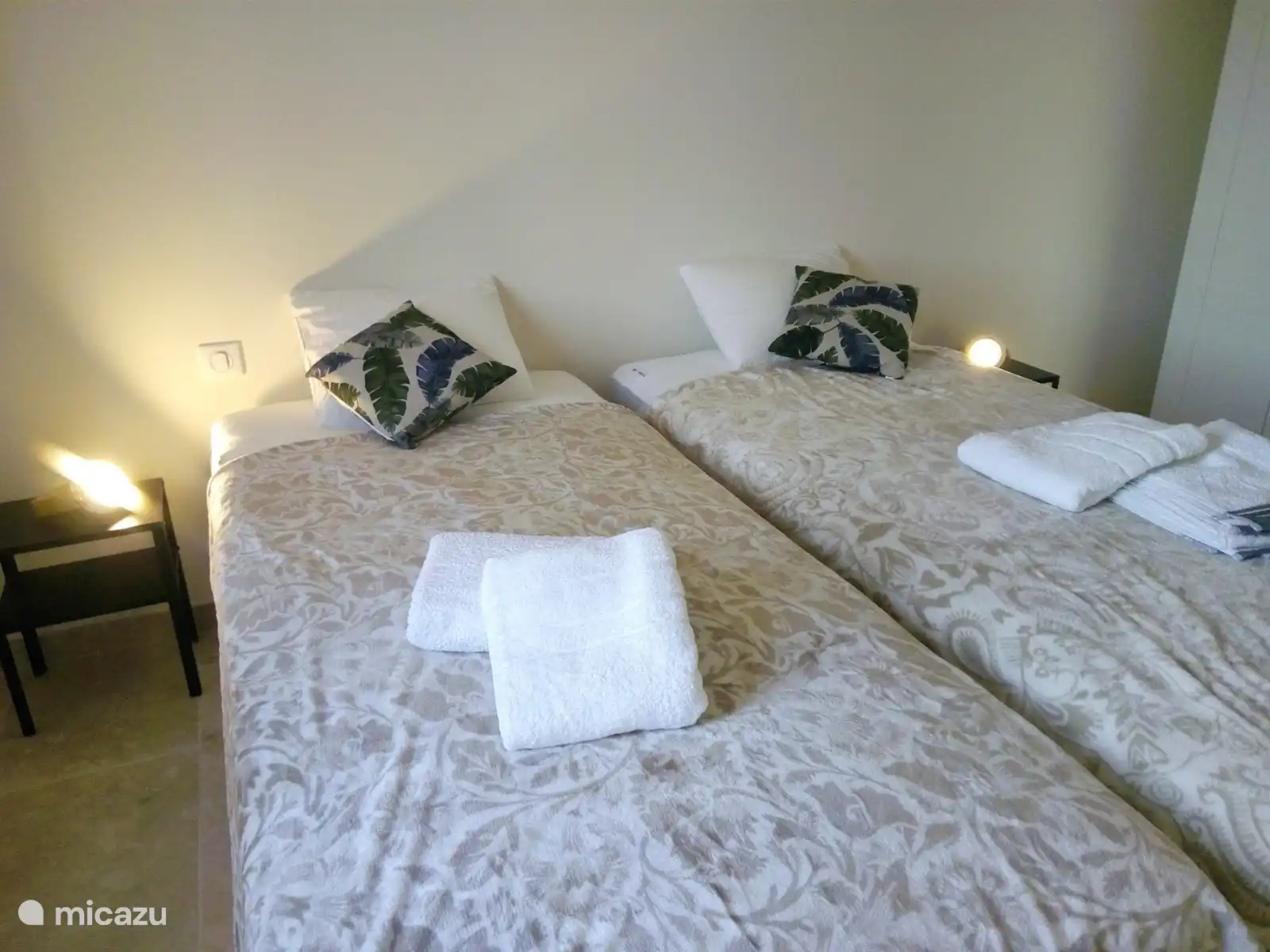 - Première chambre avec deux lits simples pouvant être assemblés (90 x 200)