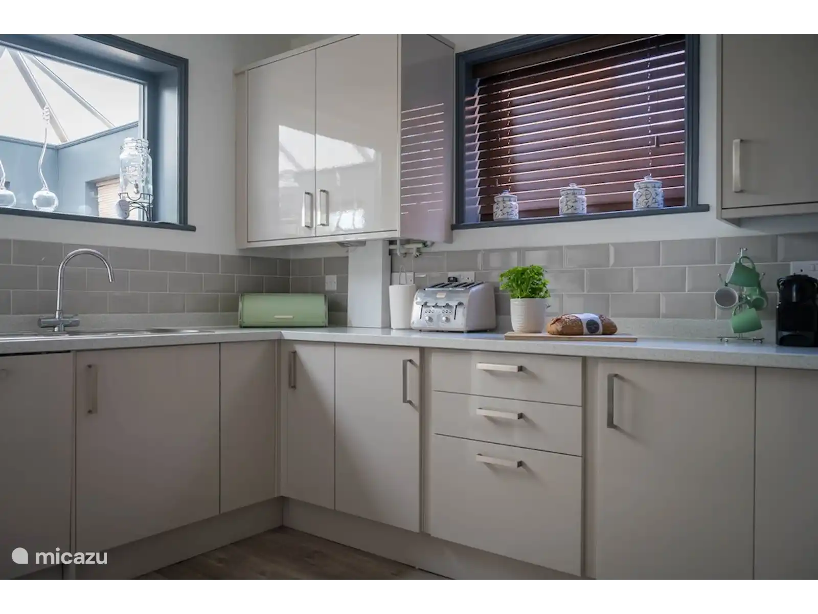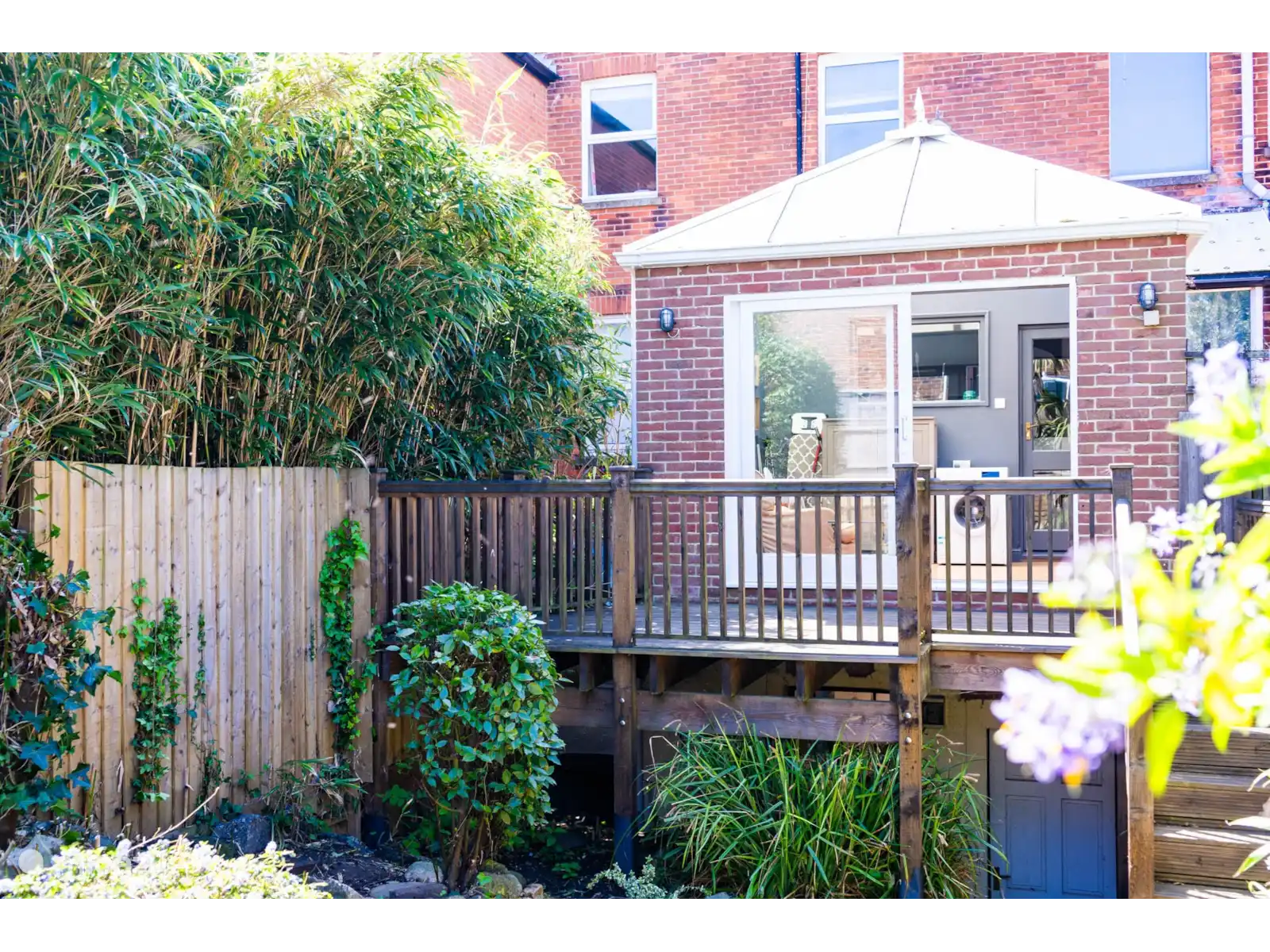 S’écoulant sans transition de la salle à manger, la cuisine contemporaine est entièrement équipée avec tout le nécessaire pour préparer des repas faits maison aux petits-déjeuners rapides et faciles. Au-delà de la cuisine, une véranda lumineuse et aérée abrite une machine à laver et un sèche-linge, offrant à la fois praticité et commodité. De là, sortez dans le jardin privé entièrement clos, un espace tranquille parfait pour le café du matin ou la détente en soirée.