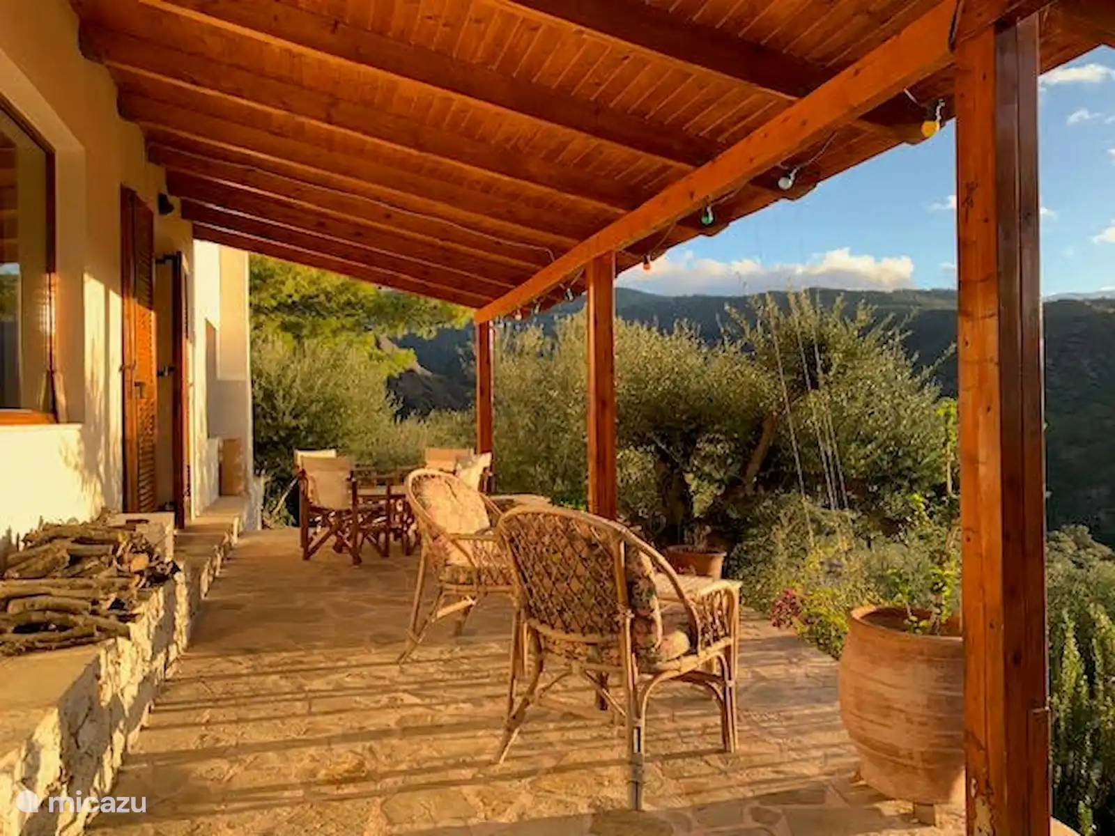 Nous avons construit notre maison en 2007 au milieu d’une oliveraie. La maison se trouve sur un vaste terrain de plus de 7000 m2, avec trois autres maisons. Grâce à la position la plus élevée d’In7thHeaven à 200 mètres, vous bénéficiez d’une grande confidentialité. À la piscine à l’arrière de la maison, vous bénéficiez d’une intimité totale. Pour une vue d’ensemble complète, consultez (*DONNÉES PROTÉGÉES*) Earth. Depuis les terrasses autour de la maison de vacances, vous bénéficiez d’une vue à couper le souffle ; au sud la mer de Libye, à l’est le lit de la rivière qui se jette à la mer, à l’ouest la pente couverte d’oliviers, enfin au nord la gorge de Sarakina !